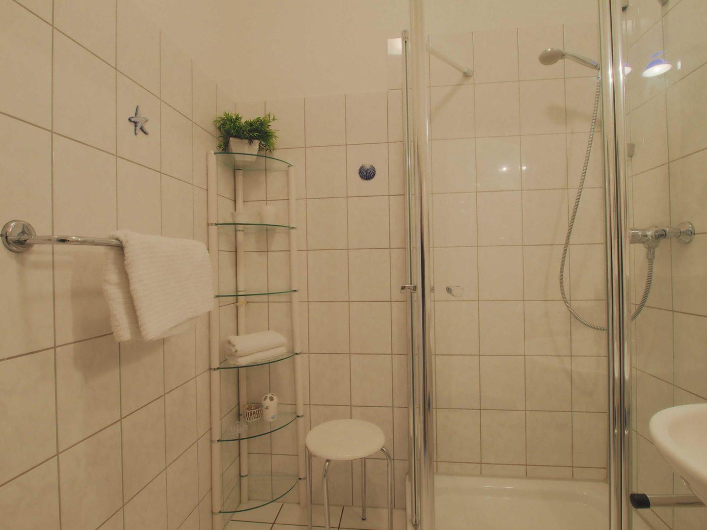 Das moderne Badezimmer verfügt über eine Dusche und bietet alles für Ihren Komfort.