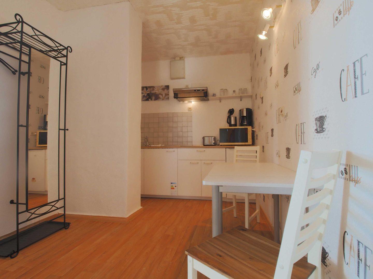 Die moderne Kochnische verfügt über zahlreiche Ausstattungsmerkmale. Für gemeinsame Mahlzeiten finden Sie einen Essbereich mitsamt Esstisch vor. Für zusätzliche Sicherheit wurden Rauchmelder installiert.