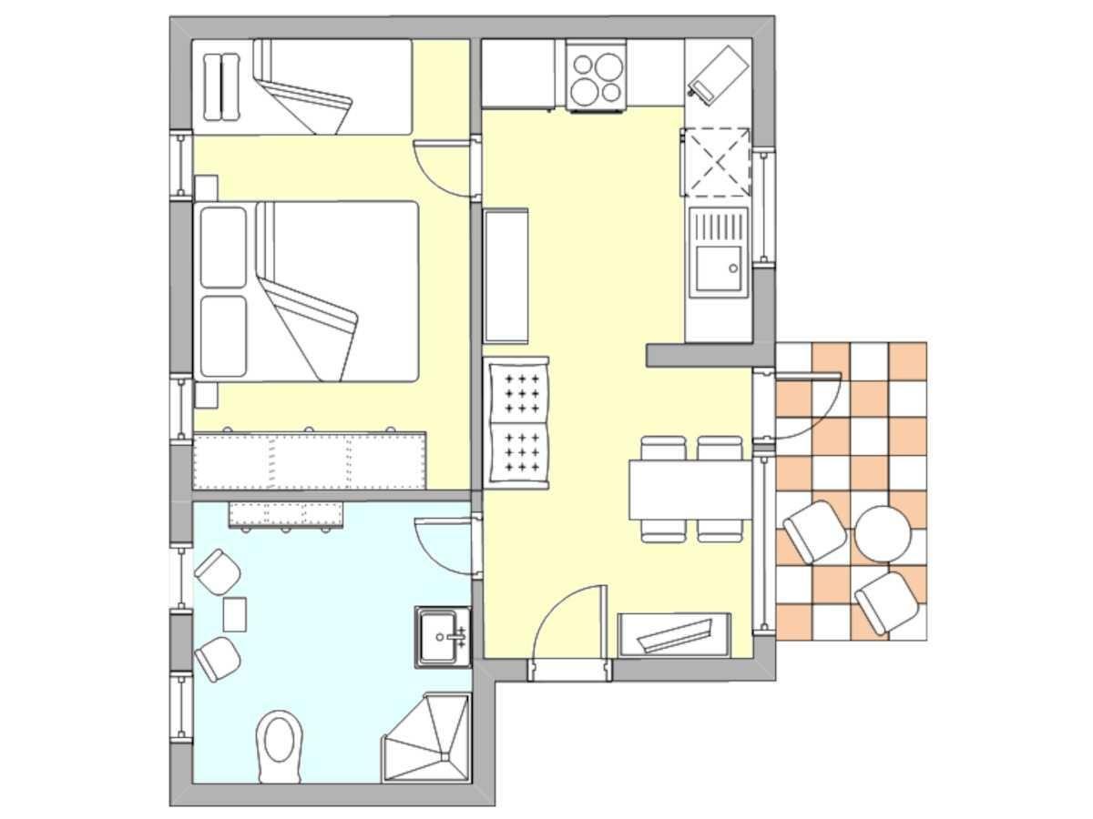 Die Wohnung besticht durch ihren hellen, gemütlichen Wohnbereich, der zum Verweilen und Entspannen einlädt. Das Schlafzimmer ist mit einem komfortablen Doppelbett und einem zusätzlichen Einzelbett ausgestattet – perfekt für erholsame Nächte nach einem erlebnisreichen Tag am Meer. Das moderne Badezimmer mit Dusche und WC sorgt für einen angenehmen Start in den Tag.