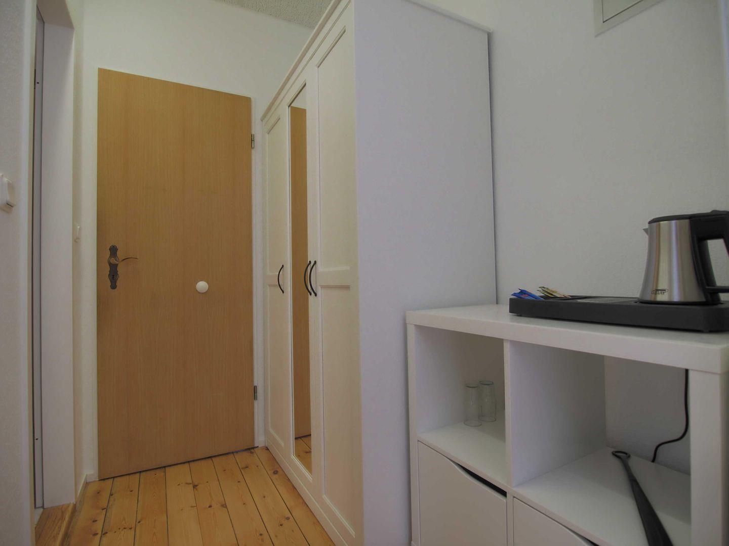 In einer ruhigen Wohngegend gelegen, können Sie hier wunderbar entspannen und zugleich das maritime Flair des beliebten Ostseebades genießen. Das helle, liebevoll eingerichtete Zimmer bietet einen schönen Blick in den Innenhof und ist mit einem komfortablen Doppelbett, gemütlichen Sitzgelegenheiten und einem praktischen Kleiderschrank ausgestattet – perfekt für erholsame Tage und Nächte.