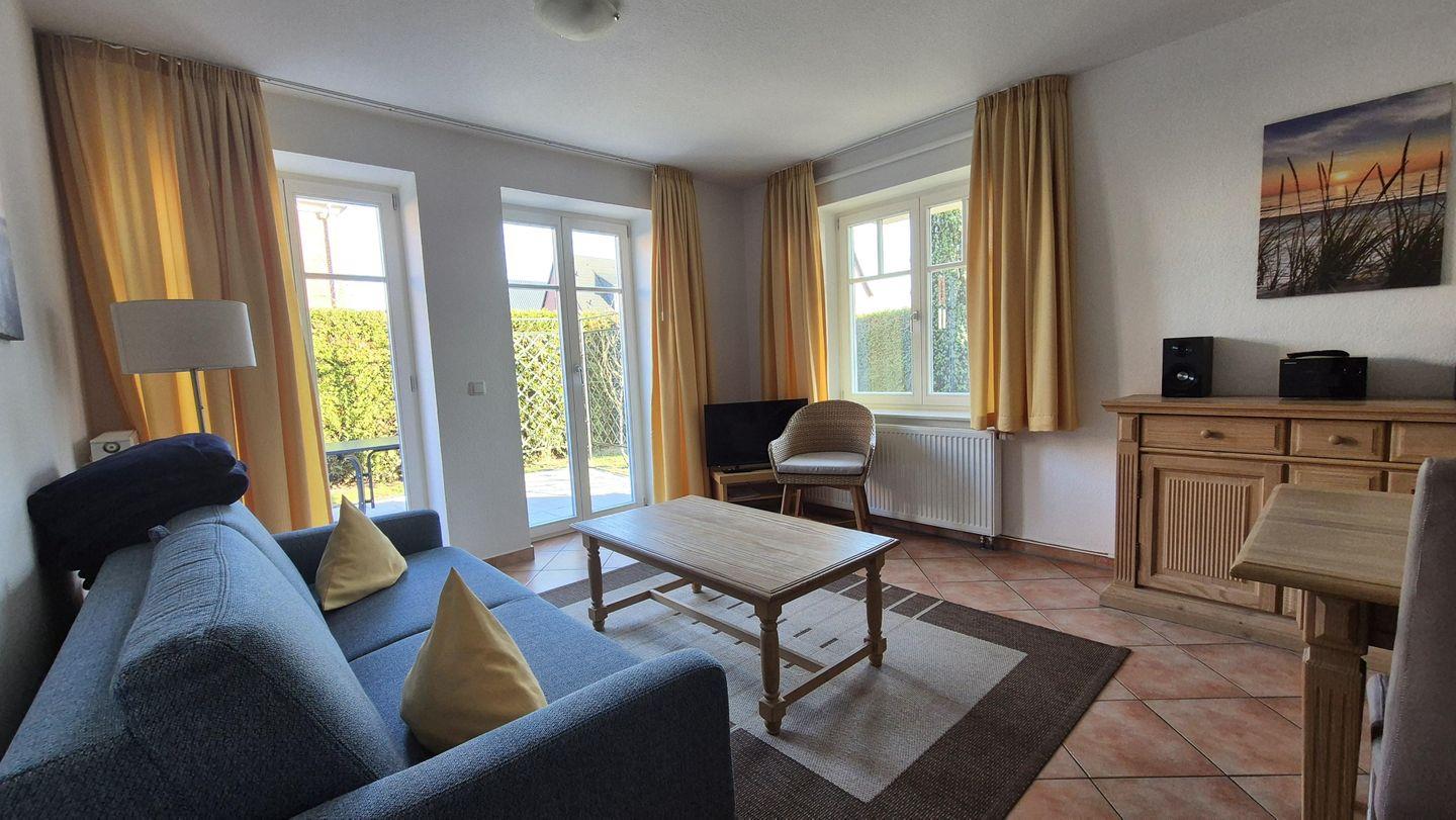 Das helle Apartment verfügt über zwei Zimmer, die funktional und geschmackvoll eingerichtet sind. Im separaten Schlafzimmer mit Fußbodenheizung finden Sie bequeme Betten für erholsamen Schlaf, während im großzügigen Wohnbereich ein gemütliches Sofa weitere Schlafmöglichkeiten bietet. Insgesamt stehen vier Schlafmöglichkeiten zur Verfügung, sodass sowohl Paare als auch Familien mit Kindern oder Babys Platz finden – Letztere sind hier ausdrücklich willkommen. Zum entspannten Tagesausklang lädt der Wohnbereich mit TV sowie kostenfreiem WLAN ein.