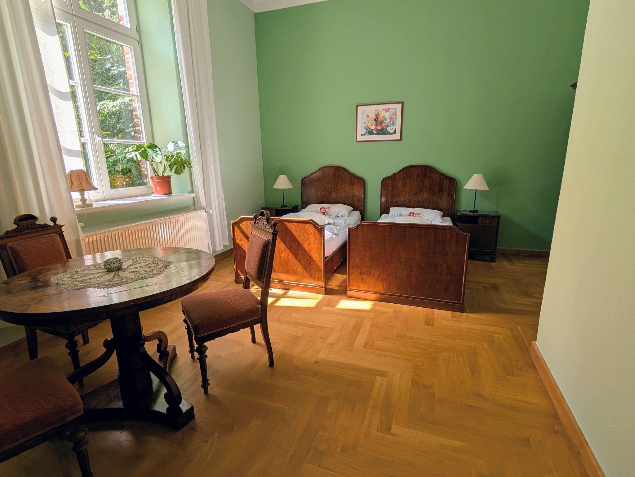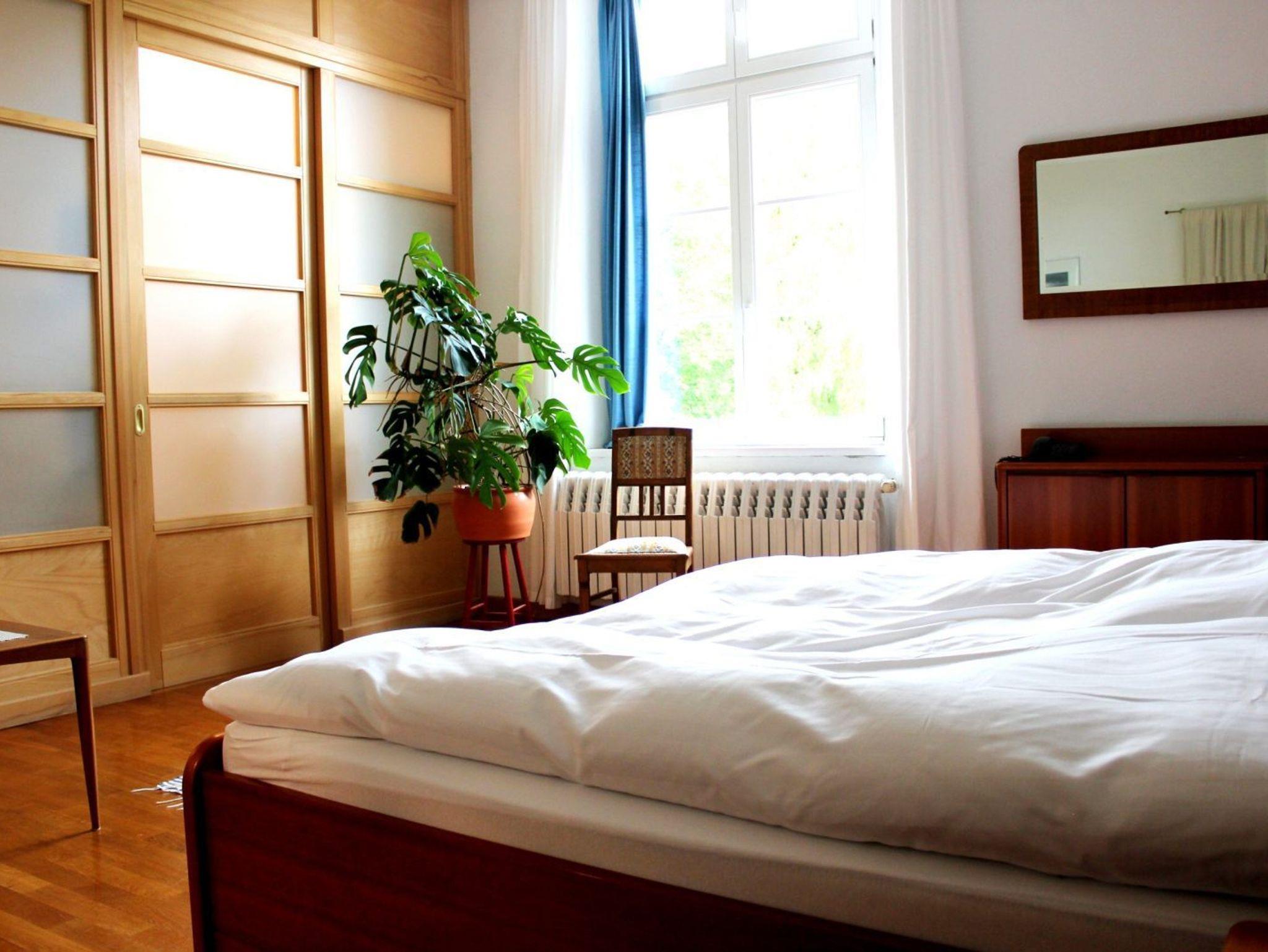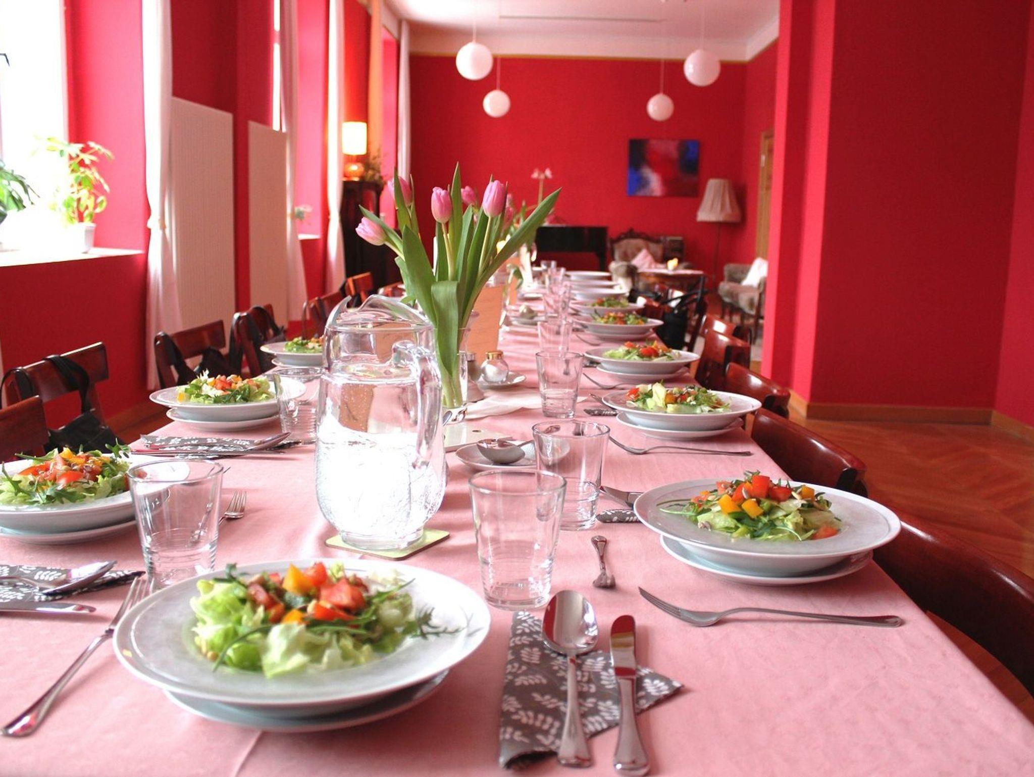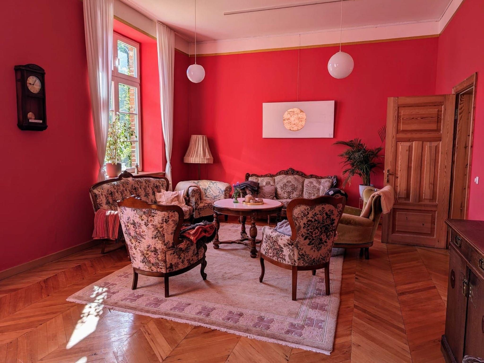Hier erwarten Dich in gemütlichem Ambiente 13 stilvolle Gästezimmer. Alle sind individuell freundlich und liebevoll gestaltet. Auch die besondere Architektur des Hauses trägt zum Wohlbefinden bei. So öffnet sich im Zentrum ein Lichthof nach oben, der in frühen Sommerstunden eine goldene Stimmung erschafft. Die hohen Decken im Roten Salon, der Bibliothek, dem Wintergarten und dem Meditationsraum, laden Dich ein, groß zu Denken. Hier findest Du viele Plätze der Ruhe, des Staunens und der Besinnung.