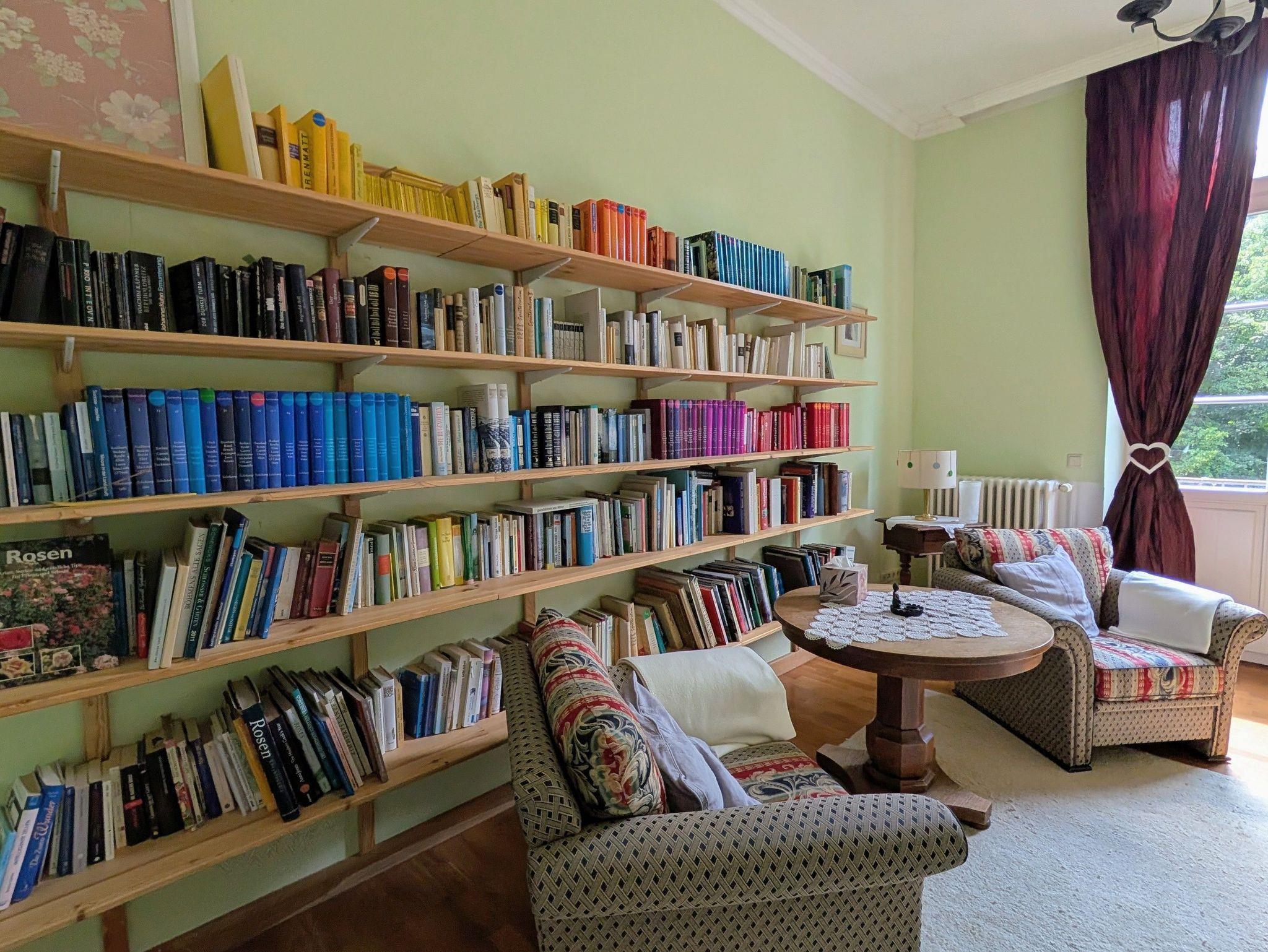 Alle sind individuell freundlich und liebevoll gestaltet. Auch die besondere Architektur des Hauses trägt zum Wohlbefinden bei. So öffnet sich im Zentrum ein Lichthof nach oben, der in frühen Sommerstunden eine goldene Stimmung erschafft. Die hohen Decken im Roten Salon, der Bibliothek, dem Wintergarten und dem Meditationsraum, laden Dich ein, groß zu Denken. Hier findest Du viele Plätze der Ruhe, des Staunens und der Besinnung.