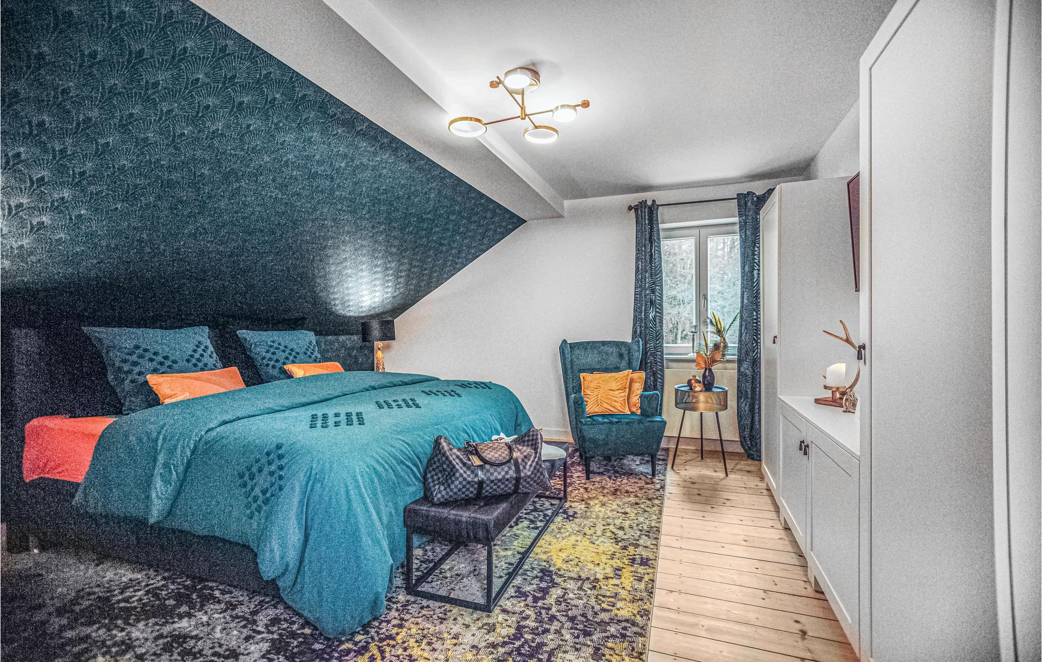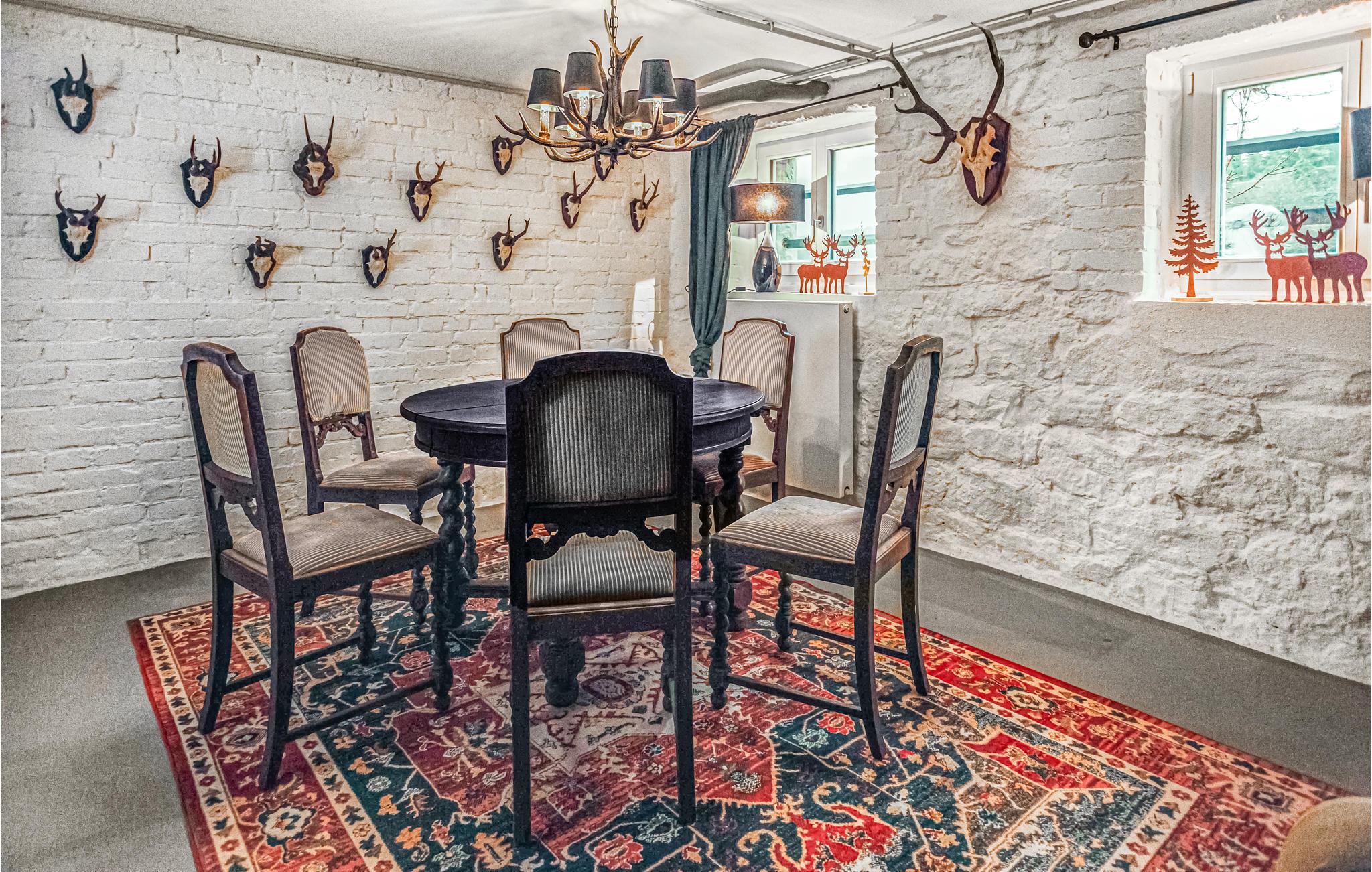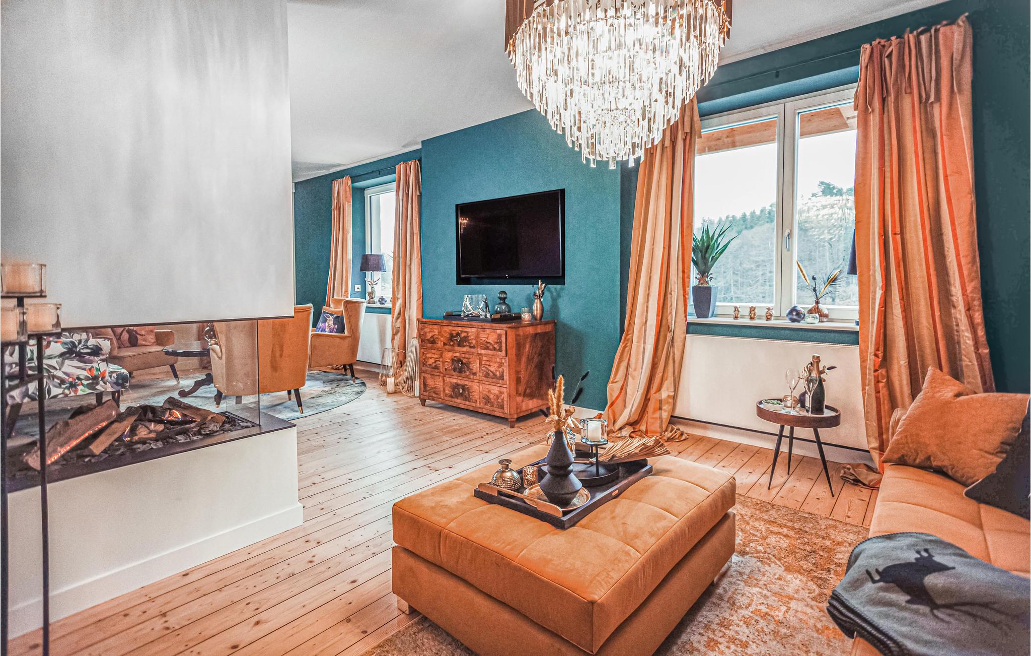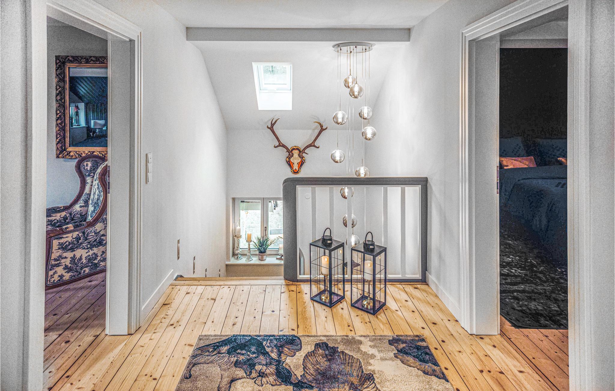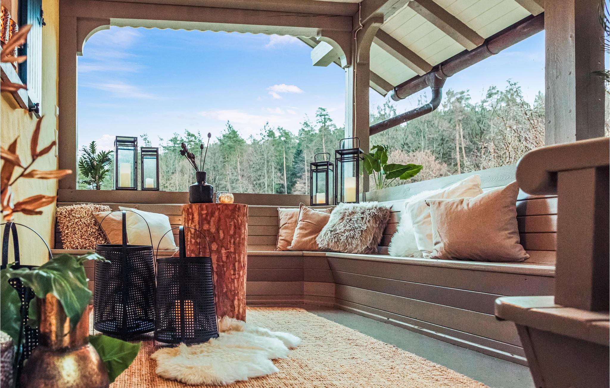 Velkommen til dette indbydende hus, der har en behagelig charme og smagfulde indretningsdetaljer. Huset er placeret idyllisk og ugenert i skoven og har en vidunderlig udsigt over landskabet. I kan se frem til hyggelige aftener efter dagens aktiviteter i naturen, slappe af i saunaen eller i stuens hyggelige atmosfære, mens pejsen spreder hyggelig varme.