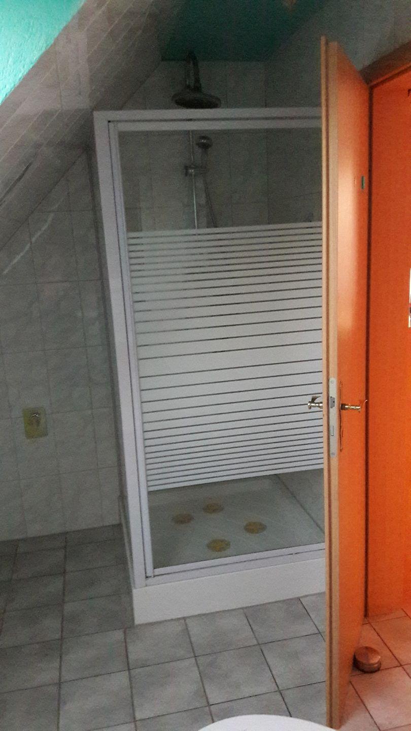 Das 26 m² große Ferien-Apartment mit Seeblick betreten Sie über den Flur mit Holztreppe. Im Zimmer finden Sie eine kleine Kochnische. Diese ist mit einem 2 Plattenkochfeldherd, einer Kaffeemaschine, einem Toaster, einem Wasserkocher, einem Tisch und einem Kühlschrank mit Tiefkühlfach ausgestattet. Außerdem finden Sie eine Sitzecke mit Couch, eine Anbauwand und ein TV-Gerät. Im Badezimmer befindet sich eine Dusche mit WC und Waschtisch.