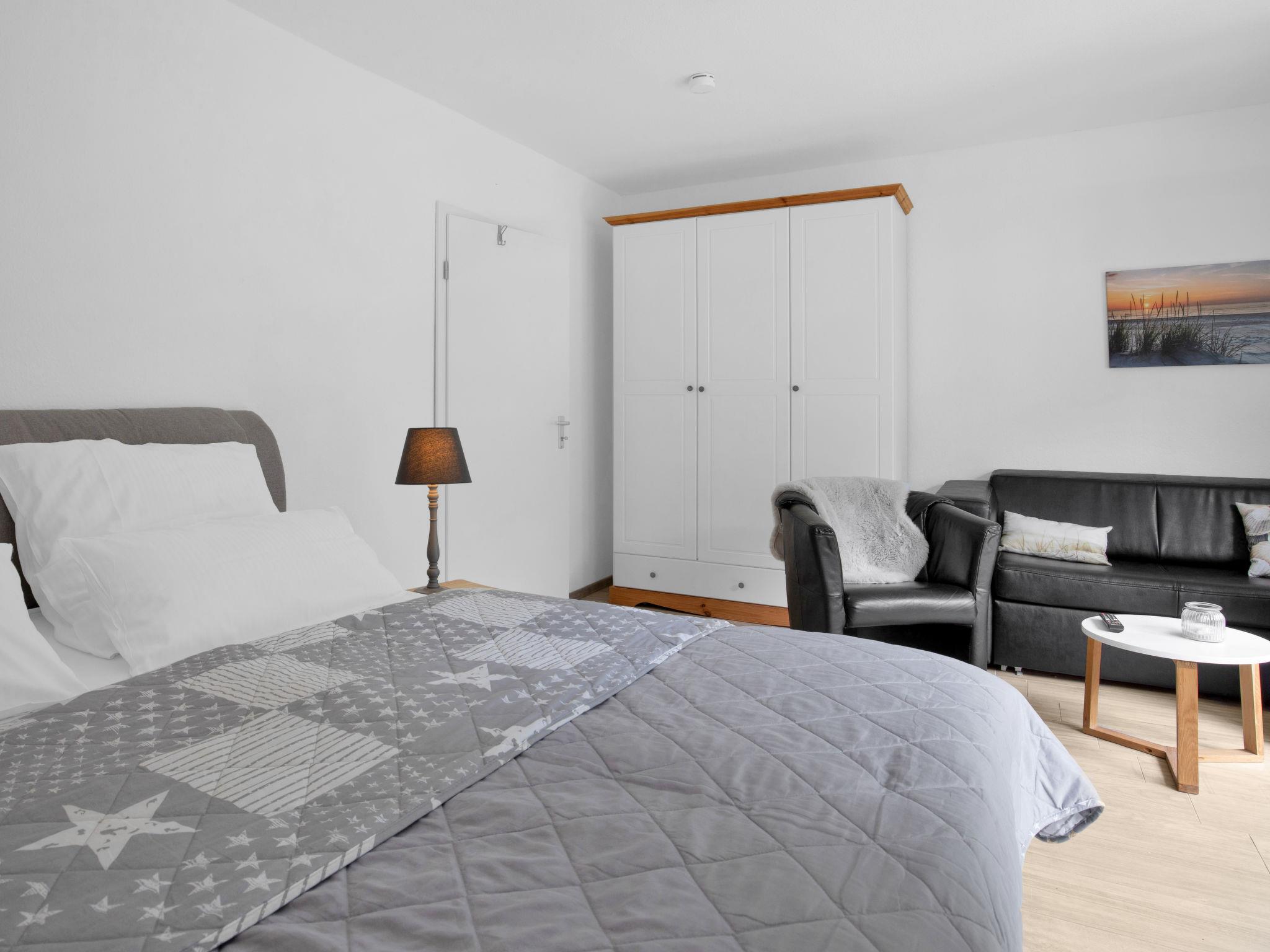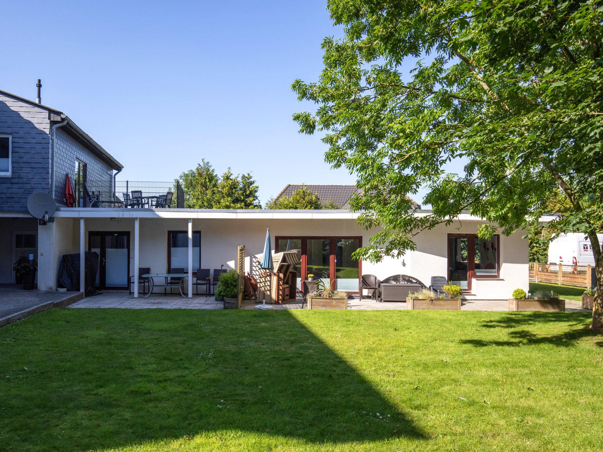 "Strandläufer", 3-room apartment 78 m2, on the ground floor. Cosy furnishings: living/dining room 22 m2 with 1 double sofabed (160 cm, length 200 cm), satellite TV (flat screen). 1 room 22 m2 with 1 double bed (180 cm, length 200 cm), satellite TV (flat screen). 1 room 12 m2 with 1 double bed (180 cm, length 200 cm). Kitchen 11 m2 (oven, dishwasher, 4 ceramic glass hob hotplates, microwave, electric coffee machine). Bath/shower/WC. Large terrace 25 m2. Terrace furniture, deck chairs (2). Facilities: washing machine, dryer. Internet (WiFi, free). Please note: non-smoking house. Maximum 2 pets/ dogs allowed. Private entrance, smoke alarm, fire extinguisher. Beach chair on the terrace. Bicycle storage room (for shared use) on the property.