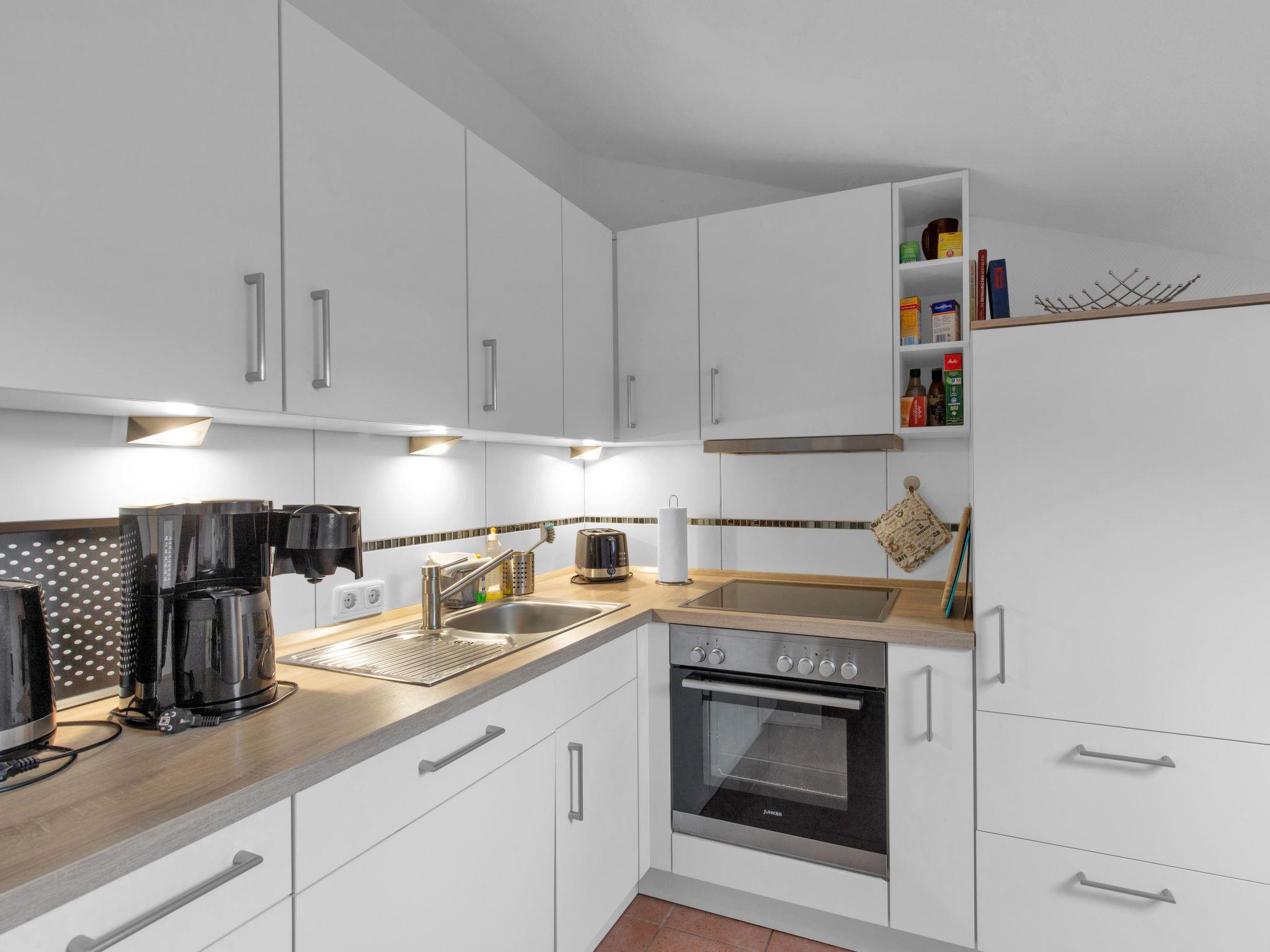 "Sturm", 3-room apartment 104 m2 on 2nd floor. Partly with sloping ceilings, cosy furnishings: living/dining room 23 m2 with 1 double sofabed and satellite TV (flat screen). Exit to the balcony. 1 room 30 m2 with 1 double bed (180 cm, length 200 cm), satellite TV (flat screen). 1 room 16 m2 with 2 beds (90 cm, length 200 cm). Kitchen 9 m2 (oven, dishwasher, 4 ceramic glass hob hotplates, microwave, electric coffee machine) with small dining table. Shower/WC, bath/shower/WC with corner bath. Large balcony 14 m2. Balcony furniture, deck chairs (2). Facilities: washing machine. Internet (WiFi, free). Please note: non-smokers only. Maximum 1 pet/ dog allowed. Smoke alarm, fire extinguisher. Bicycle storage room (for shared use) on the property.