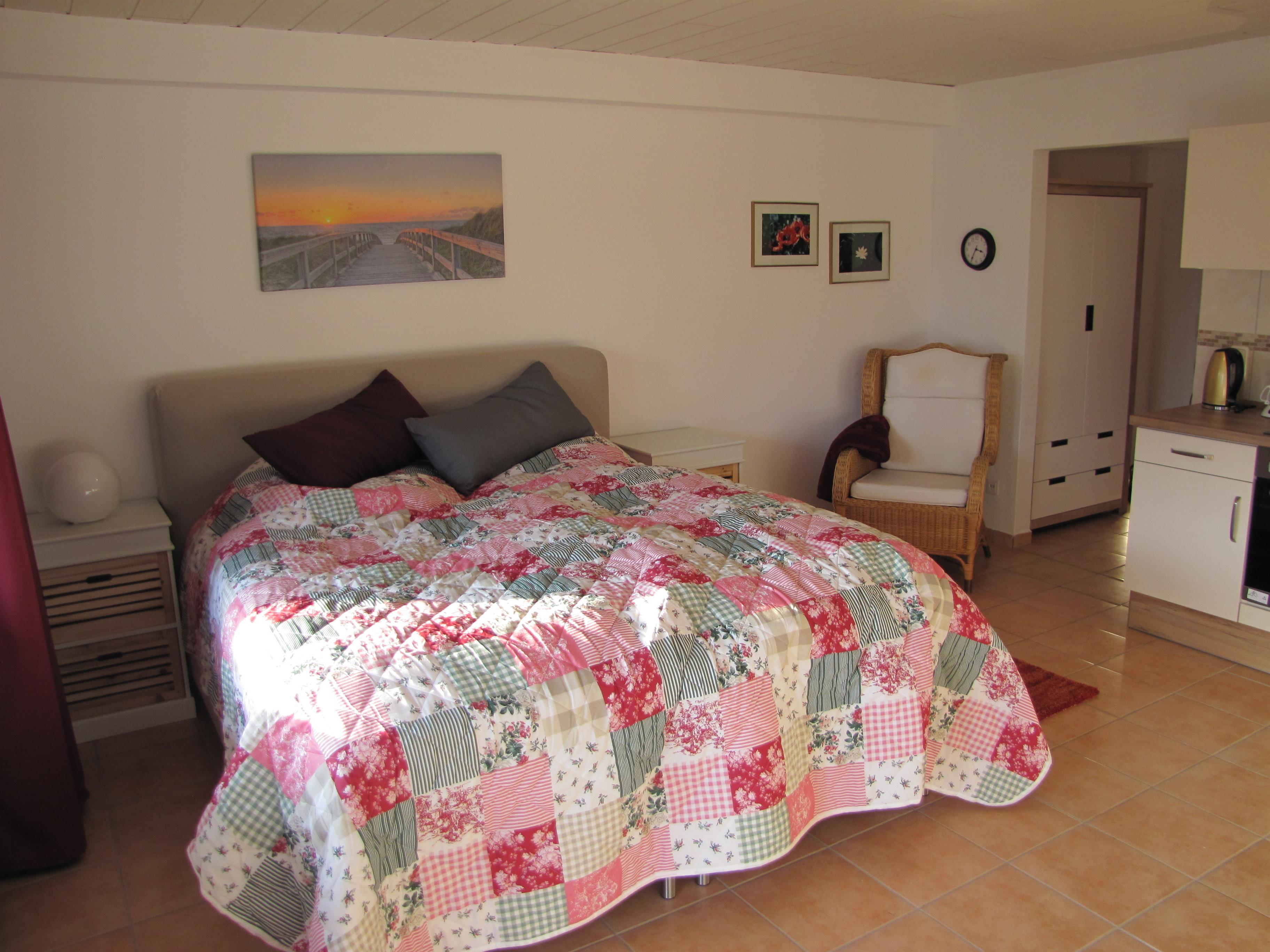 Die Wohnung ist schön geschnitten und bietet Platz für zwei Erwachsene. Sie befindet sich im Erdgeschoss und hat eine große überdachte Süd-Terrasse. Neben dem Wohn- / Schlafraum besteht die Wohnung aus einem kleinen Flur sowie einem sehr schönen Badezimmer.
