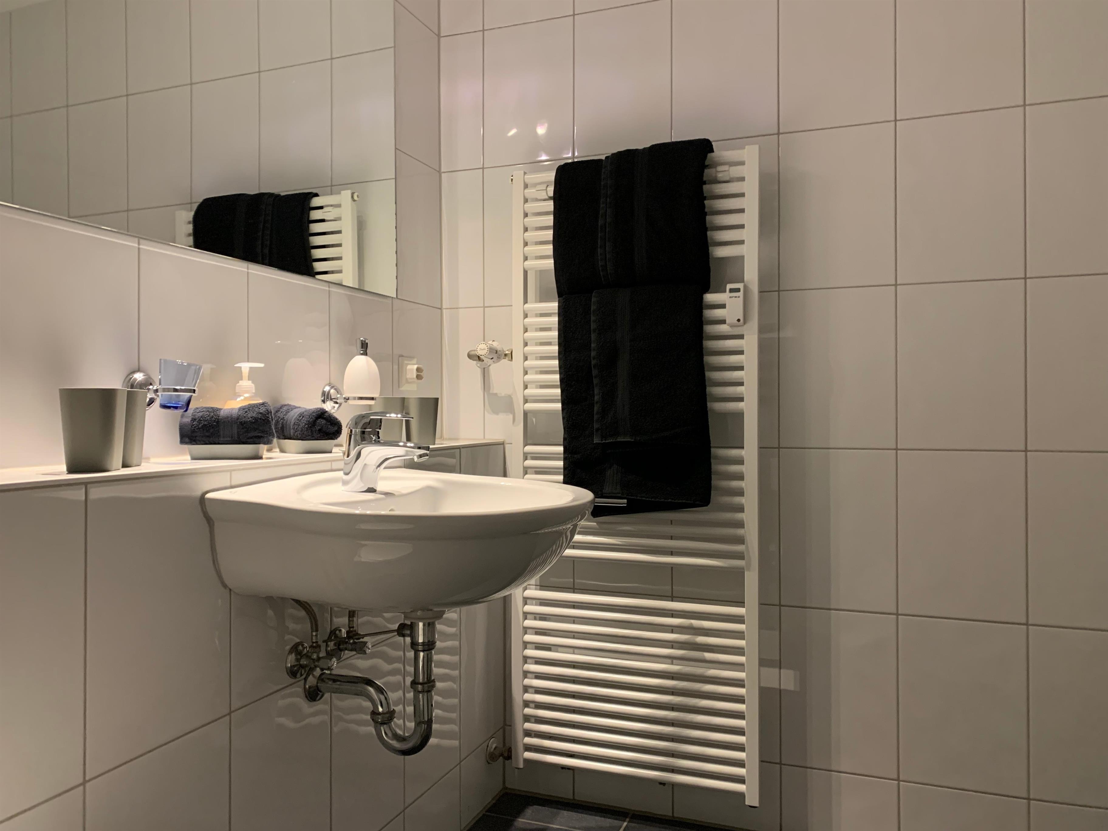 Die Wohnung verfügt über ein Badezimmer mit Dusche und WC.