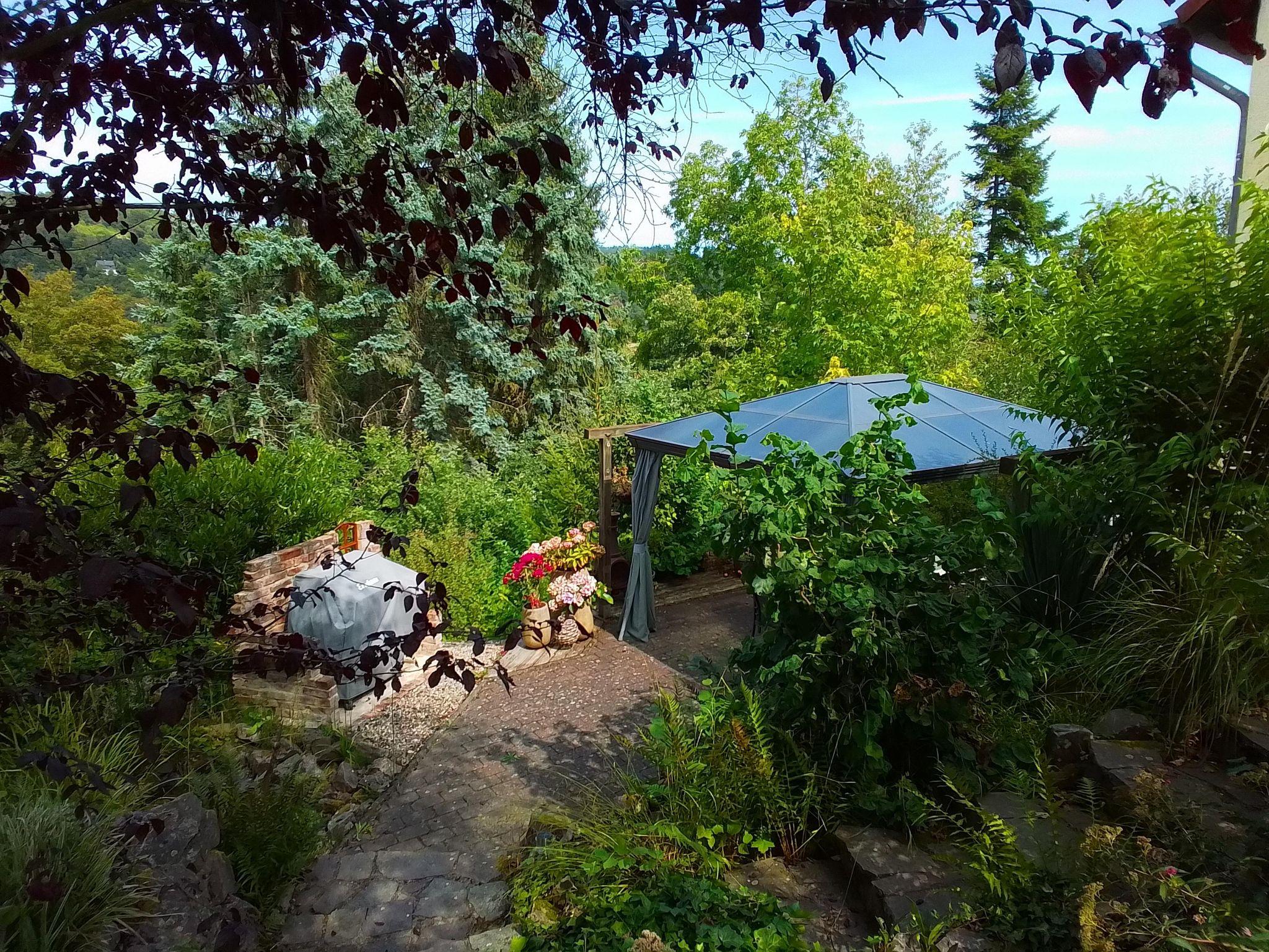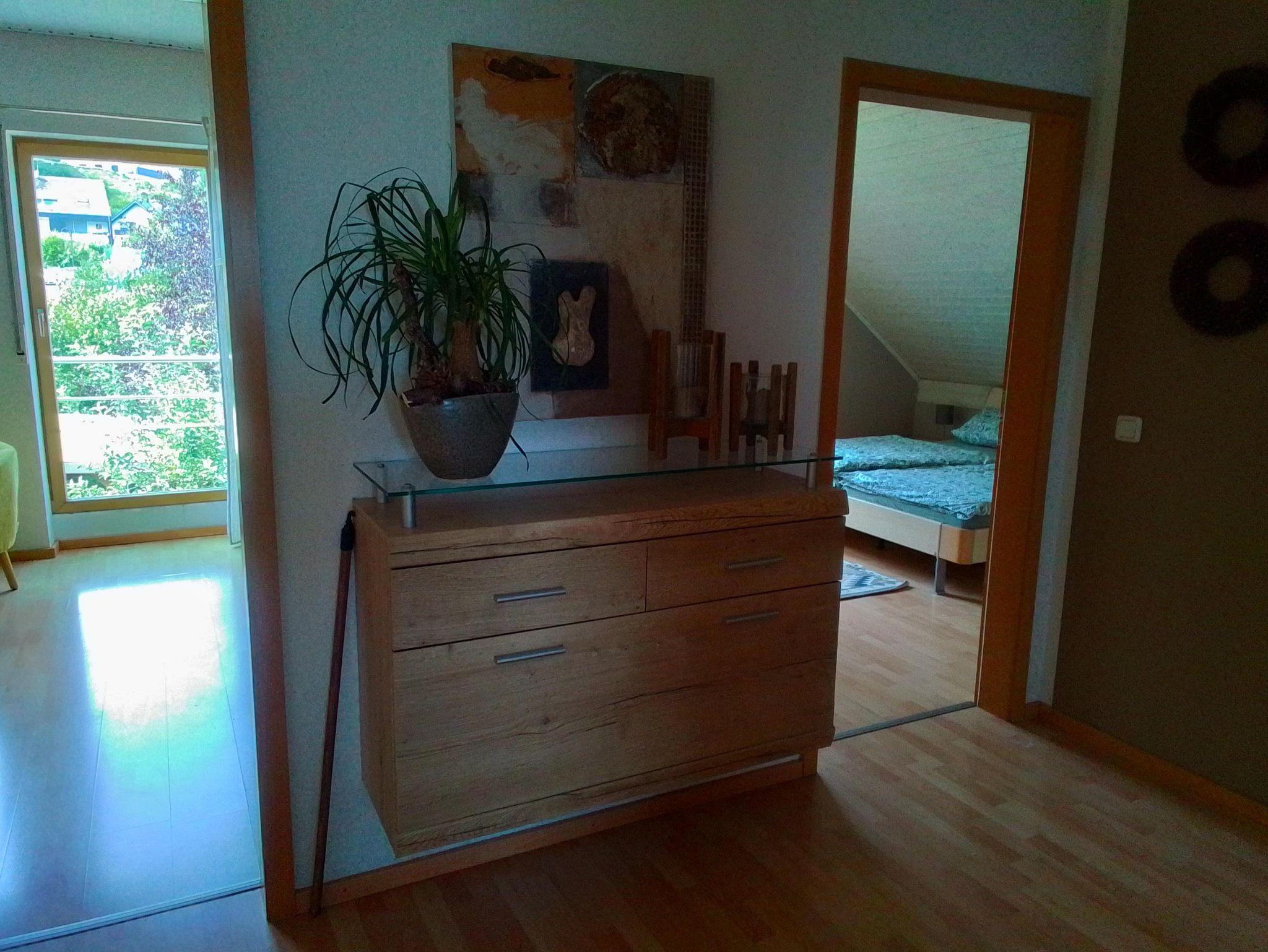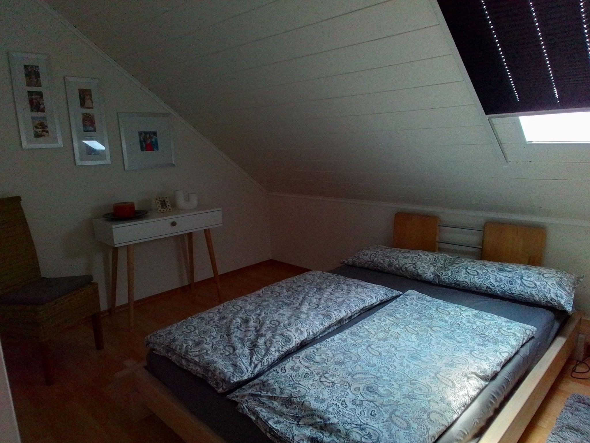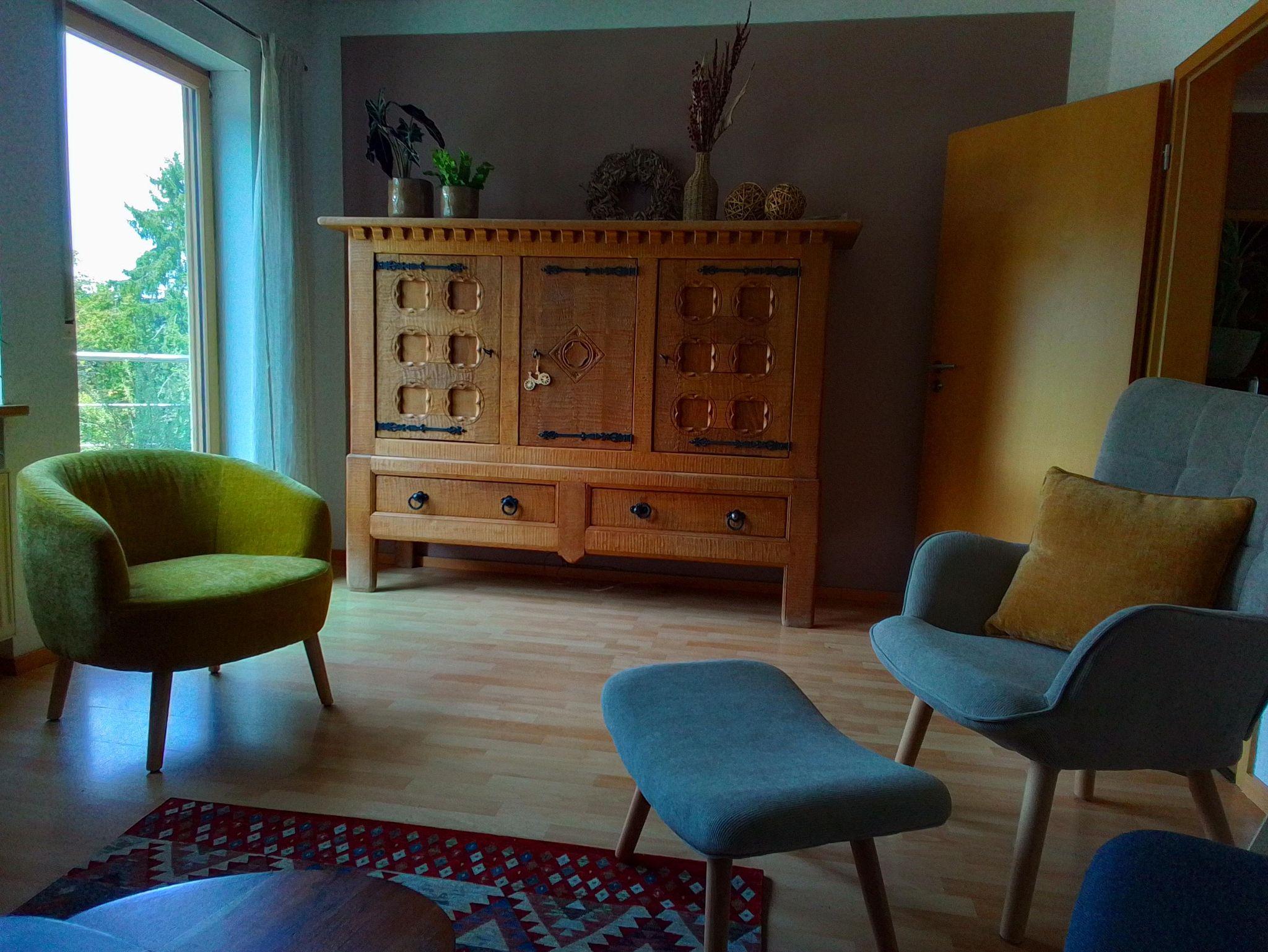 Genießen Sie erholsame Tage in unserer gemütlichen Ferienwohnung in ruhiger Höhenlage. Die Unterkunft in der 1. Etage bietet zwei Doppelzimmer (1,80 x 2,00 m und 1,40 x 2,00 m), ein komfortables Wohnzimmer, eine voll ausgestattete Küche sowie ein Bad mit Dusche/WC. Rund um das Haus laden mehrere Sitzgelegenheiten zum Entspannen ein.