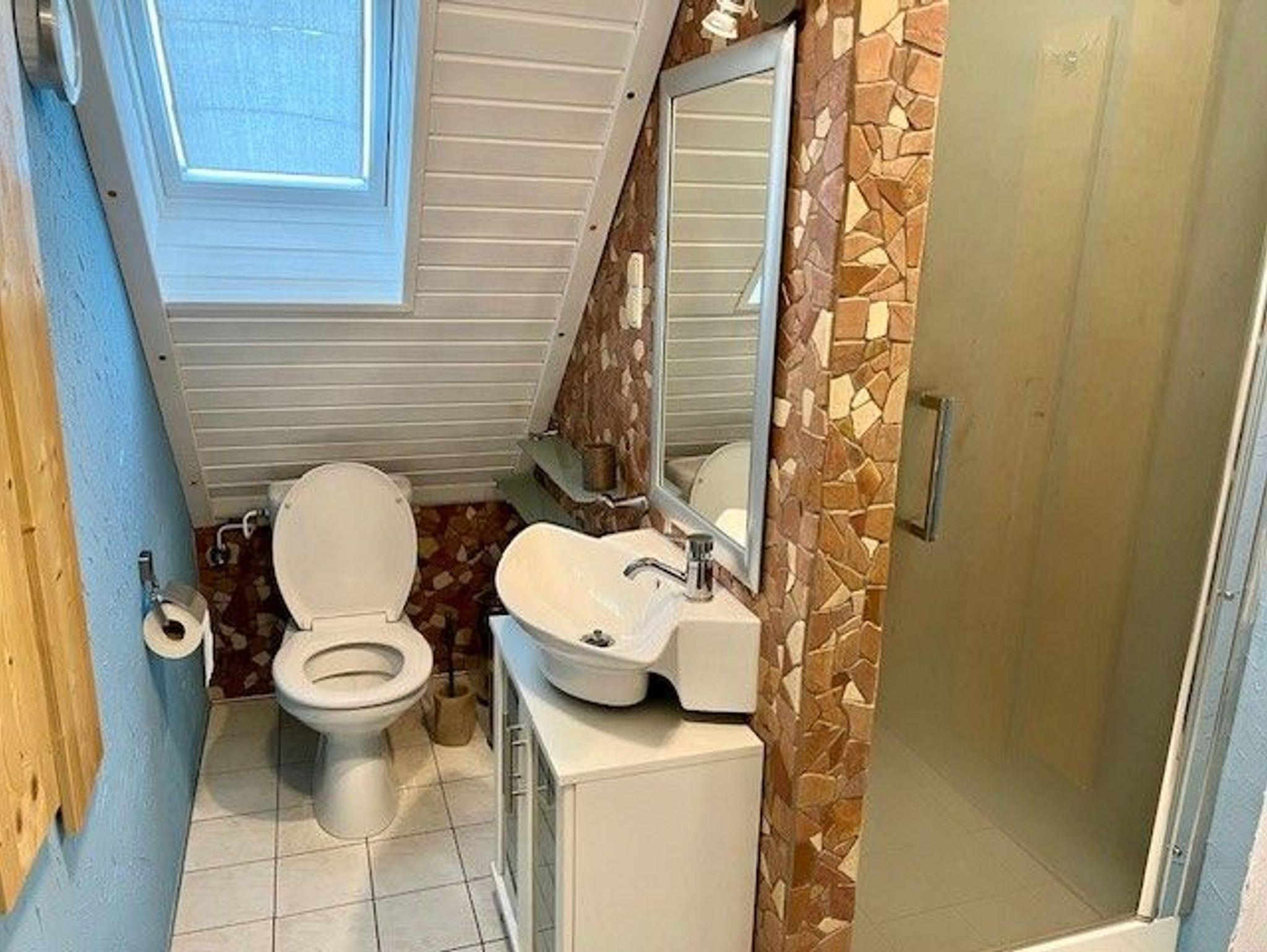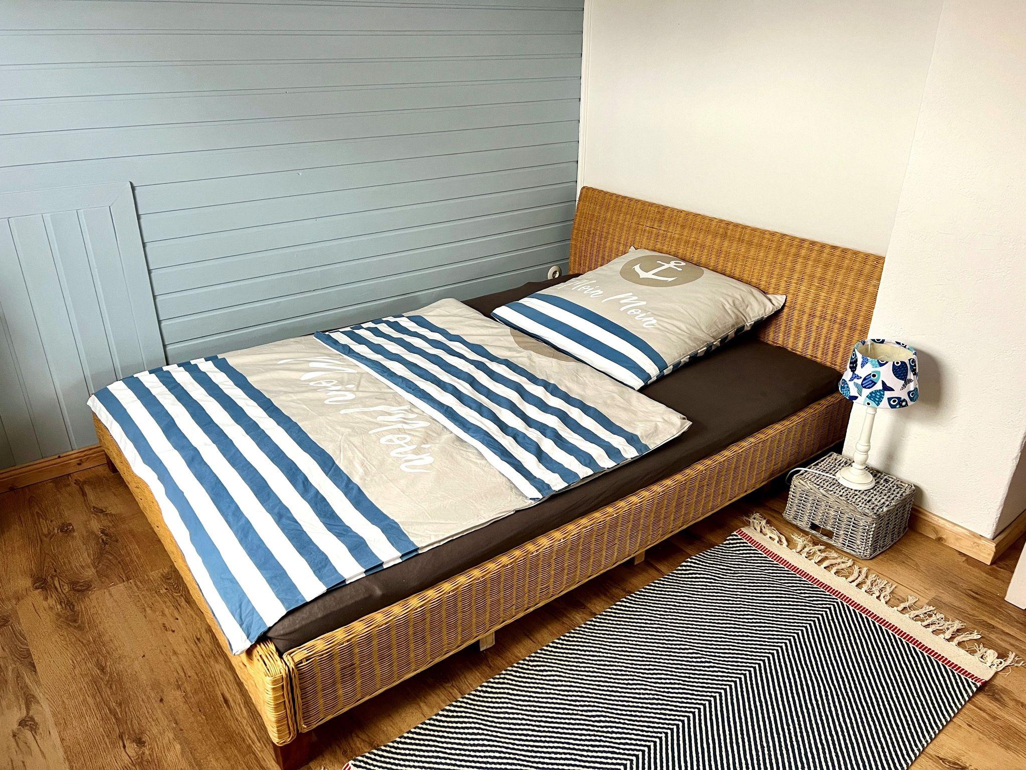 Die Schlafzimmer befinden sich im Obergeschoss (Treppe): Schlafzimmer 1 mit Doppelbett (160 cm breit) und Schlafzimmer 2 mit zwei Einzelbetten (140 cm und 100 cm breit). Die Küche ist mit Mikrowelle, Kaffeemaschine, Wasserkocher, Toaster, Spülmaschine und viel Geschirr sehr gut ausgestattet. Eine Waschmaschine ist ebenfalls vorhanden wie auch WLAN-Internetzugang, Kabelanschluss. Das Wohnzimmer ist mit einem Kamin ausgestattet, dort finden Sie auch viele Bücher und Brettspiele, die den Urlaubsabend in der Familie perfekt machen.
