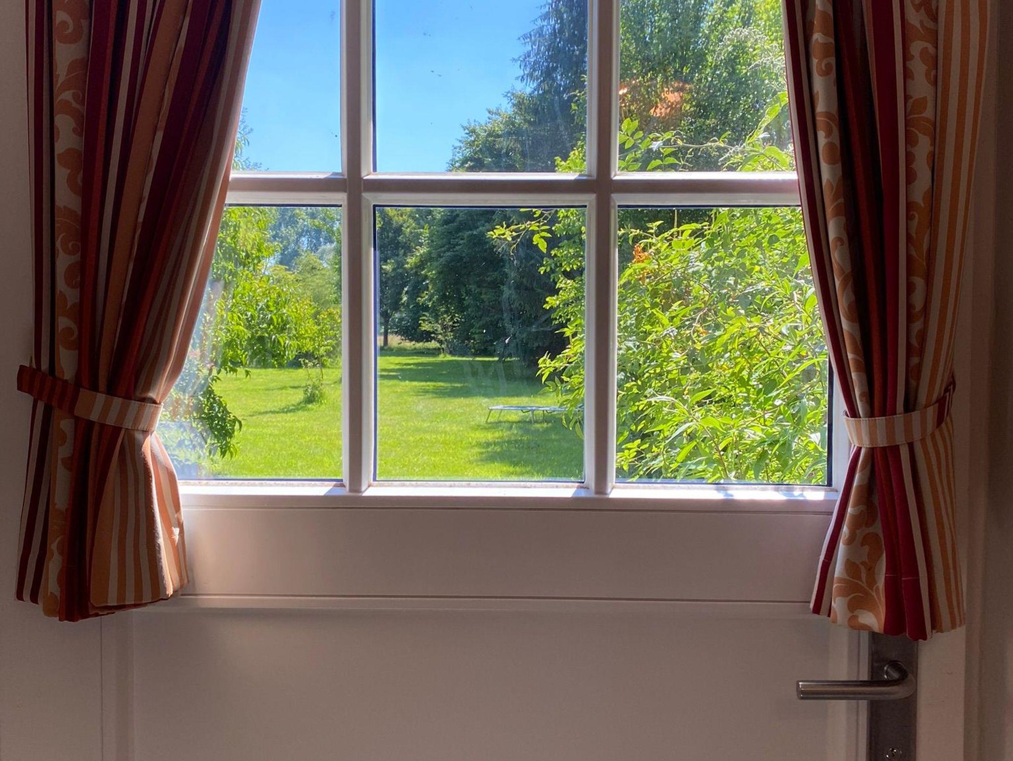 Unser gemütlich eingerichtetes Ferienzimmer verfügt über ein modernes Bad und ist direkt vom Garten aus zu betreten.
