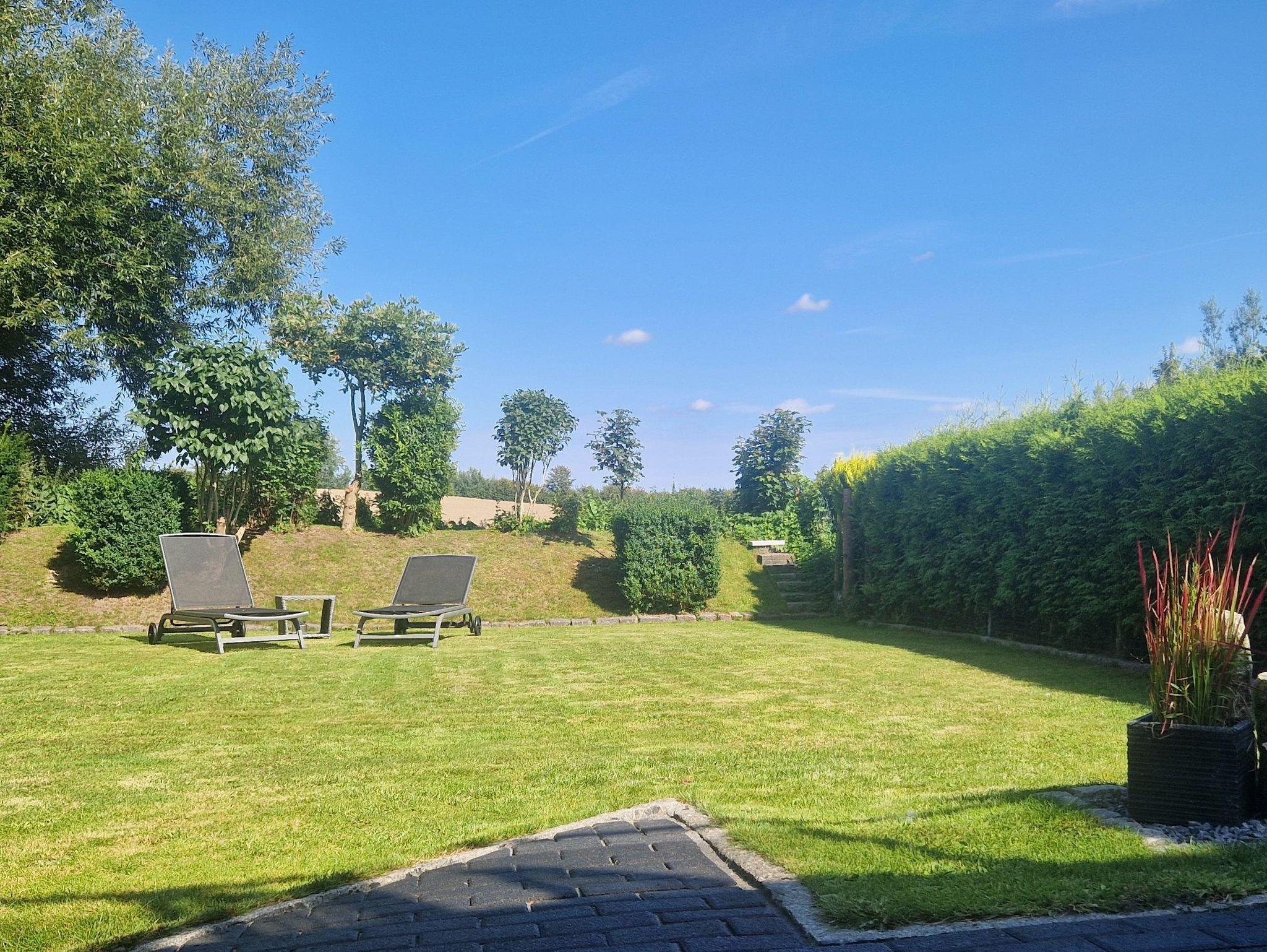 • Terrasse mit Gartenmöbeln und Strandkorb