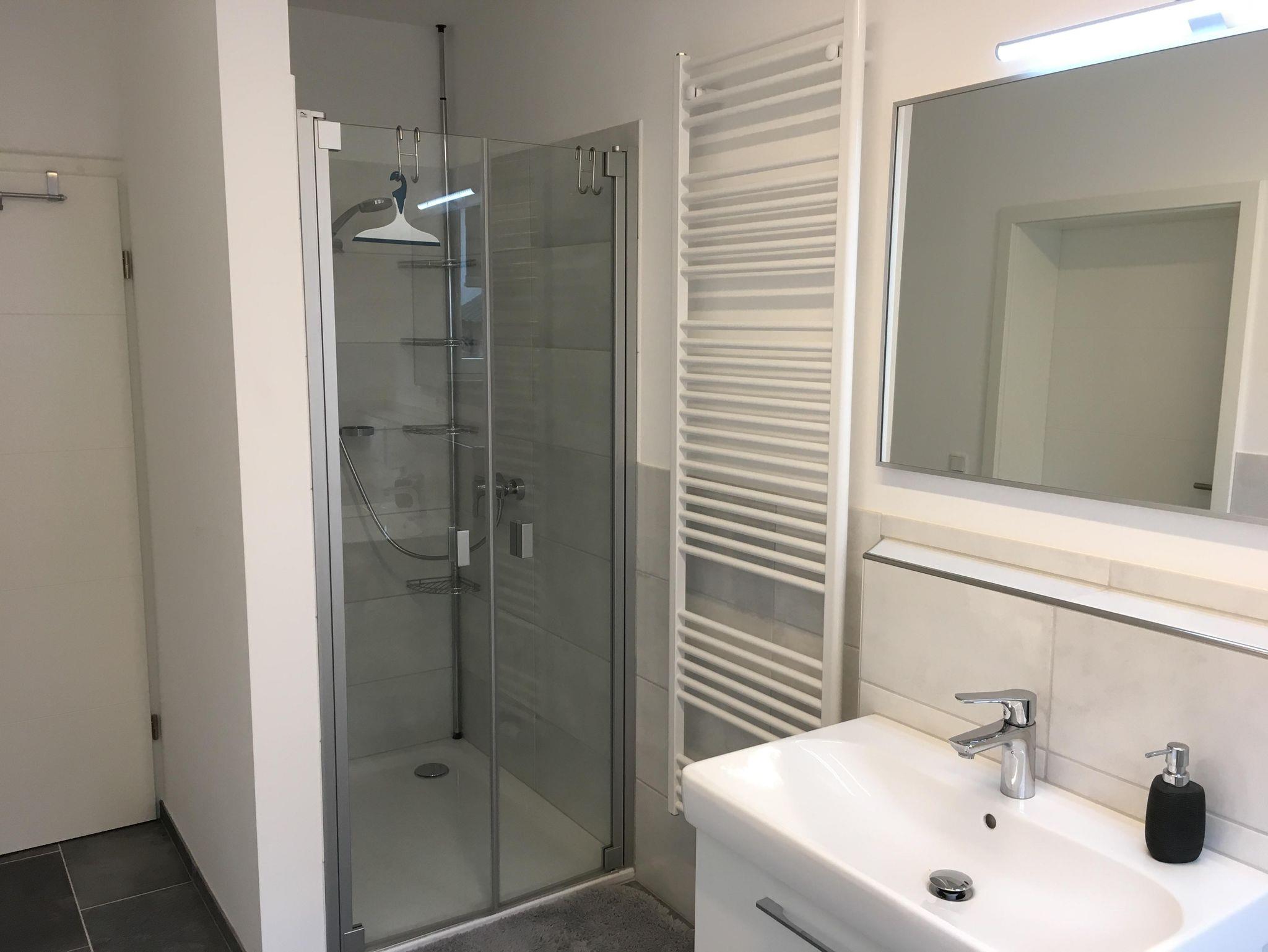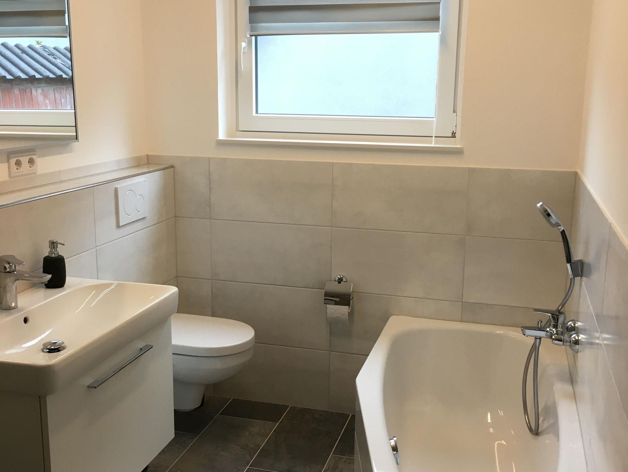• 1 Bad mit großer Dusche, Badewanne und WC