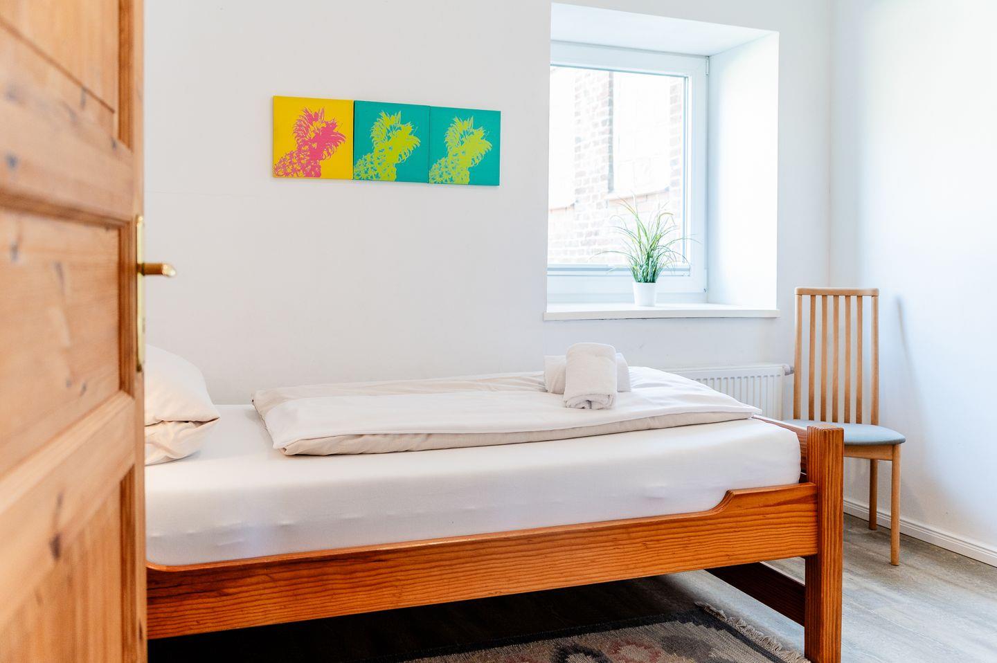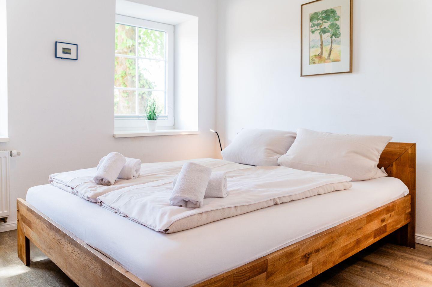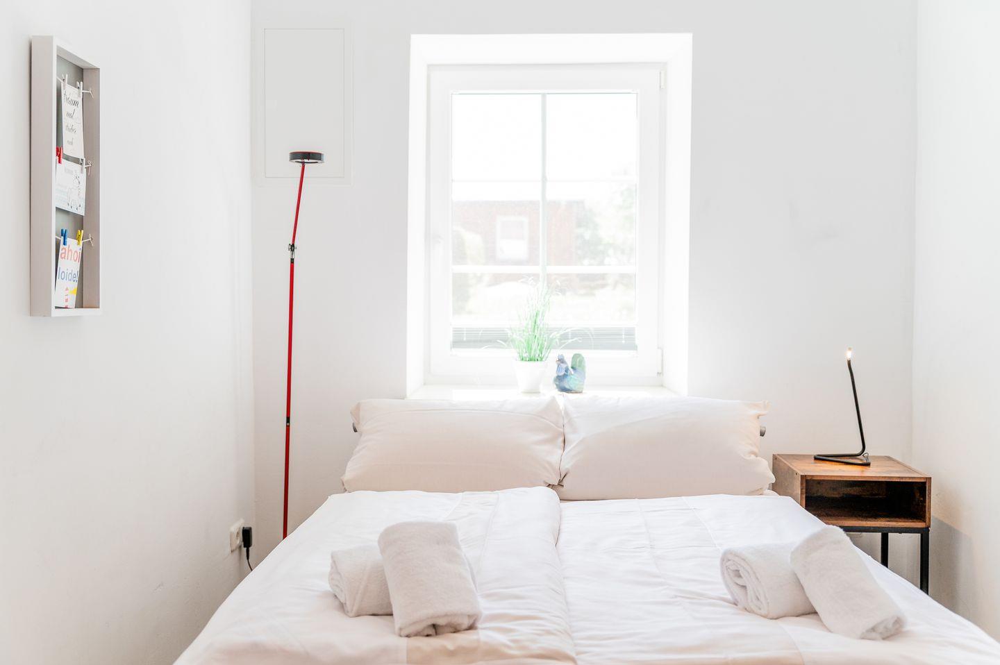 Ausstattung: Das Ferienhaus bietet Platz für bis zu 5 Personen mit einem komfortablen Doppelzimmer, einem weiteren Schlafzimmer mit einem 140 cm Bett und ein weiteres Zimmer mit einem Einzelbett. Alle Zimmer haben einen Schrank und Plissees.