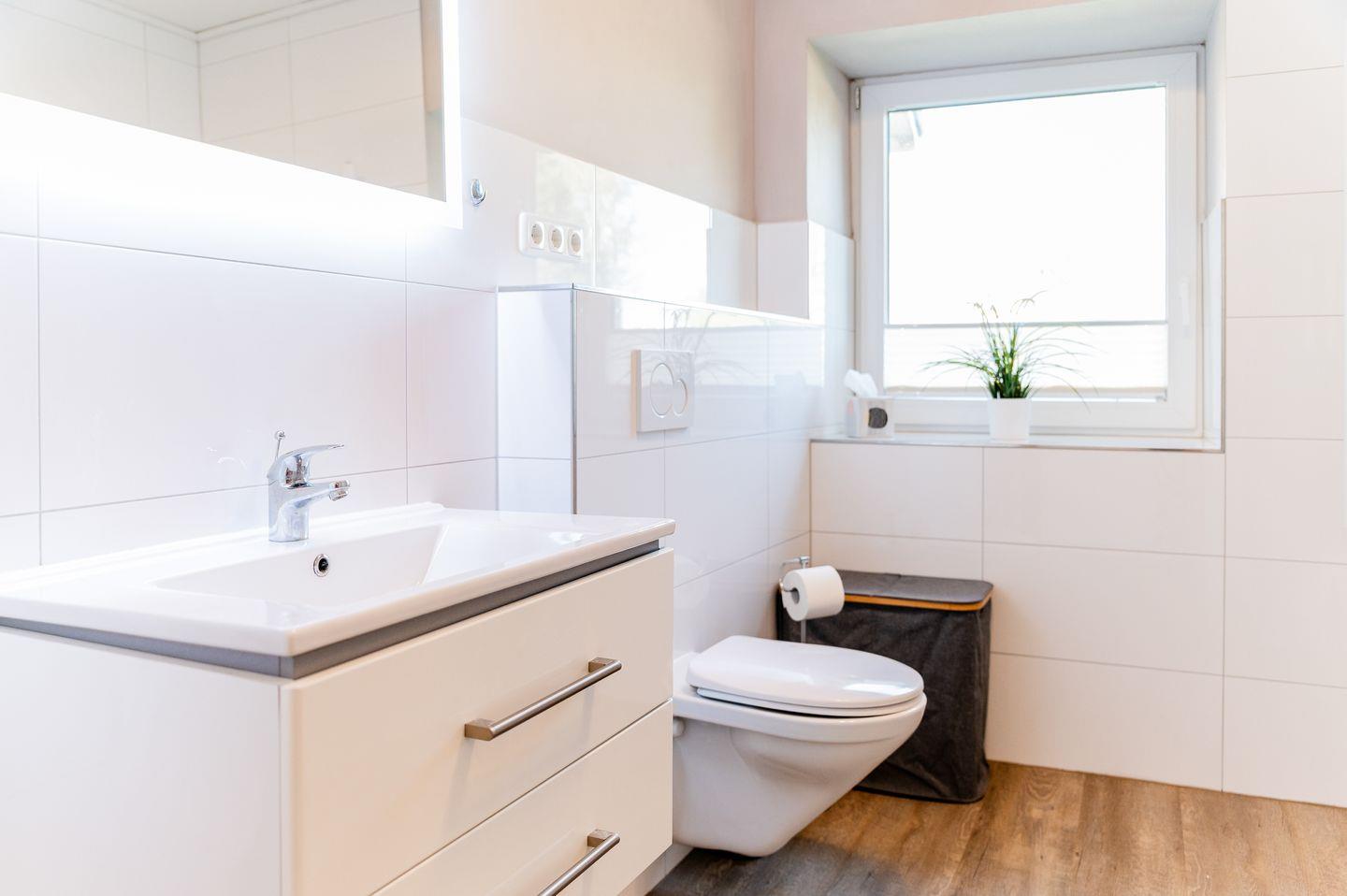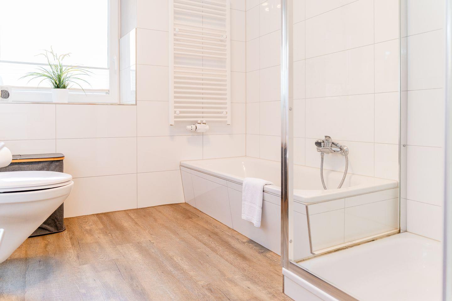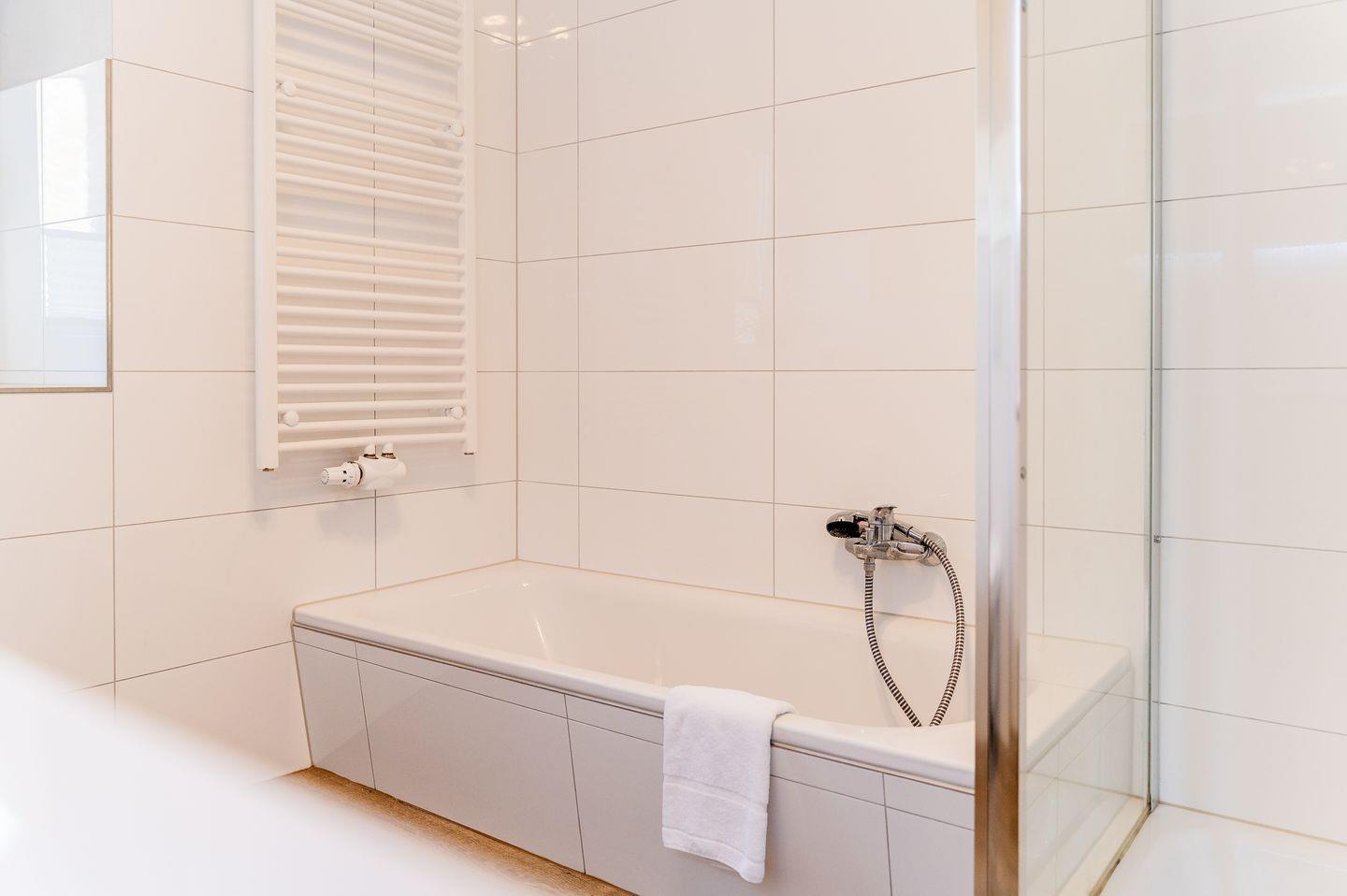 Das moderne Bad ist mit einer Badewanne und extra Dusche ausgestattet und bietet alle notwendigen Annehmlichkeiten.