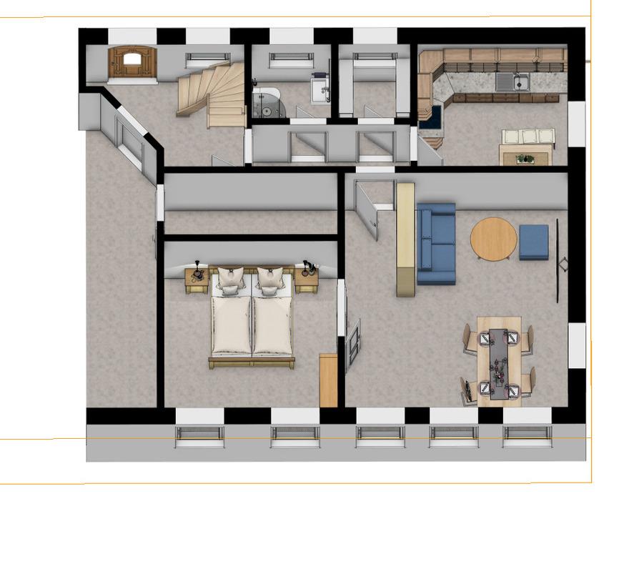 Die Ferienwohnung liegt in unserem etwa 150 Jahre altem Bauernhaus (wir wohnen nebenan). Durch einen eigenen Eingang erreichen Sie die Wohnung, sie bewohnen das östliche Ende des Hauses - ebenerdig, aber nicht barrierefrei (Türschwellen).