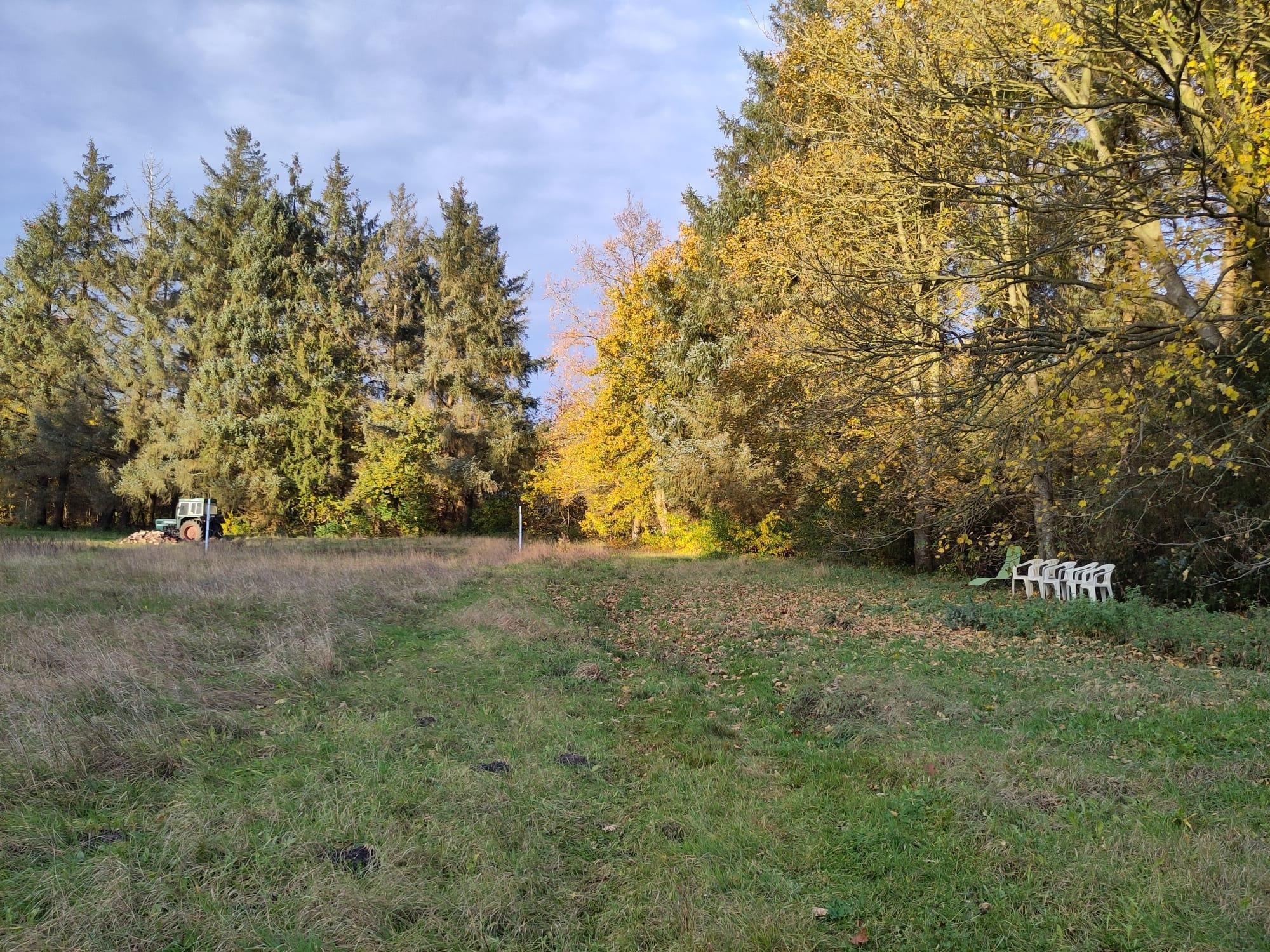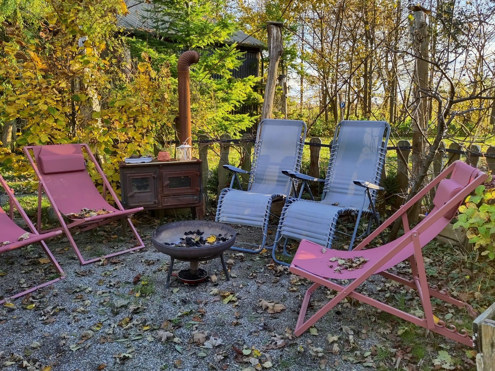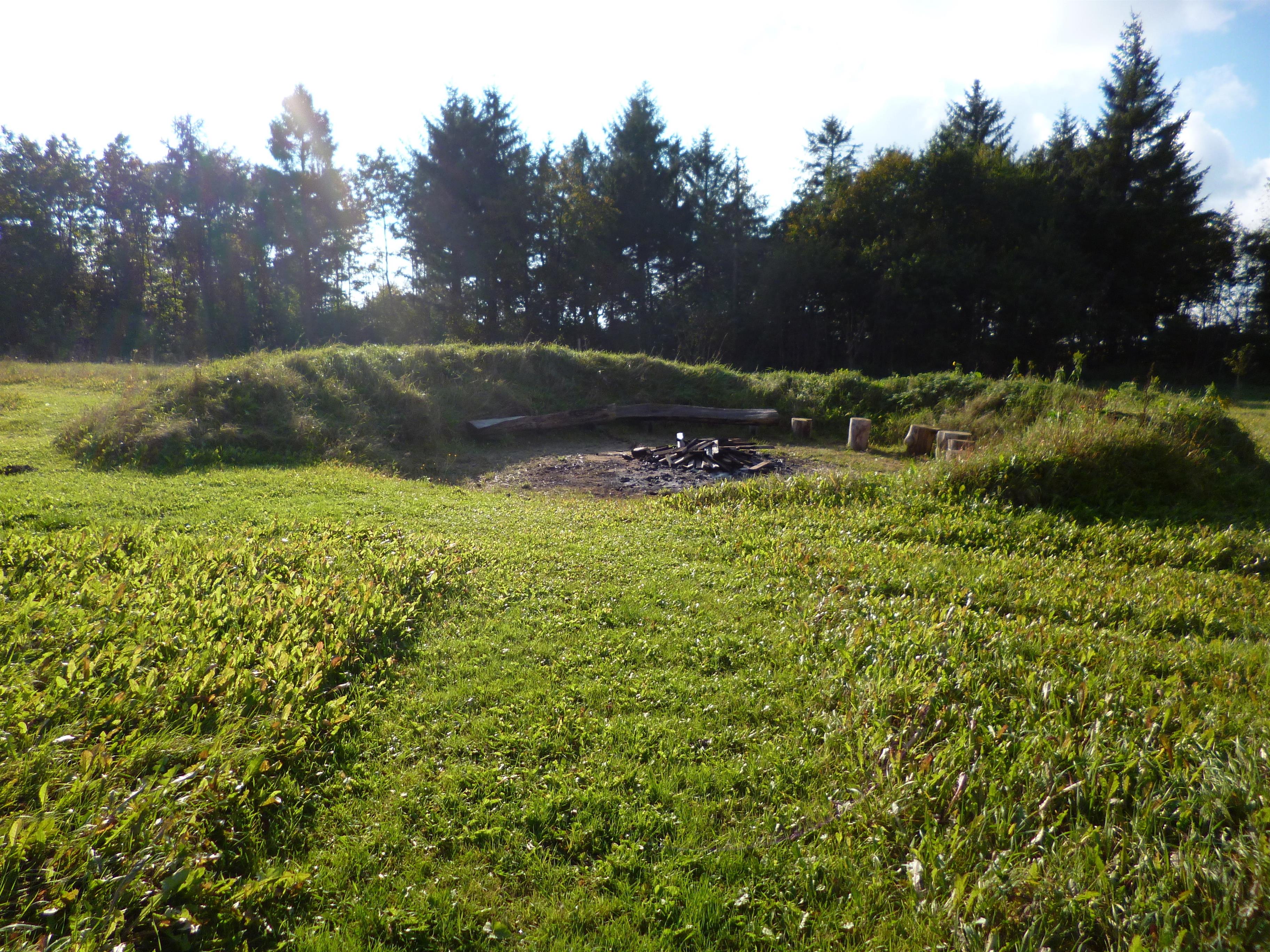 Der sehr geräumige Aussenbereich lädt zu vielen Aktivitäten ein: Lagerfeuer auf der Wiese, Spaziergänge im eigenen kleinen Wald, Grillen auf der runden Terrasse oder nur gemütlich entspannen.