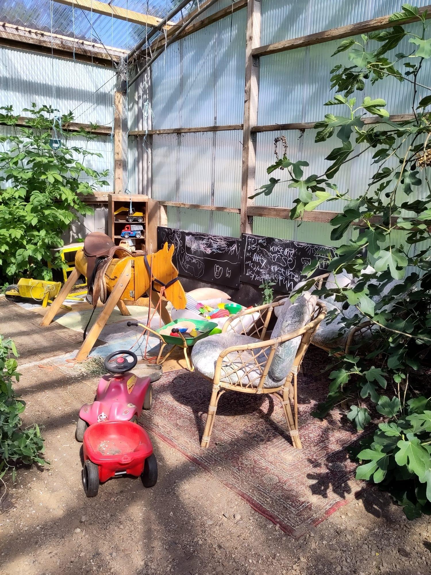 Ist das Wetter nicht so schön, gibt es unsere Orangerie, in der die Kinder und die Erwachsenen geschützt spielen können. Nur etwas Rücksicht auf unsere nachhaltig angepflanzten Obst- und Gemüsepflanzen erwarten wir. Auch dürfen Sie gern die Sitzgelegenheiten für eine gute Auszeit nutzen.