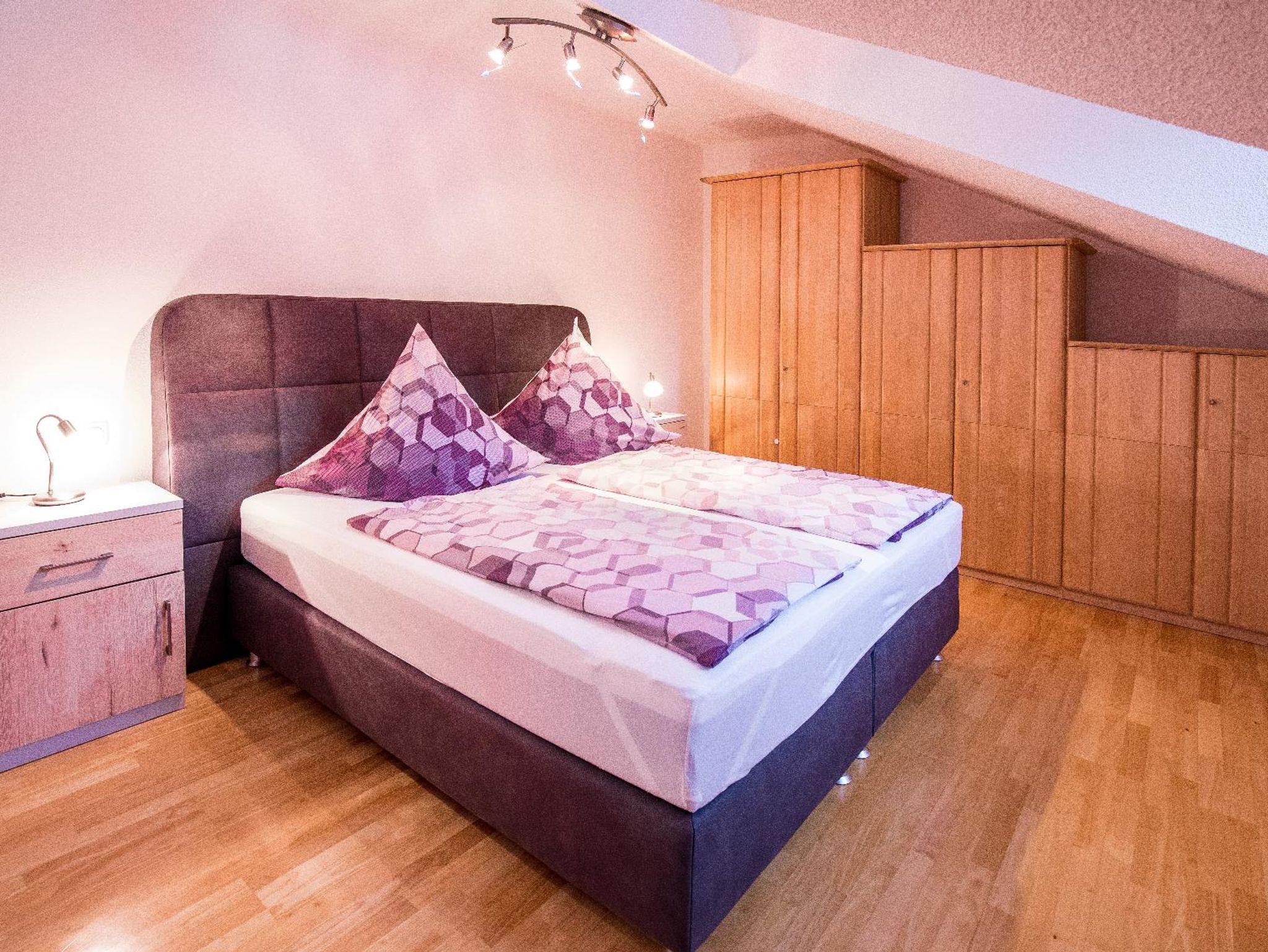 Die Ferienwohnung Woidblick ( 65m² ) mit Balkon befindet sich im 2. Stock. Das erste Schlafzimmer ist mit einem Boxspringbett und