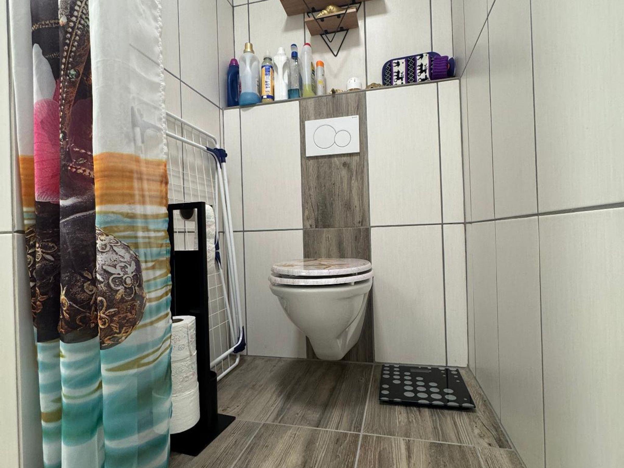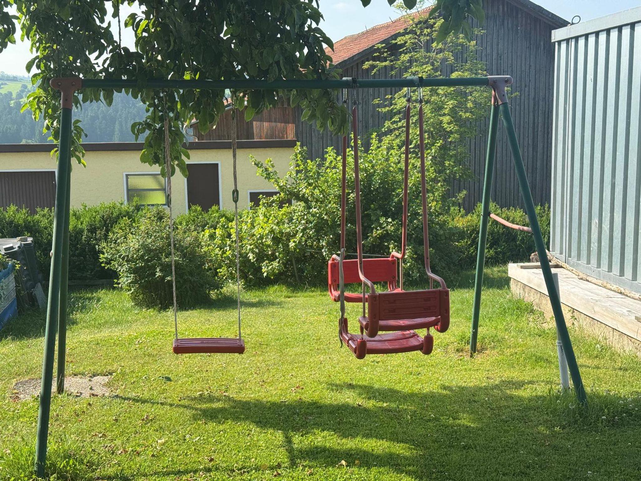 Es gibt einen großen Flur mit Garderobe und einer Nische für Gartenmöbel, Staubsauger, Wäscheständer. Das Badezimmer verfügt über Dusche, WC und Spiegelschrank sowie Vergrößerungsspiegel. Handtücher, Badetücher, Waschlappen, Duschbad und Kosmetiktücher, Seife, WC-Papier sind vorhanden. Zudem stellen wir Ihnen Spiele, kostenlose Fahrräder, Schlitten und eine Kinderschaukel zur Verfügung. Die Ferienwohnung bietet Zugang zu einem großen Garten mit eigener Quelle und Liegewiese. Es gibt einen schönen Sitzplatz mit Gartenmöbeln unter dem Balkon (regengeschützt). Auch ein Sonnenschirm und ein kleiner Grill sind vorhanden.