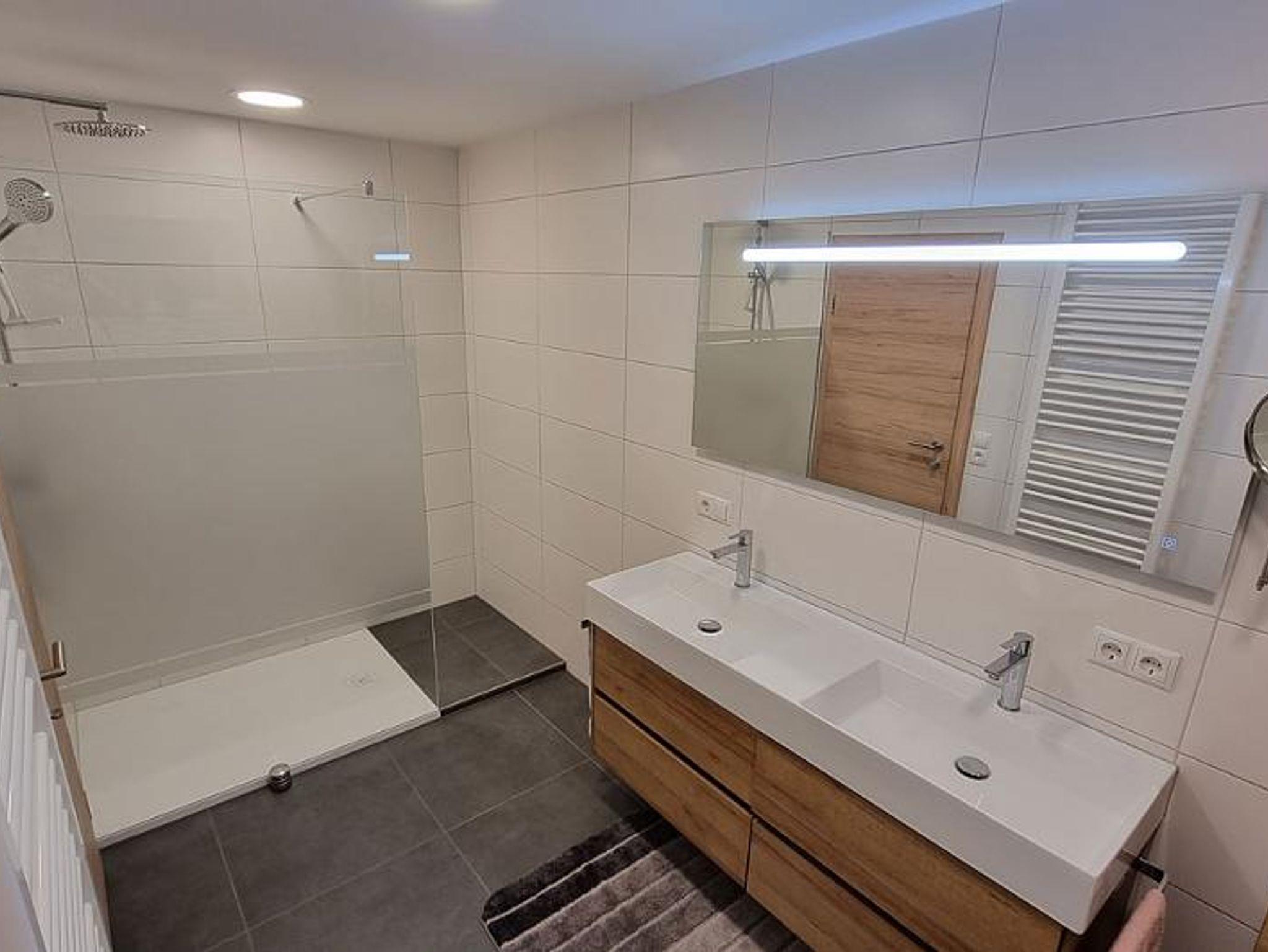 In unserer ebenerdigen Ferienwohnung im Haupthaus mit herrlicher Aussicht bieten wir Ihnen auf 70 qm für 1-5 Personen: 2 getrennte Schlafzimmer mit je einem TV, Wohnküche mit TV-SAT-Anschluss, Badezimmer mit begehbare Dusche, Doppelwaschbecken und Fußbodenheizung, WC extra, Diele, Abstellraum, große Terrasse, Garten und Liegewiese, Grillmöglichkeit auf separater Terrasse, Autostellplatz vor dem Hause.