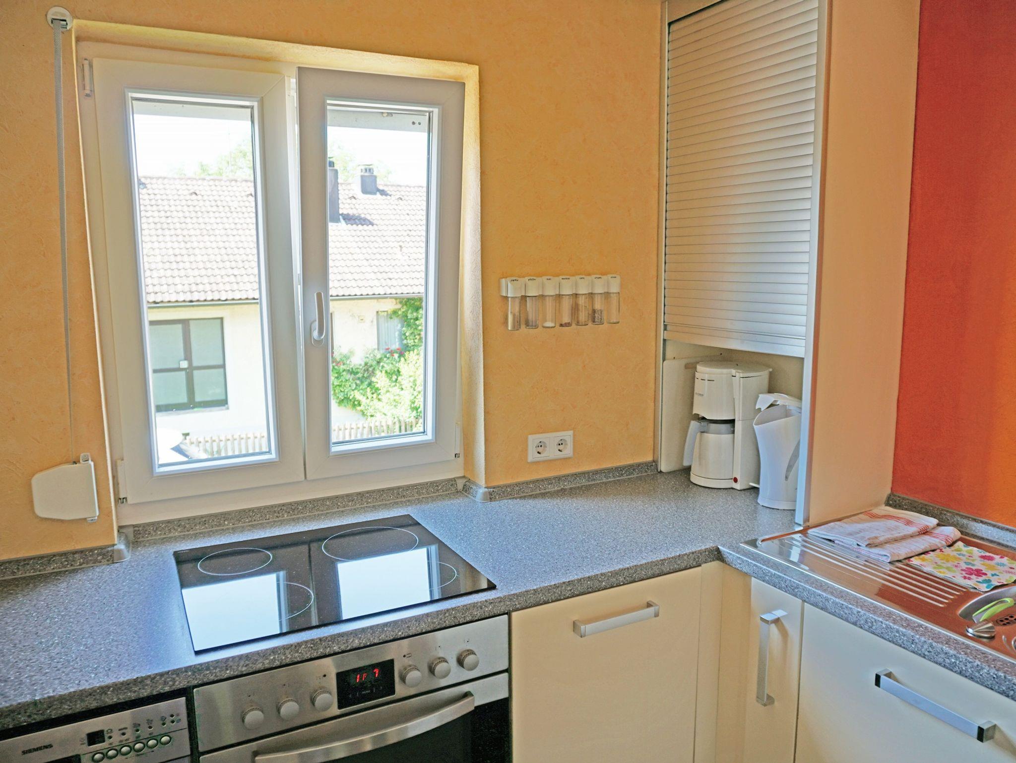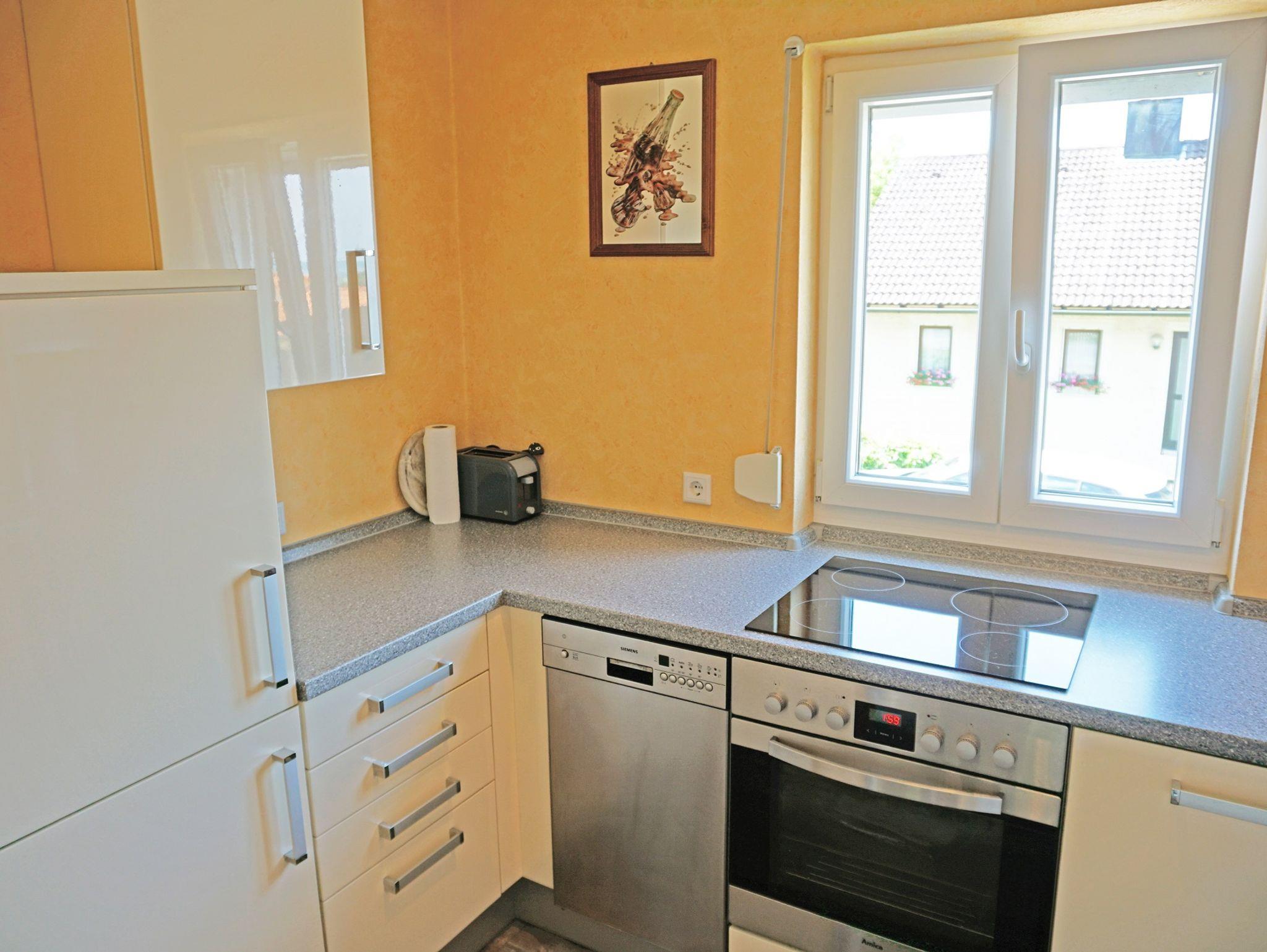 Die Küche ist mit Salz, Pfeffer, Gewürzen, Essig und Öl ausgestattet. Ebenso gibt es eine Geschirrspülmaschine, Herd mit Backofen, Kühlschrank, Wasserkocher, Kaffeemaschine und Senseo Kaffeepadmaschine.