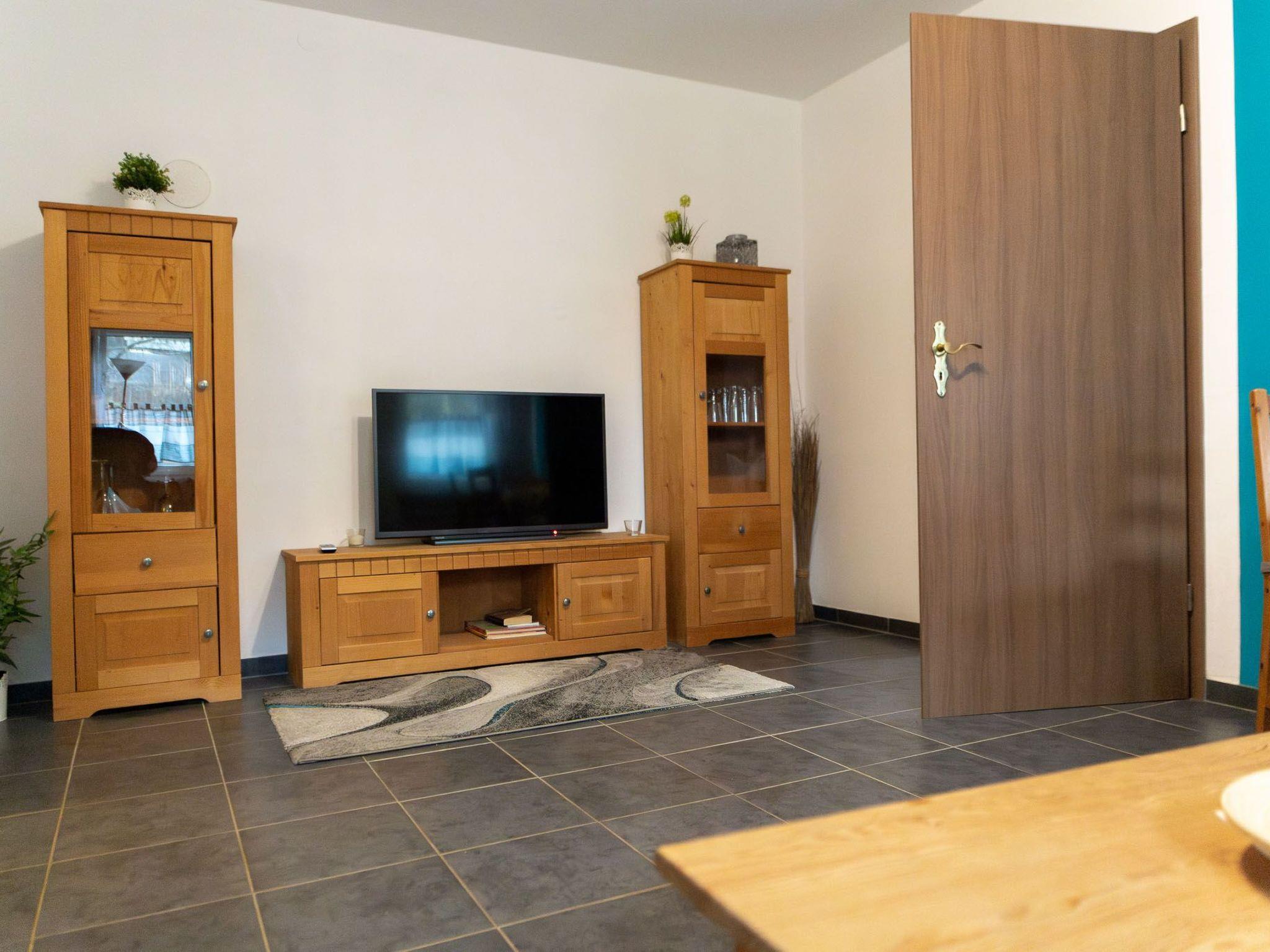 This holiday apartment freshly renovated in 2015, named Krümel after one of the ponies, is part of a riding farm with horses, ponies, donkeys, goats, hares, hens and ducks. It is on the first floor in the rear part of the farm, with a direct view of the barns.