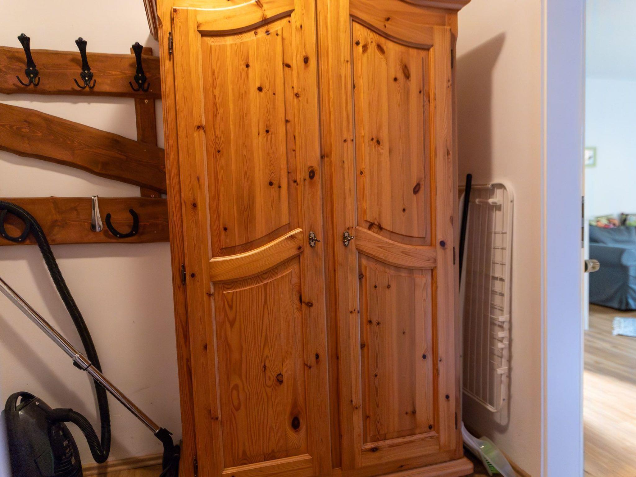 The hallway with a rustic cupboard provides access to the two bedrooms, the living and dining room and the shower room with a WC. The first bedroom is furnished with a double bed measuring 160 x 200cm, the second has two single beds (90 x 200cm) that can also be joined together. The centrepiece of the apartment is the living and dining room with two sofas for relaxing after a day trip, with a flatscreen TV with satellite channels providing entertainment in the evening. You can sit together for meals at the dining table with four chairs. The well-equipped, separate built-in kitchen includes an electric stove with four rings and an oven, a fridge and a coffee machine, toaster and kettle.