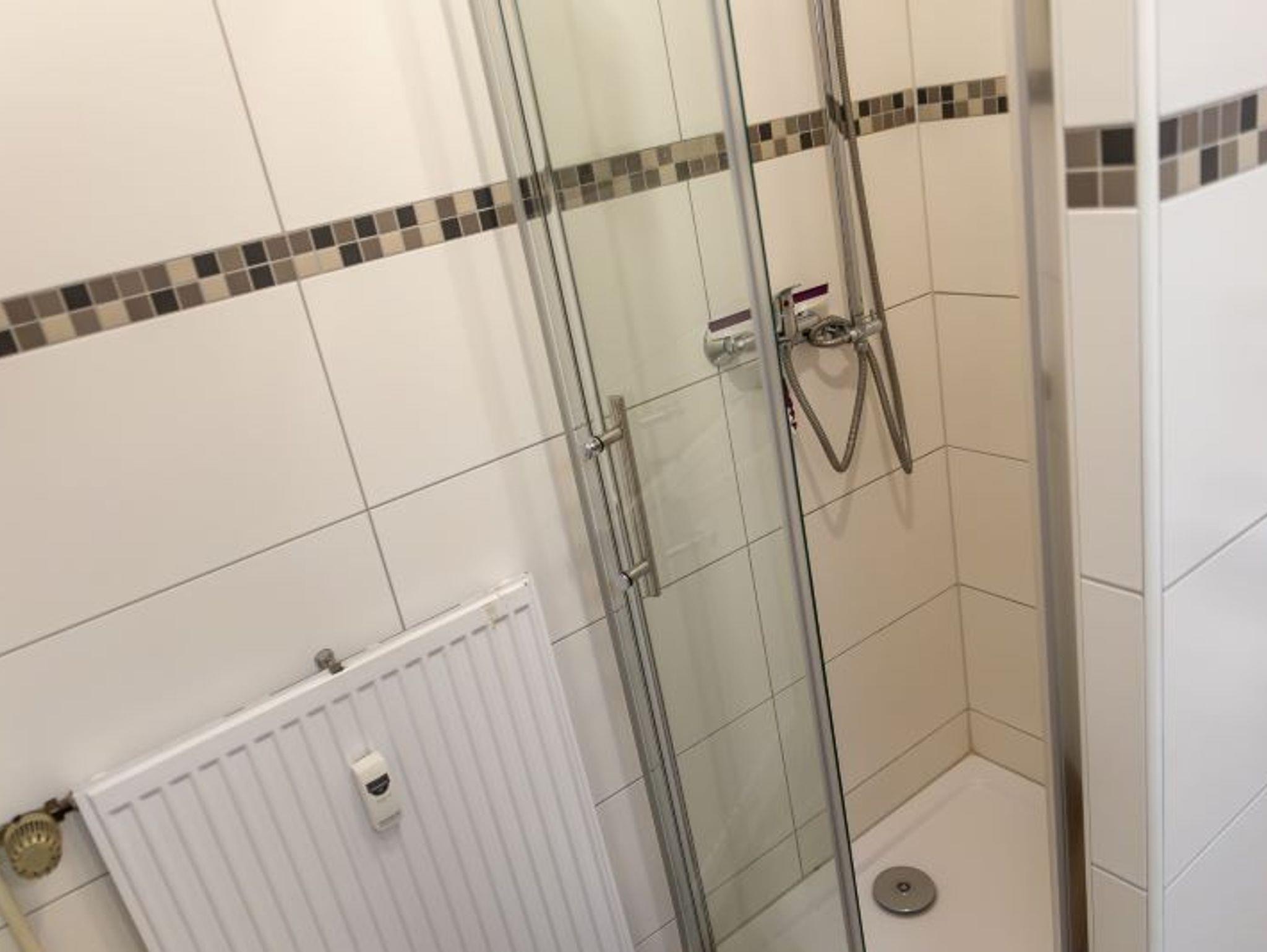 Sie verfügt über einen Flur, einem Koch-/Wohn-/und Essbereich, einem Schlafzimmer mit Ehebett (140cm x 200cm), einem Schlafzimmer mit zwei Einzelbetten (90cm x 200cm) und einem Bad mit Dusche, WC sowie beleuchtetem Spiegelschrank. Die Einbauküche ist mit einem Herd mit Backofen, einer Spülmaschine, einem Kühlschrank mit Gefrierfach sowie mit Kaffeemaschine, Toaster, Wasserkocher, etc. bestens ausgestattet.