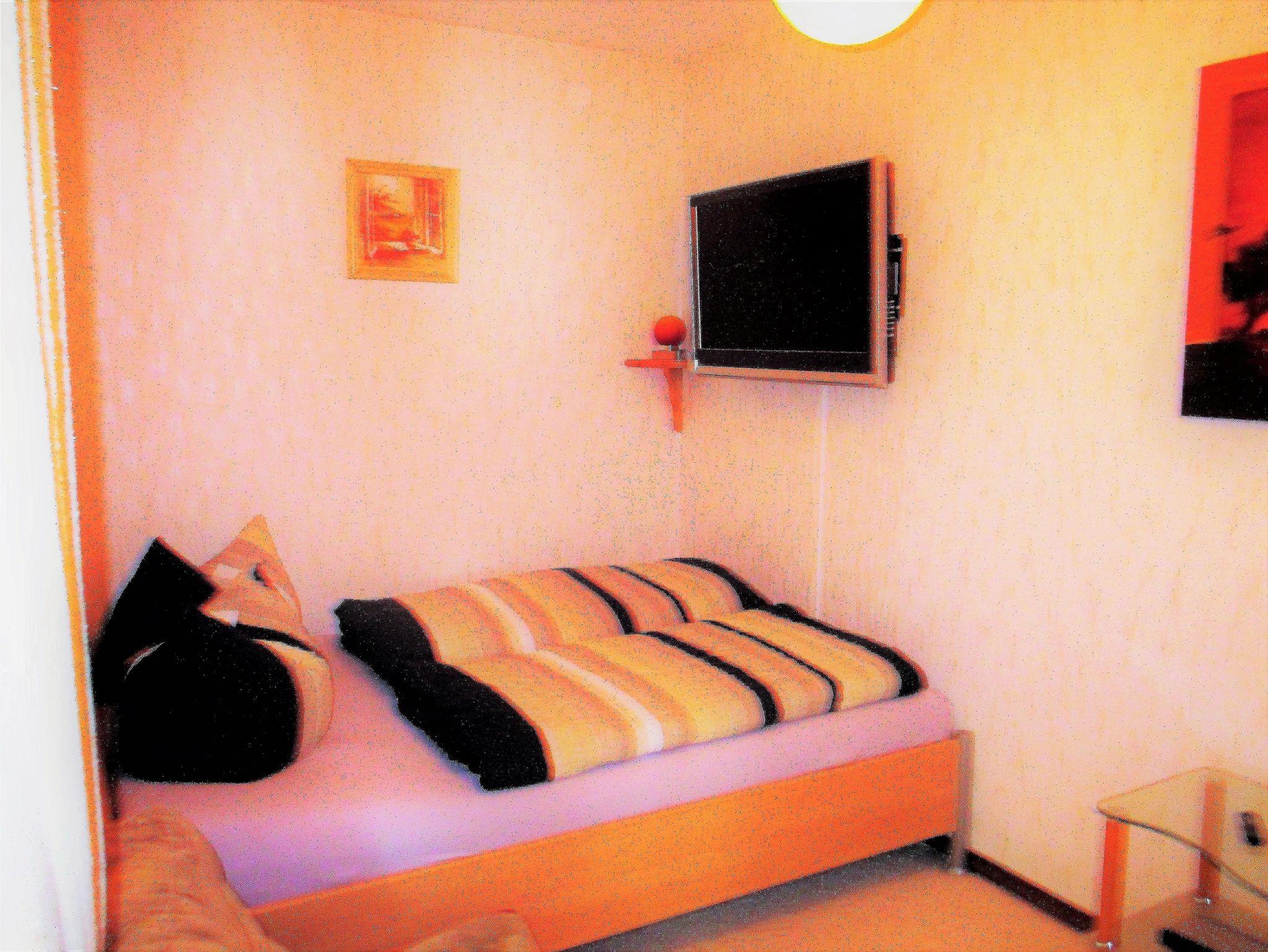 Unsere Wohnung Ginger wurde nach unserem Jungpferd, welches bei uns auf der Finkenmühle geboren wurde, benannt. Die Wohnung befindet sich in der zweiten Etage und hat einen Balkon, auf dem man schon zum Frühstück die Sonne genießen kann. Die Wohnung verfügt über einen Flur mit Schrank, einen großen Wohn-Essbereich mit Flachbildfernseher, eine große Einbauküche, ausgestattet mit Kühl-Gefrierschrank, Toaster, Kaffeemaschine etc., ein Schlafzimmer mit Doppelbett (140cm x 200cm) und Flachbildfernseher, einen zweiten Schlafraum mit zwei Einzelbetten (90cm x 200cm) und ein Bad mit Dusche, Waschtisch, Spiegelschrank mit Beleuchtung, WC und Waschmaschine( zusätzliche Kosten durch Benutzung der Waschmaschine, da diese durch einen Münzautomat betrieben wird).