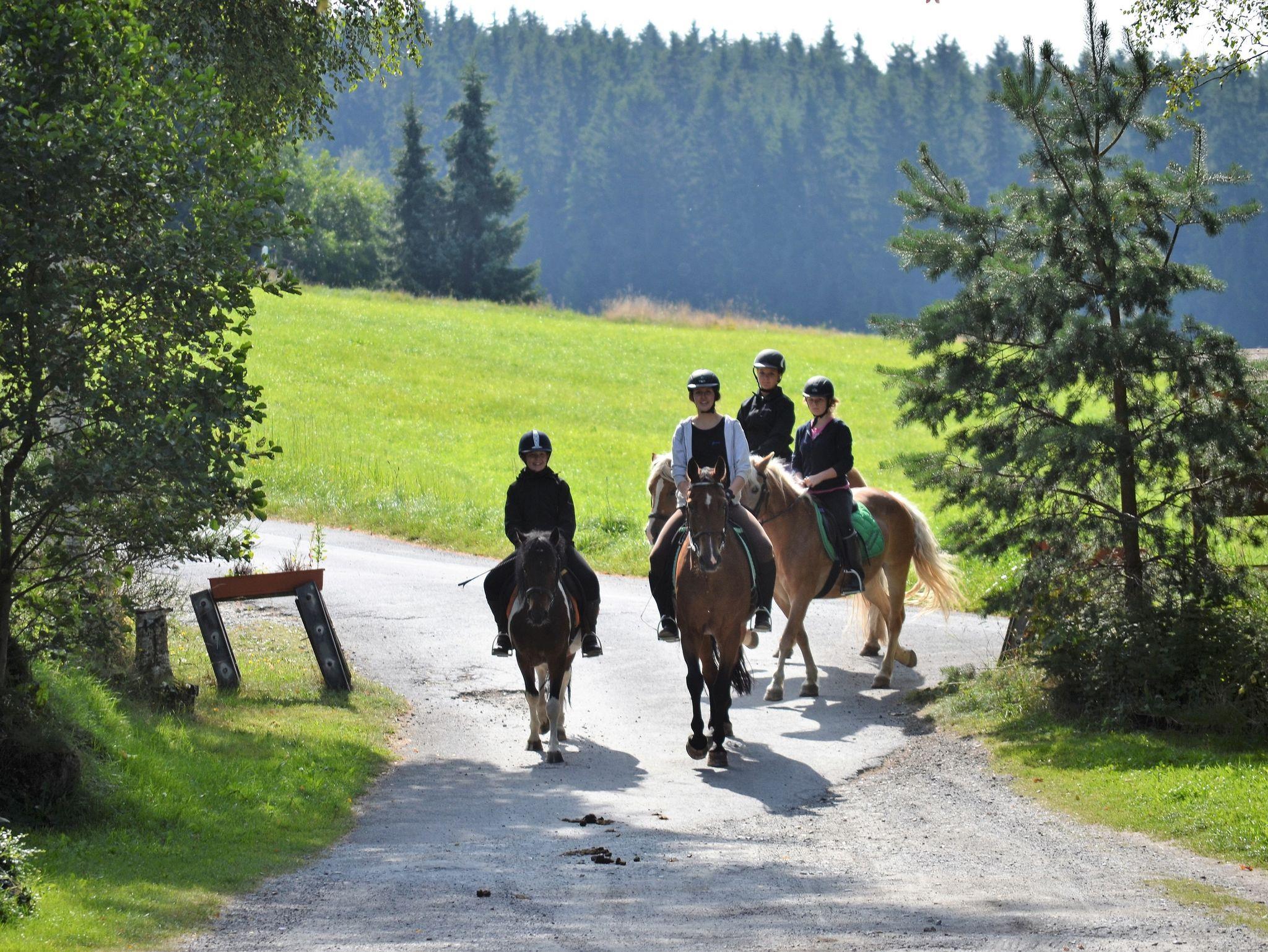 Durch die herrliche Alleinlage am Waldrand bietet sich die Möglichkeit, die Gegend zu Fuß, mit dem Fahrrad oder hoch zu Ross mit dem eigenen oder einem von unseren Pferden zu erkunden.