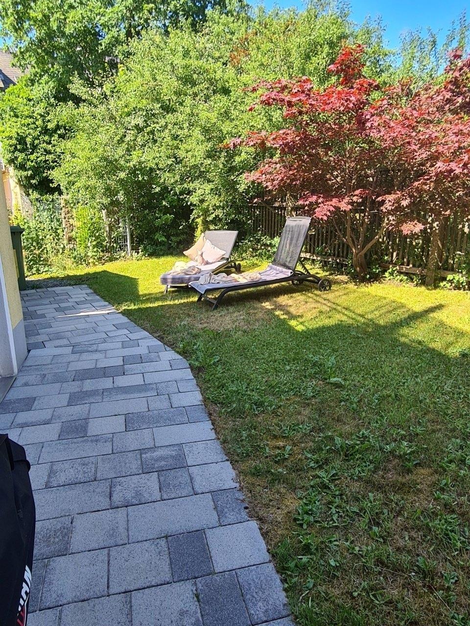 Sonnenliegen und ein Gasgrill sorgen dann für die nötige Entspannung im kleinen Garten im Hinterhof.
