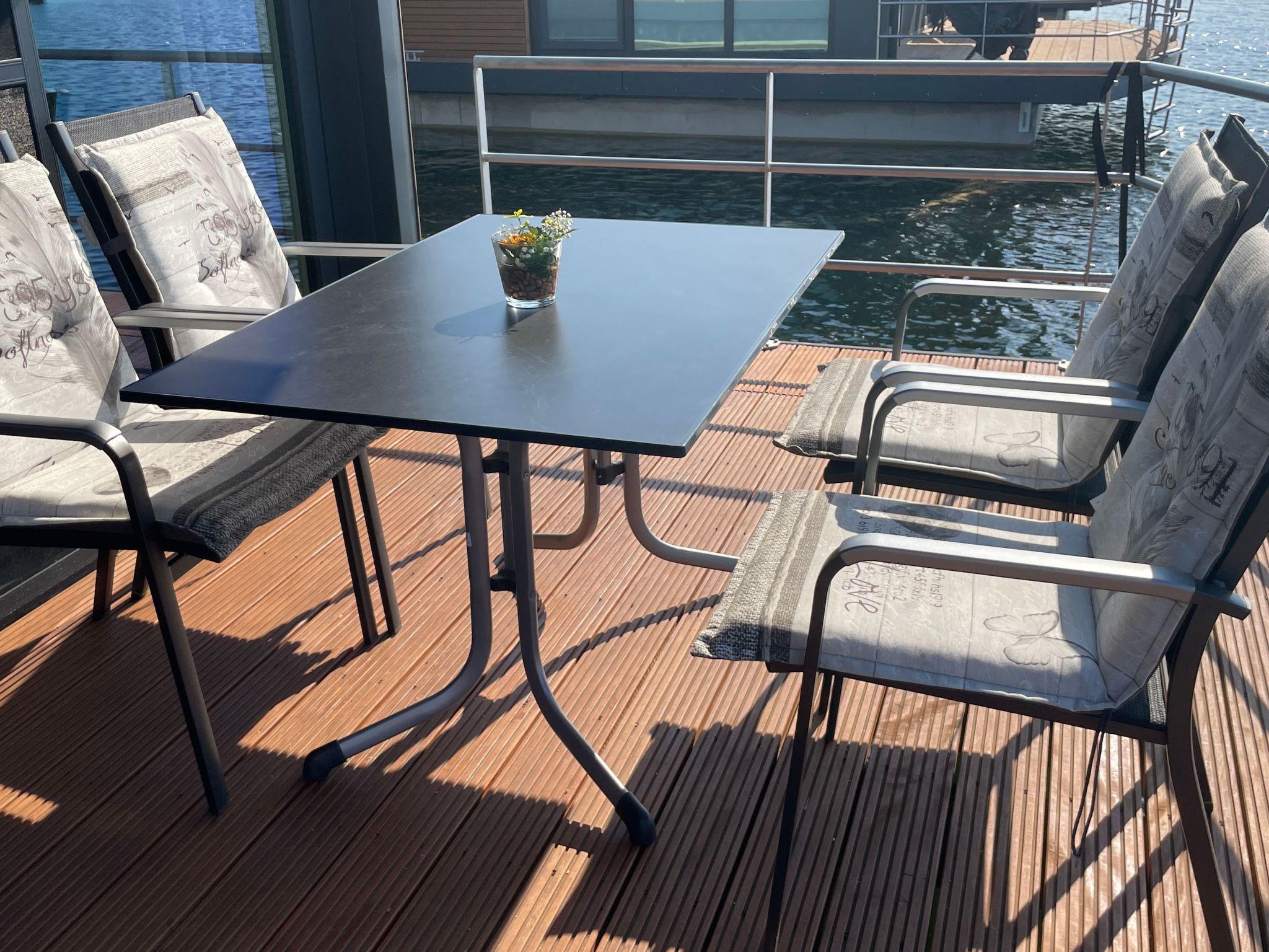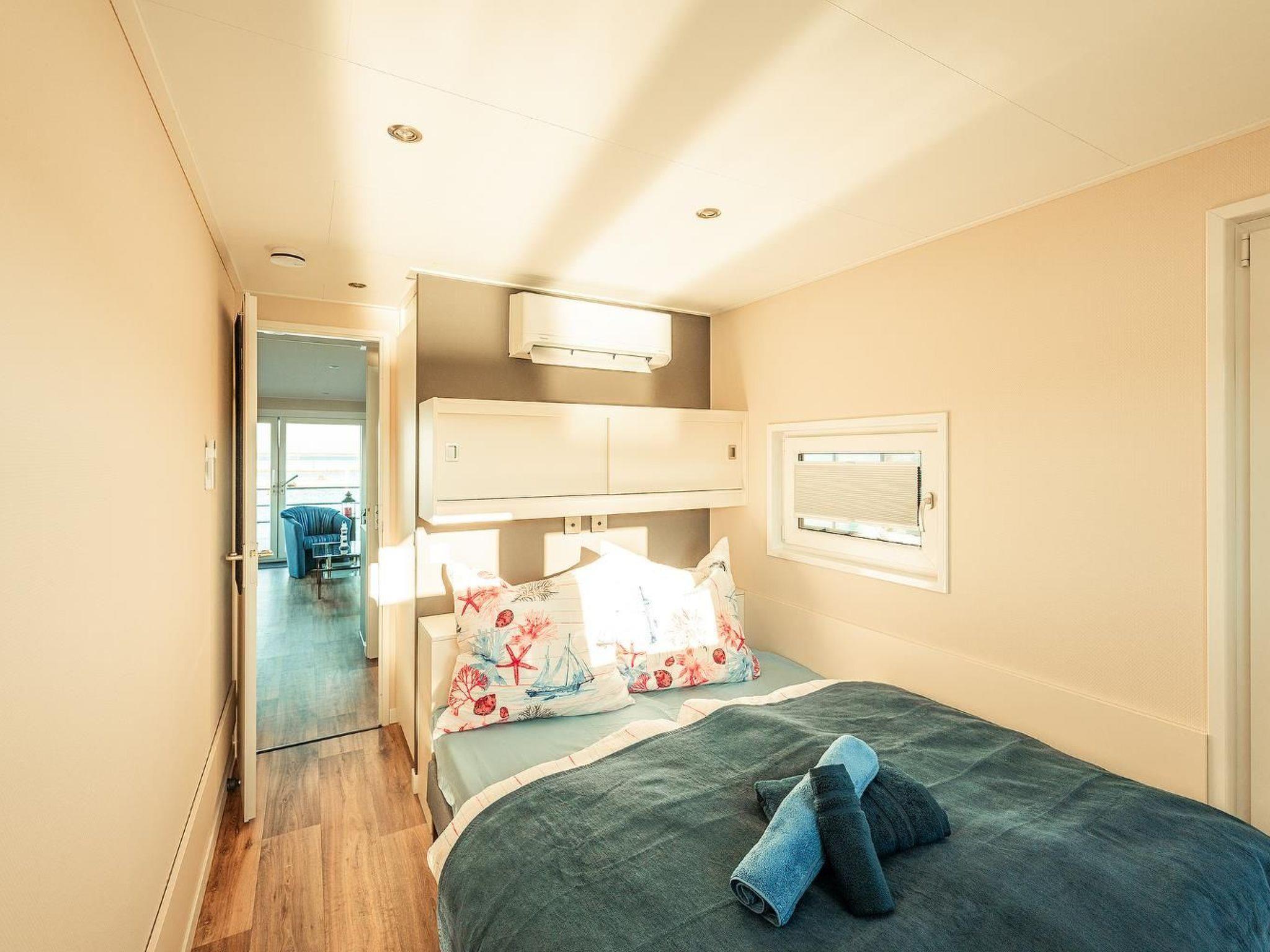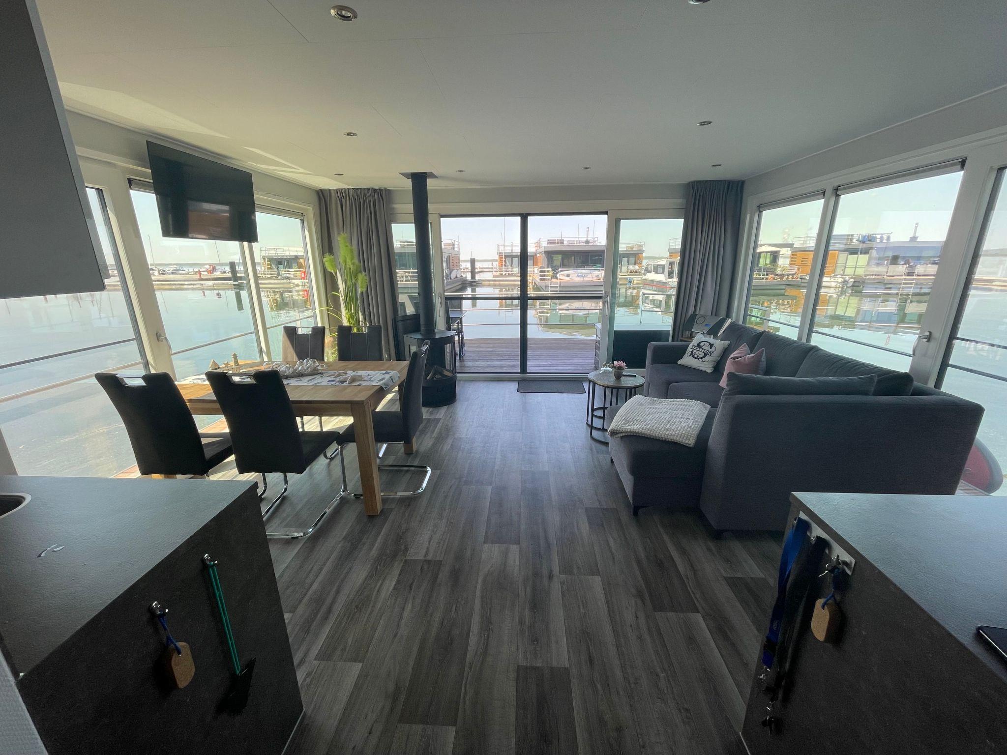 Dive away from everyday life and into your dream home on the water! The moored houseboat "Seestern" offers everything you need for a relaxing holiday with its high-quality living space and two sun terraces. Thanks to the breathtaking view, nothing stands in the way of relaxation and recreation. The house has two bedrooms, each with a comfortable double bed (1.60 m x 2.00 m). The bathroom is equipped with a shower, washbasin, mirror and a separate WC. The living and dining area is a stylishly furnished room. The fully equipped eat-in kitchen includes a fridge with freezer compartment, dishwasher, ceramic hob, microwave, coffee machine, toaster, kettle, crockery, cutlery and much more.from the living and dining area you can access the terrace and enjoy your meals in the lounge area or simply relax and unwind. A car park is available free of charge. You can drive close to the jetty for loading and unloading. Bed linen, towels and a cosy sofa blanket are included.