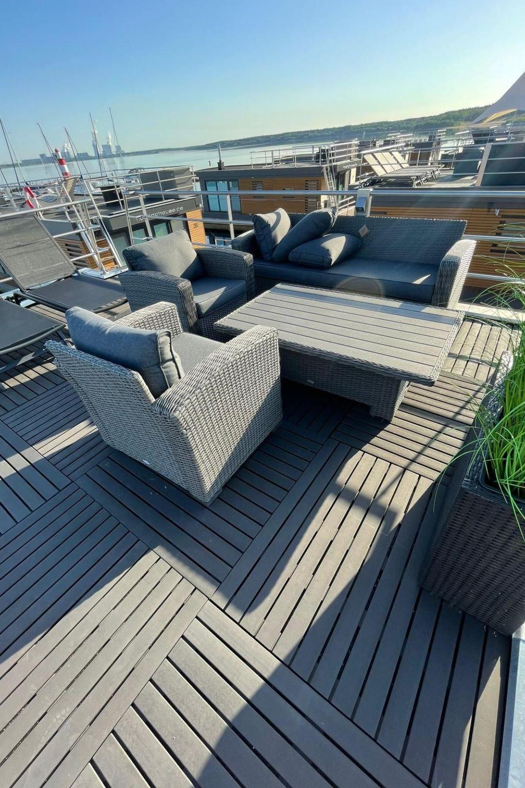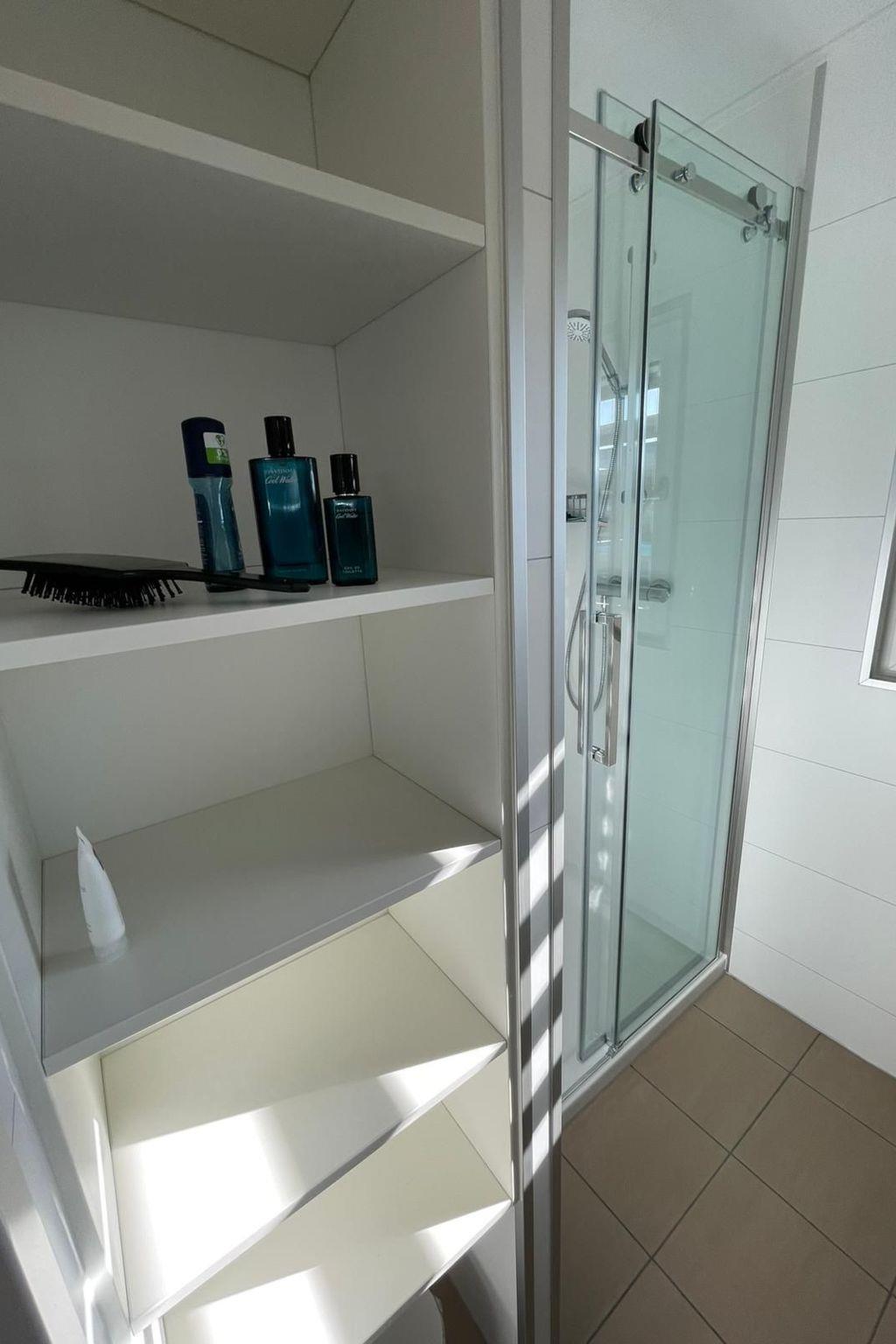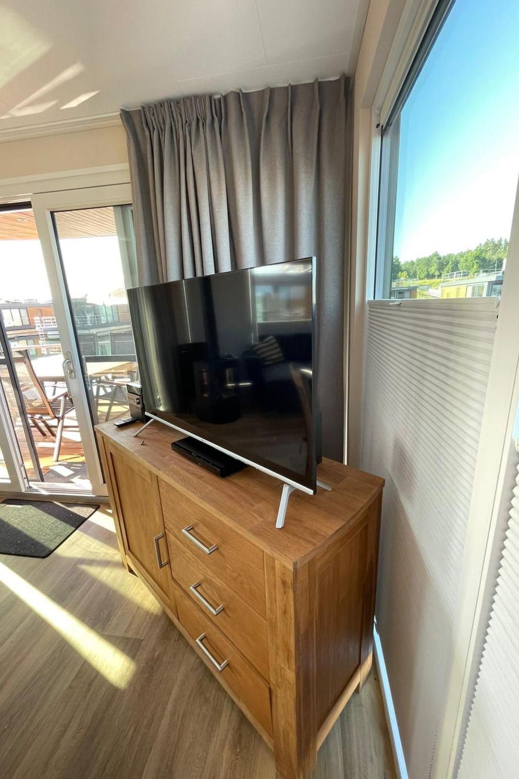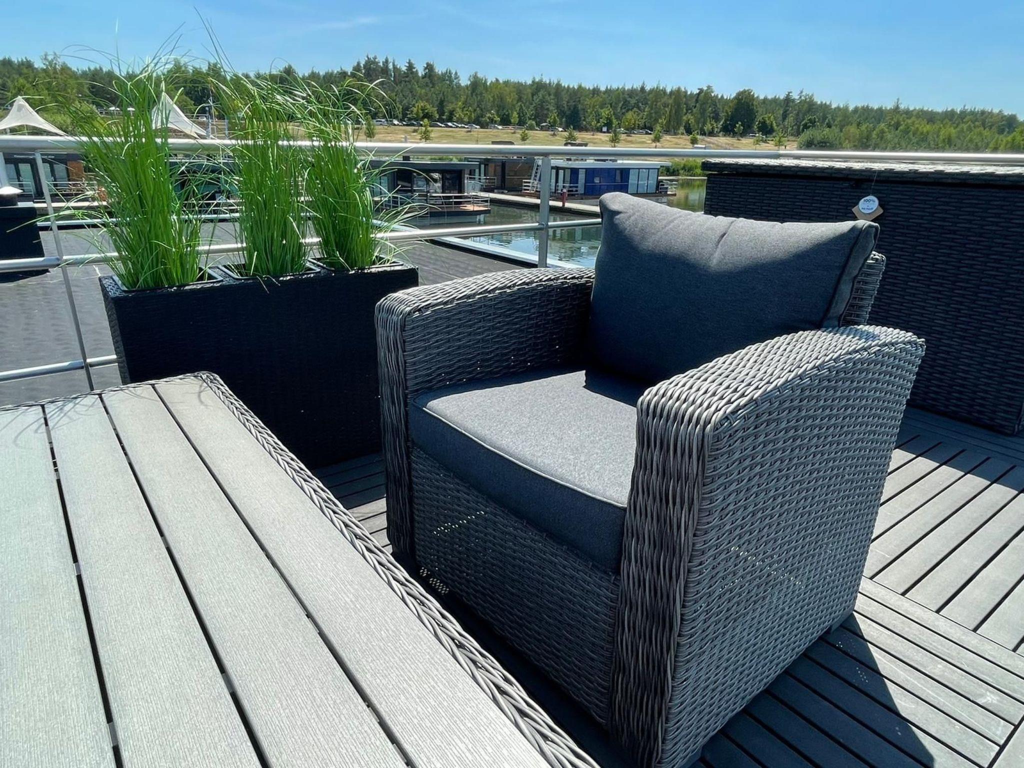Dive away from everyday life and into your dream home on the water! The moored houseboat "Vroni" offers everything you need for a relaxing holiday with its high-quality living space and two sun terraces. Thanks to the breathtaking view, nothing stands in the way of relaxation and recreation.the house has two bedrooms, each with a comfortable double bed (1.60 m x 2.00 m). The bathroom is equipped with a shower, washbasin, mirror, hairdryer and a separate WC. The living and dining area is a stylishly furnished room. The fully equipped eat-in kitchen includes a fridge with freezer compartment, dishwasher, ceramic hob, microwave, coffee machine, toaster, kettle, crockery, cutlery and much more.from the living and dining area you can access the terrace and enjoy your meals in the lounge area or simply relax.a car park is available for you free of charge. You can drive close to the jetty for loading and unloading. Bed linen, towels and a cosy sofa blanket are included.