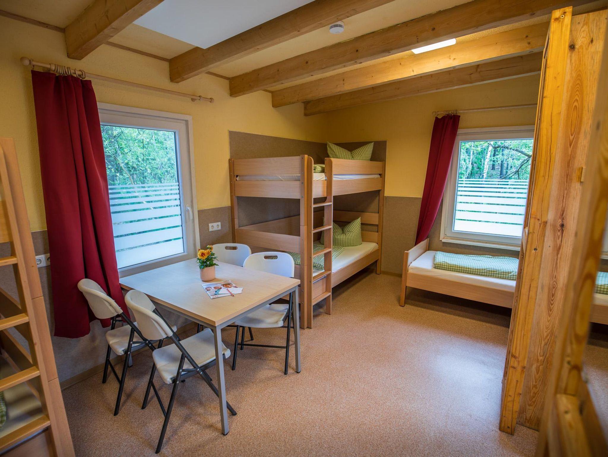 Unsere Bungalows liegen idyllisch am Wasser und wurden 2022 neu errichtet. Sie sind beheizbar und mit zwei Etagenbetten sowie zwei Einzelbetten, Schrank, Tisch und Stühlen ausgestattet, es befinden sich KEINE Toiletten und Duschen in den Bungalows. Die Sanitäranlagen befinden sich in einem zentralen Wasch- und Duschgebäude.