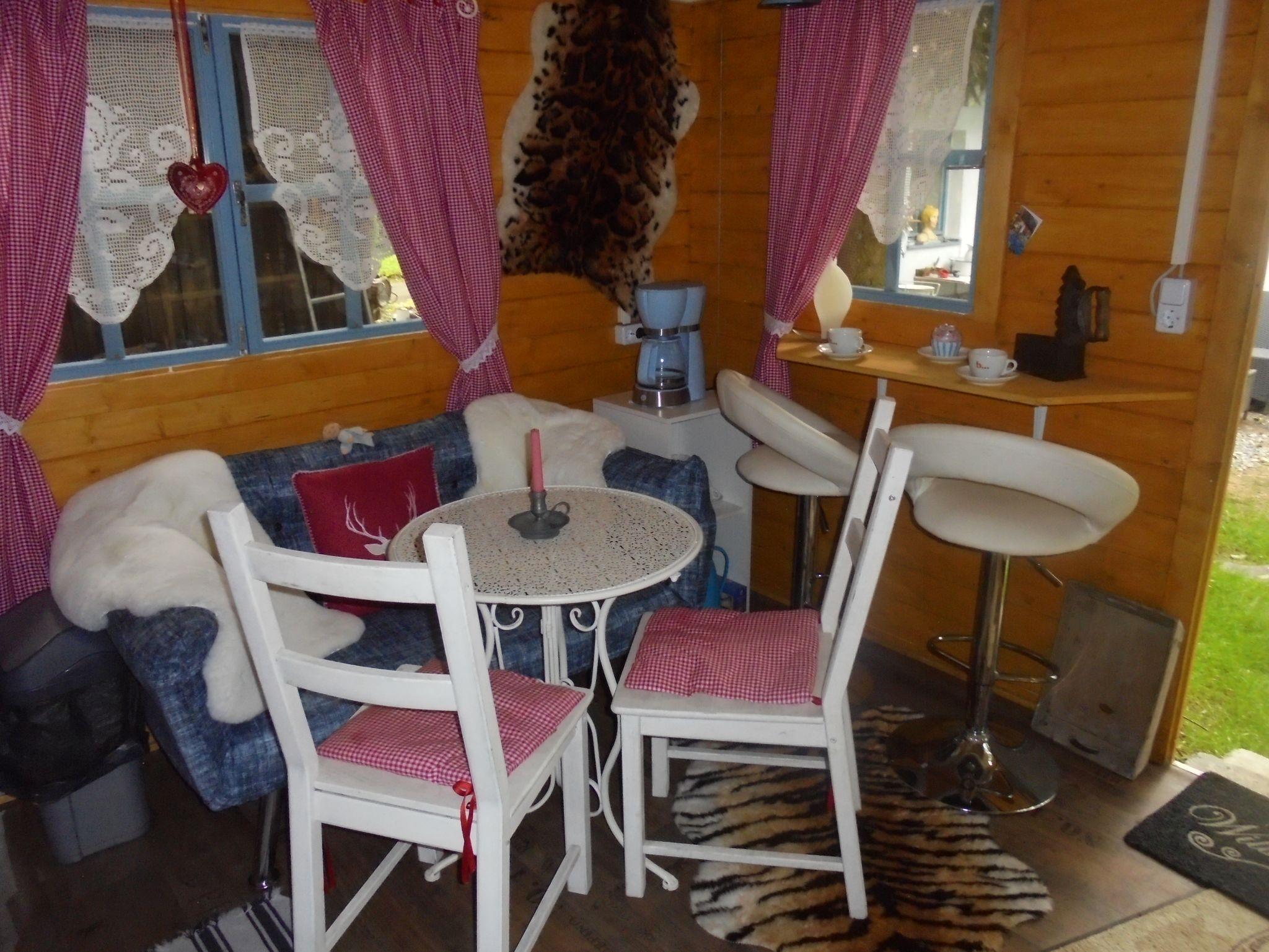 Inmitten eines schönen Romantikgarten, befindet sich das Tinyhaus 1, welches aus finnischen Holz in blauer Farbe erstrahlt. Direkt neben Lissys Romantik-Puppenhaus, welches aufgrund seiner Einrichtung sowohl einen romanti-schen als auch einen rustikalen Flair ausstrahlt, finden Sie einen Steingrill und ein Gourmetgrill vor, wo die lauen Sommerabende genossen werden können. In dem historischen Blockbohlenhaus können Sie von einer kleinen Küchenzeile mit Infrarotbackofen, Spülmaschine und separaten Handwaschbecken bis hin zu einer auskappbaren Bettcouch mit Bettwäsche entdecken. Die romantische Atmosphäre wird durch den offenen Kaminofen unterstützt und strahlt ein gemütliches Ambiente aus. Die Toilette und Dusche ist links nebenan.