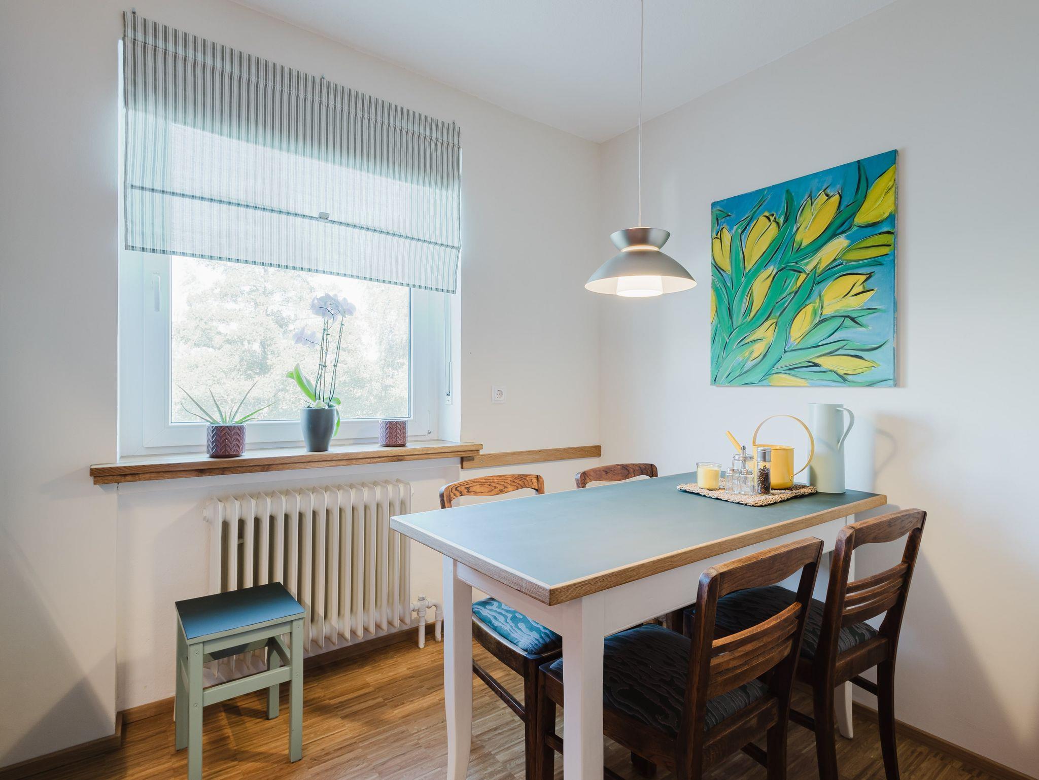 Unsere liebevoll renovierte, helle, im entspannten Skandi-Stil neu eingerichtete Wohnung befindet sich in ruhiger, zentrumsnaher Lage in der Stadt Weiden. Bis zu vier Personen können in den zwei behaglich eingerichteten Schlafzimmern übernachten, mit einem Zustellbett bis zu fünf. Zur Ausstattung der 81 Quadratmeter großen Ferienwohnung zählen außerdem ein geräumiges, komfortables Wohnzimmer, eine komplett eingerichtete Wohnküche, ein großzügiger, überdachter Balkon, eine Dusche mit Fußbodenheizung und ein abgeschlossenes WC. Nachhaltigkeit liegt uns sehr am Herzen. Ökostrom und Ökogas sorgen für eine gute Klimabilanz, massives Eichenparkett und Mineralfarben für eine gesunde Wohnatmosphäre. Wer Ruhe und Entspannung sucht, ist hier genau richtig. Ungeeignet ist die Wohnung für Feier- und Partygäste.