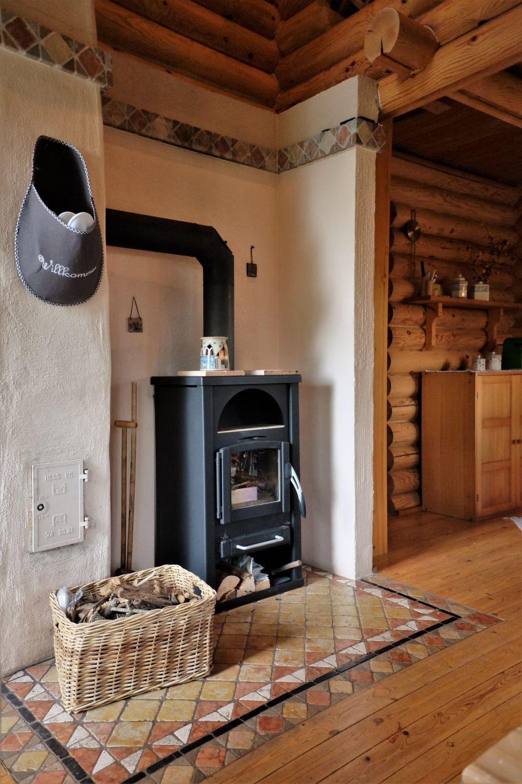 The cottage has a very cosy living room with sofa (new), sitting area and wood-burning stove, new LHD TV, radio, telephone, CD player, DVD player and Internet connection are available, but can be switched off or removed if required. The parvi can be reached via a rung ladder. There is a sleeping area with a new mattress for two people under the roof of the cottage. The living room leads to a small bedroom with bunk beds for two people and a desk: all made of wood. A passageway connects the living room with the kitchen at the other end. The kitchen is fully equipped except for a dishwasher and oven. It offers space and tools for successful and idyllic cooking and barbecue evenings. The bathroom with shower, WC and washbasin can also be accessed from here. The shower - like the cottage itself - is Finnish-style: there is no shower tray as is standard here: the water falls directly onto the bathroom floor, which initially seems unusual to us. However, we can report from our own experience that you get used to it very quickly. The bathroom itself then provides the door to the cosy seating area behind the hut. The view of the ancient jungle can quickly put the hectic pace of everyday life into perspective.