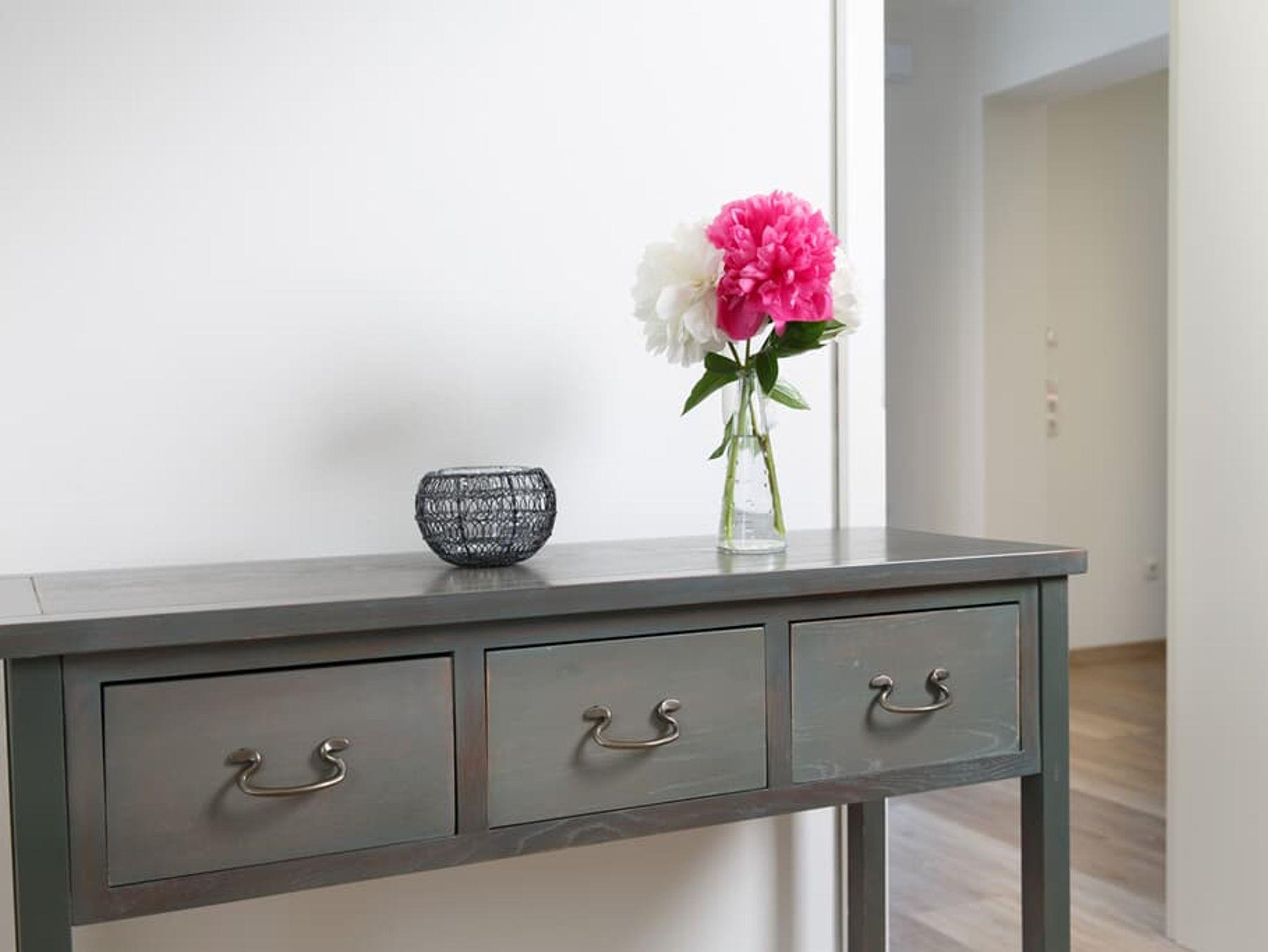 • Eine großzügig gehaltene Garderobe schafft Platz für Ihre Kleidung, Koffer und Schuhe.