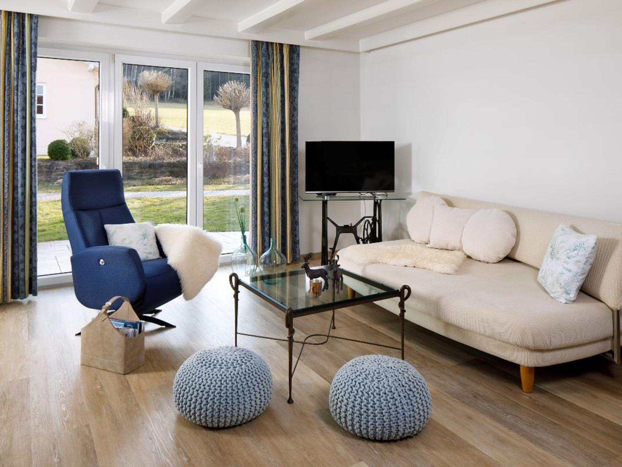 • Ein großes Design – Sofa, ein Relax Sessel in hervorragender Sitzqualität und zwei Hocker schaffen Ihnen Entspannung vorm Kamin und einen herrlichen Blick auf die Hügel und Wälder unserer Gegend.
