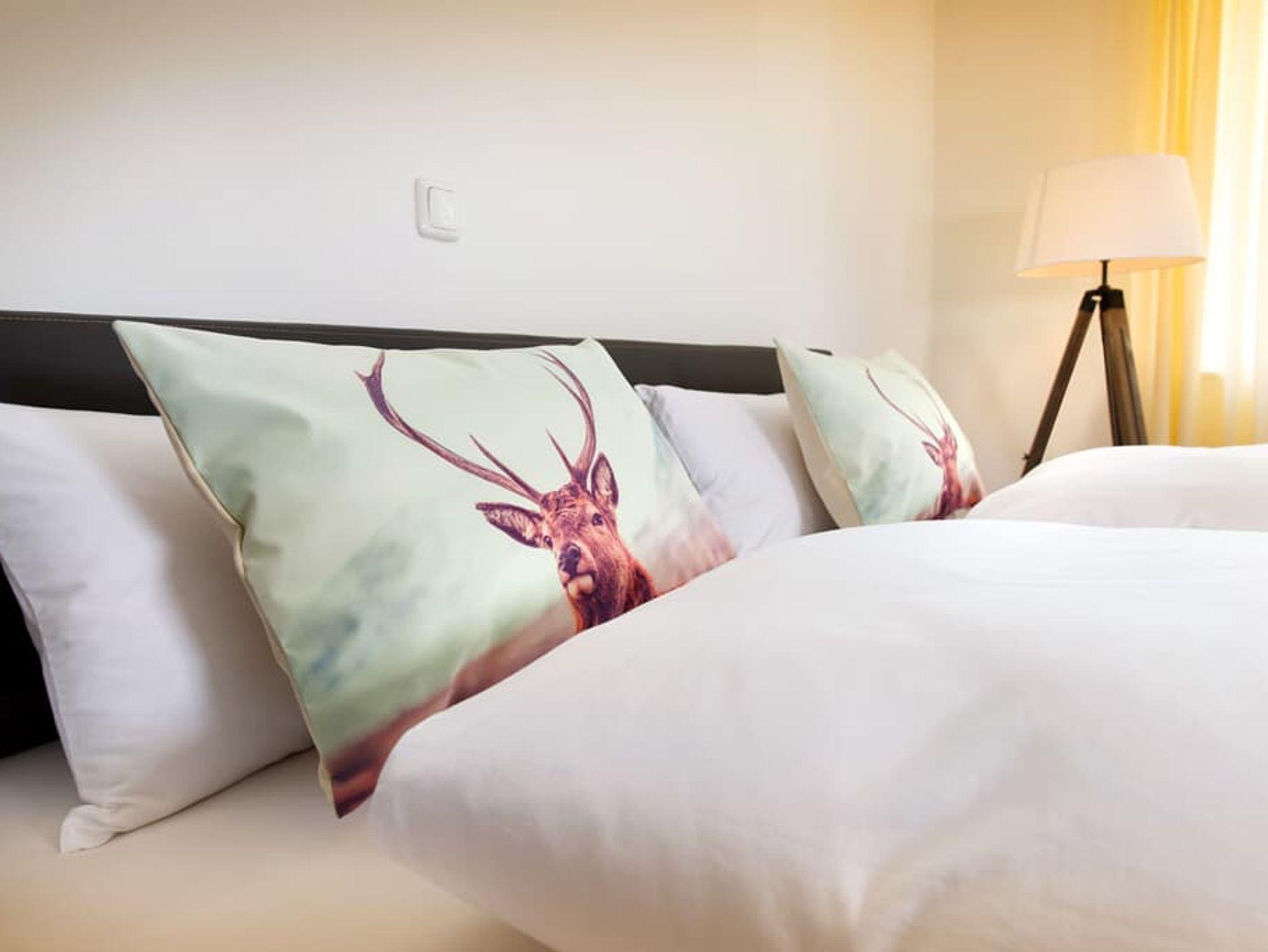 • Schlafraum (für Allergiker geeignet, behindertengerecht nach DIN): Bettwäsche und Handtücher, Doppelbett (Fußende offen), getrennte Matratzen
