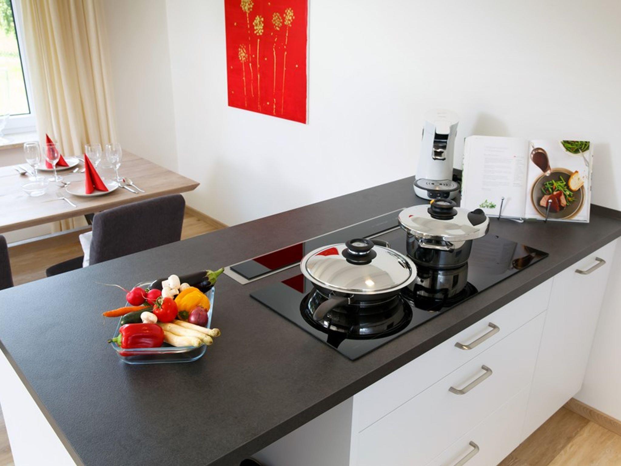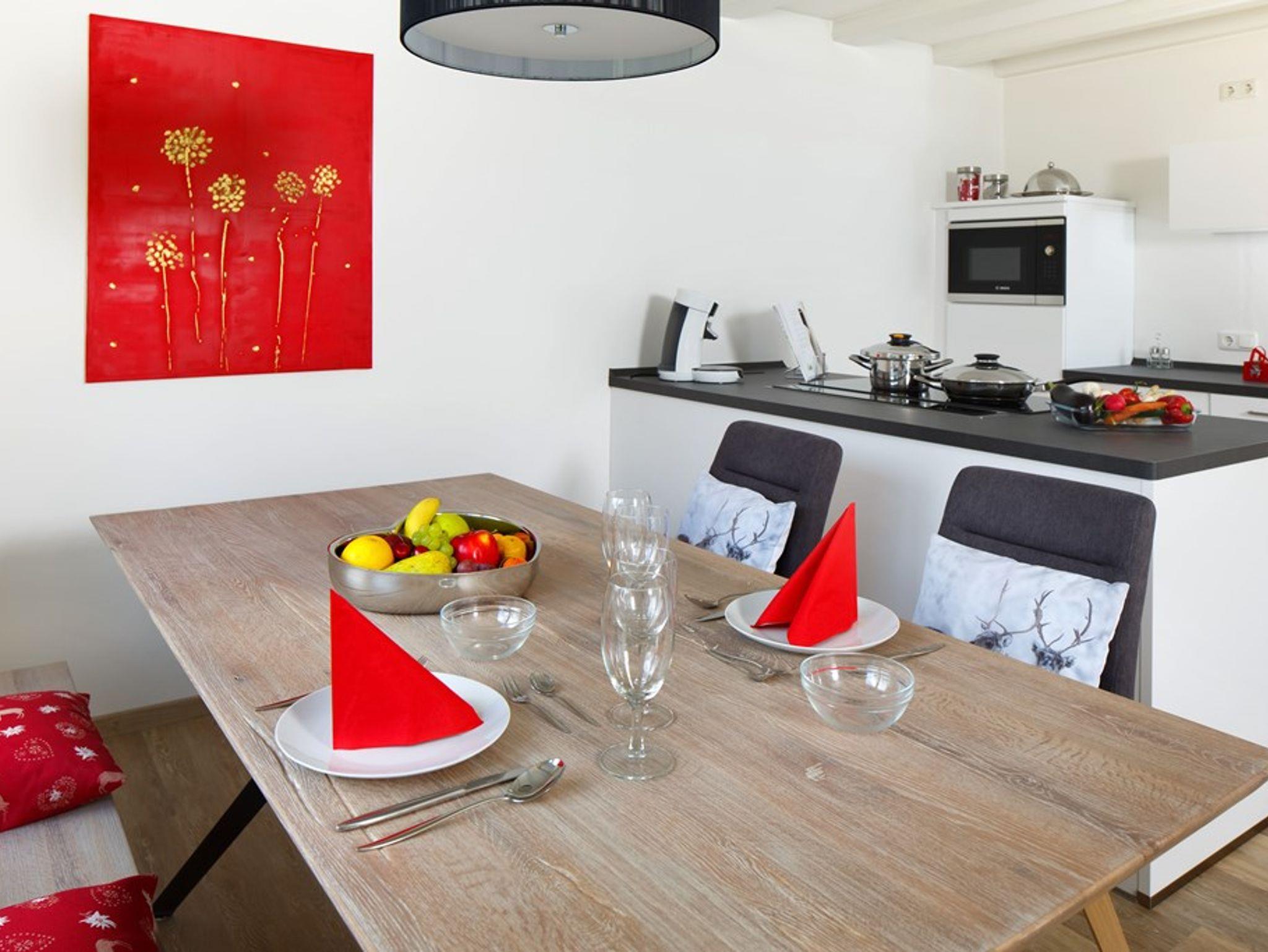 • Geschirrspüler, Saecco Kaffeemaschine, Milchaufschäumer, Kühlschrank, Mikrowelle/Backofen, Toaster, Minibar, Küchenwäsche, Essecke, Kaminofen, Schreibtisch, Fernseher, Internetanschluss, Radio, Satelliten-TV
