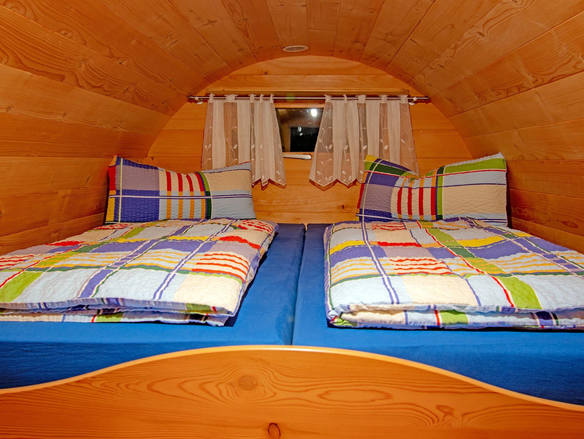 Das 2 Meter hohe, gemütliche Schlaffass mit großem 2x1,8 Meter Familienbett macht den Familienurlaub am Loberhof zu einem unvergesslichen Erlebniss. Je nach Alter und Größe können im Schlaffass 2-4 Personen übernachten.