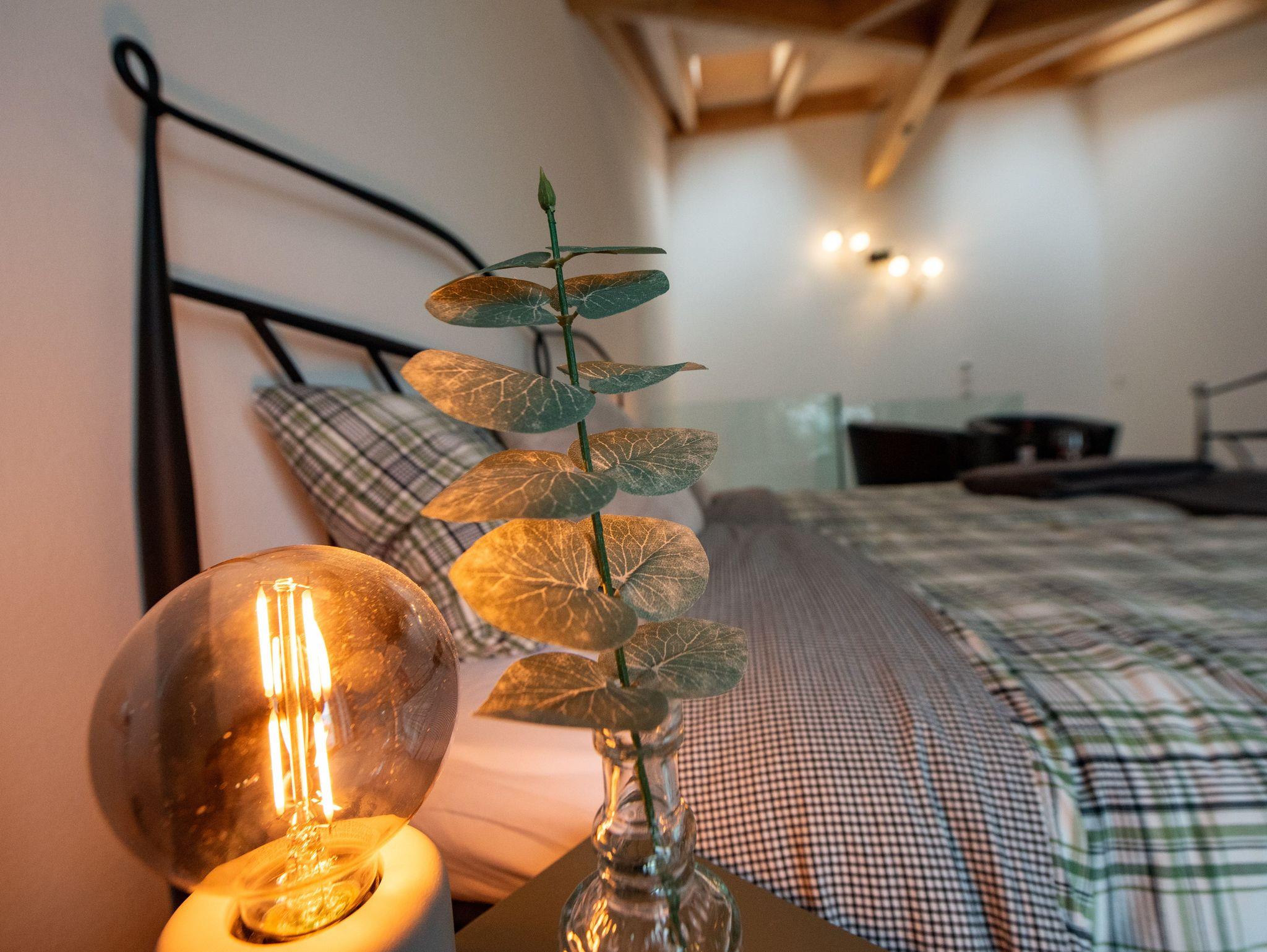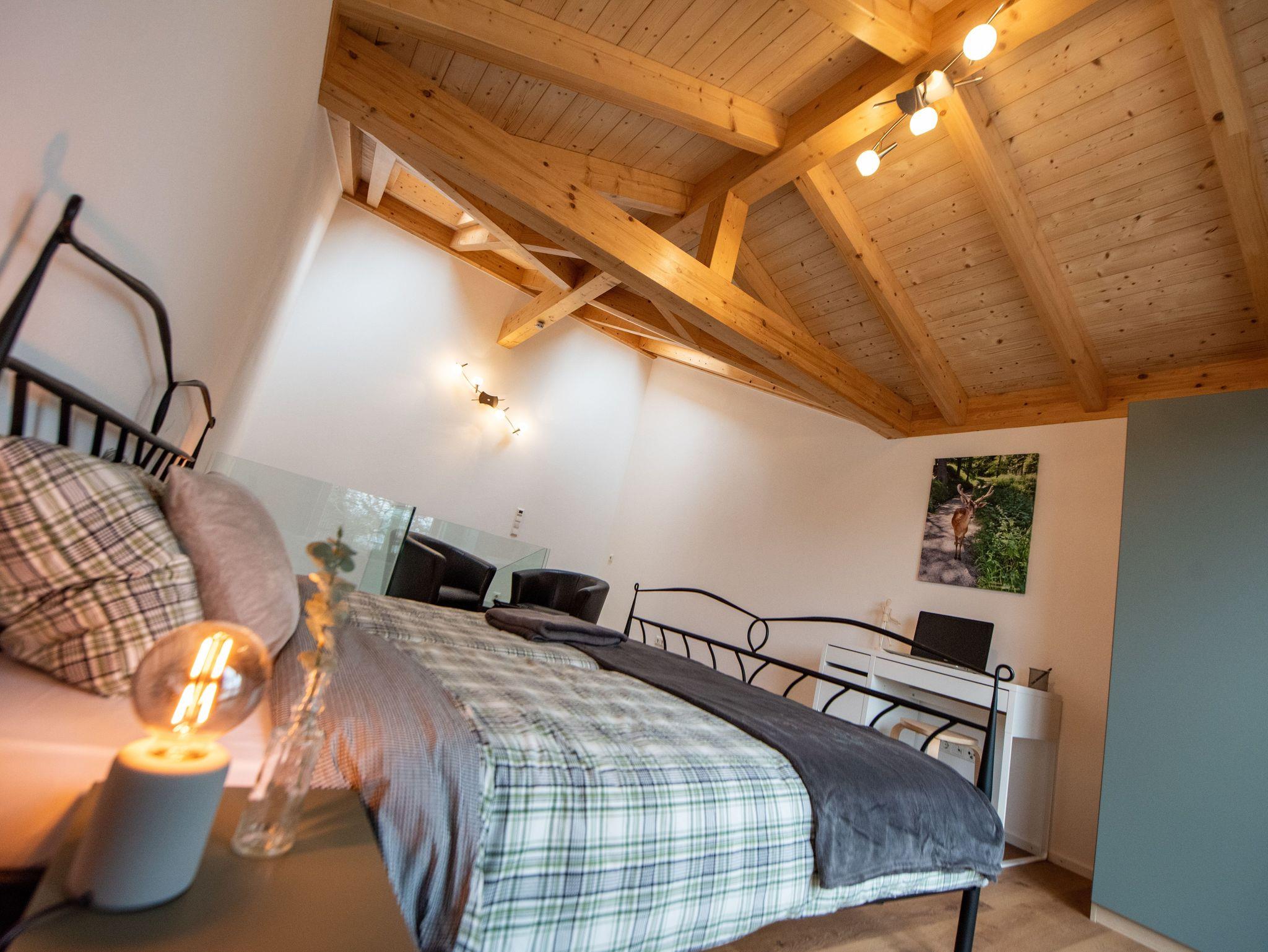Das gemütliche Schlazimmer befindet sich im ersten Stock und ist über eine Treppe erreichbar.