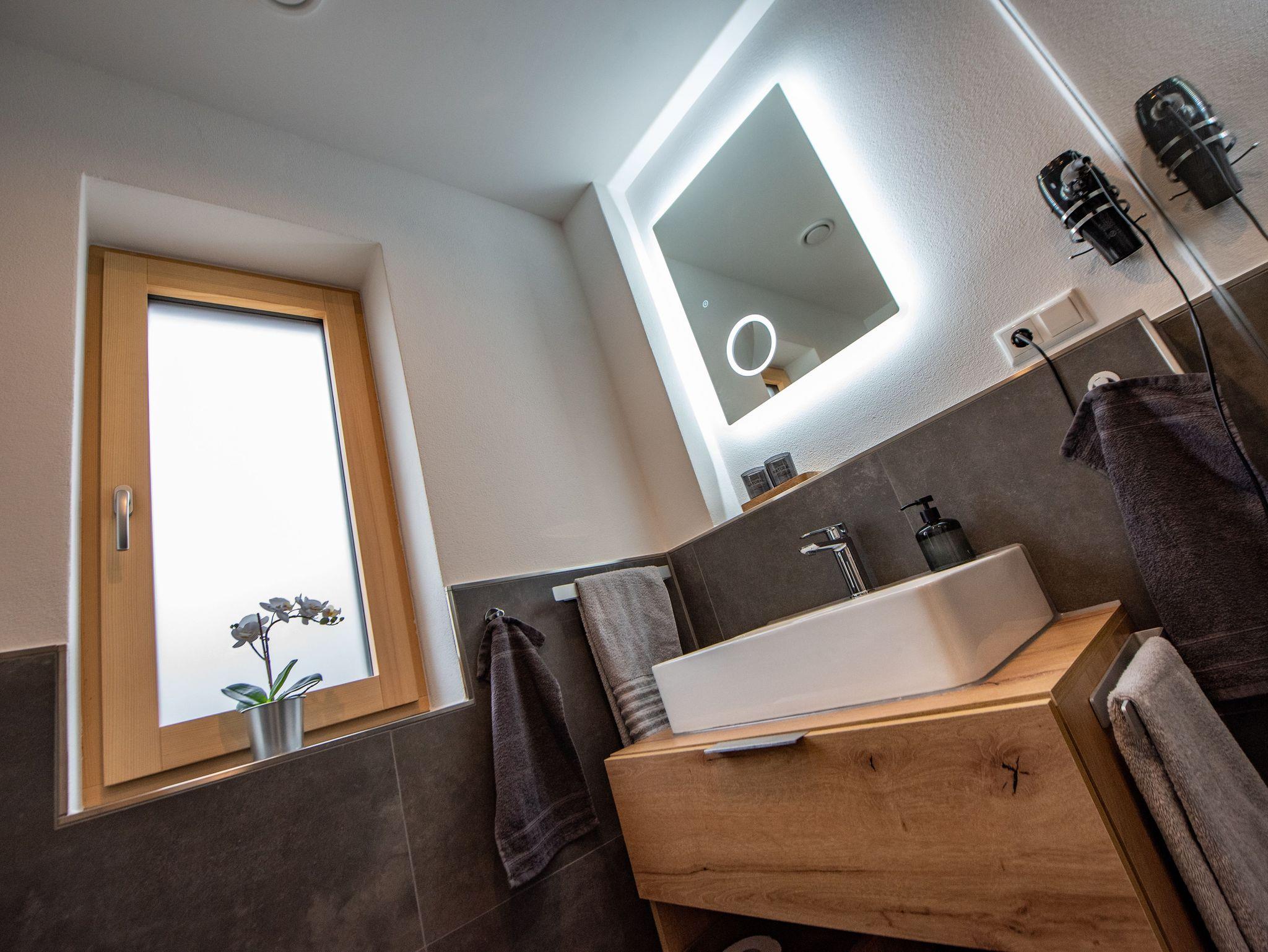 Es gibt zwei separate Schlafzimmer (bei Belegung ab 3 Personen), ein offenes Wohnzimmer mit offener Küche und Zugang zu einer schönen Außenterrasse mit Blick auf die alte Linde von Weil. Ein modernes Tageslichtbadezimmer mit ebenerdiger Dusche steht ebenso zu Ihrer Verfügung. Handtücher und Bettwäsche sind inklusive.