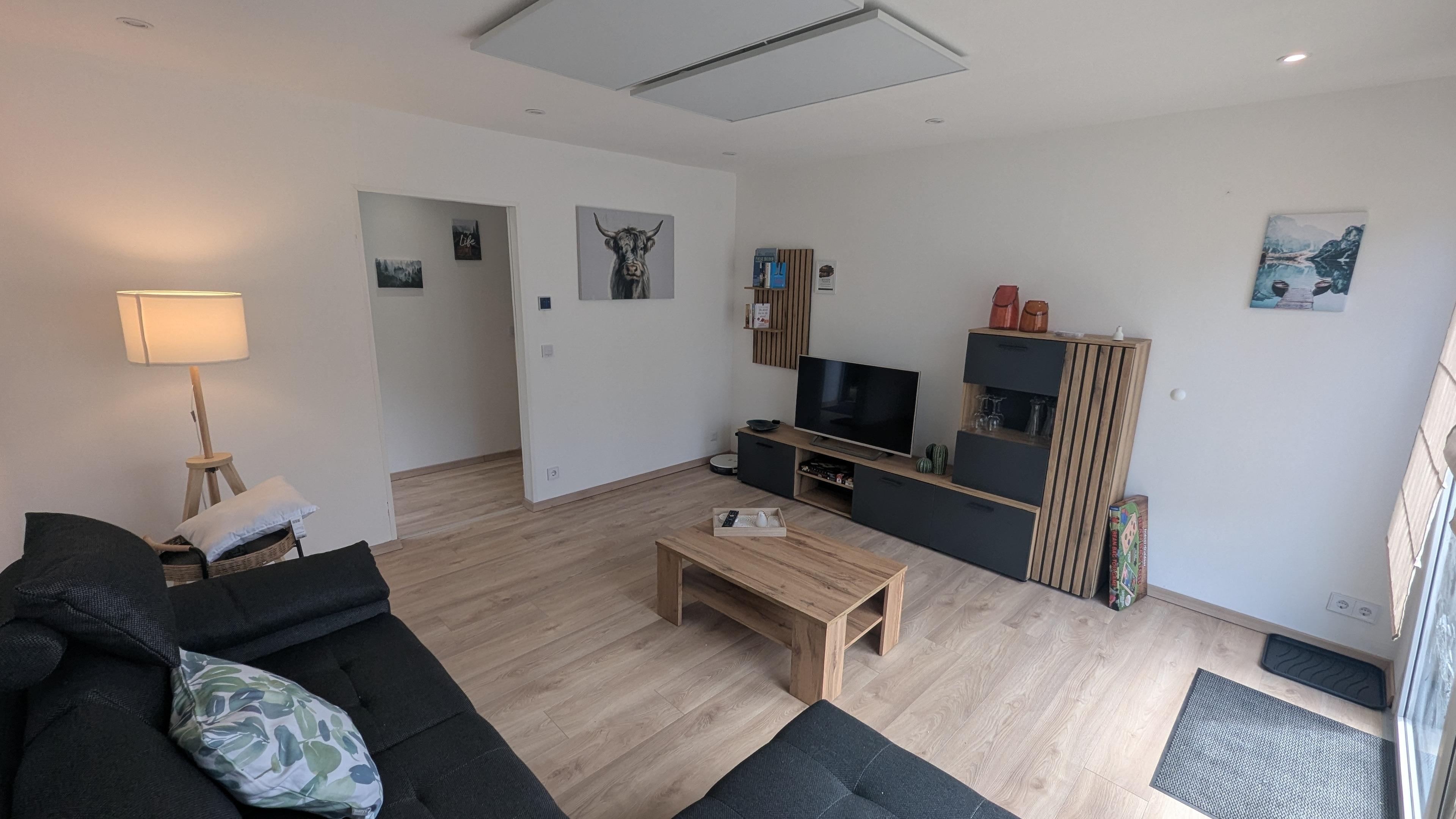 Ein Schlafzimmer + gemütliche Schlafcouch im Wohnbereich. Voll ausgestattete Küche mit Spülmaschine, modernes Bad mit großer Dusche und Waschtrockner, WLAN und TV - alles da für entspannte Urlaubstage.