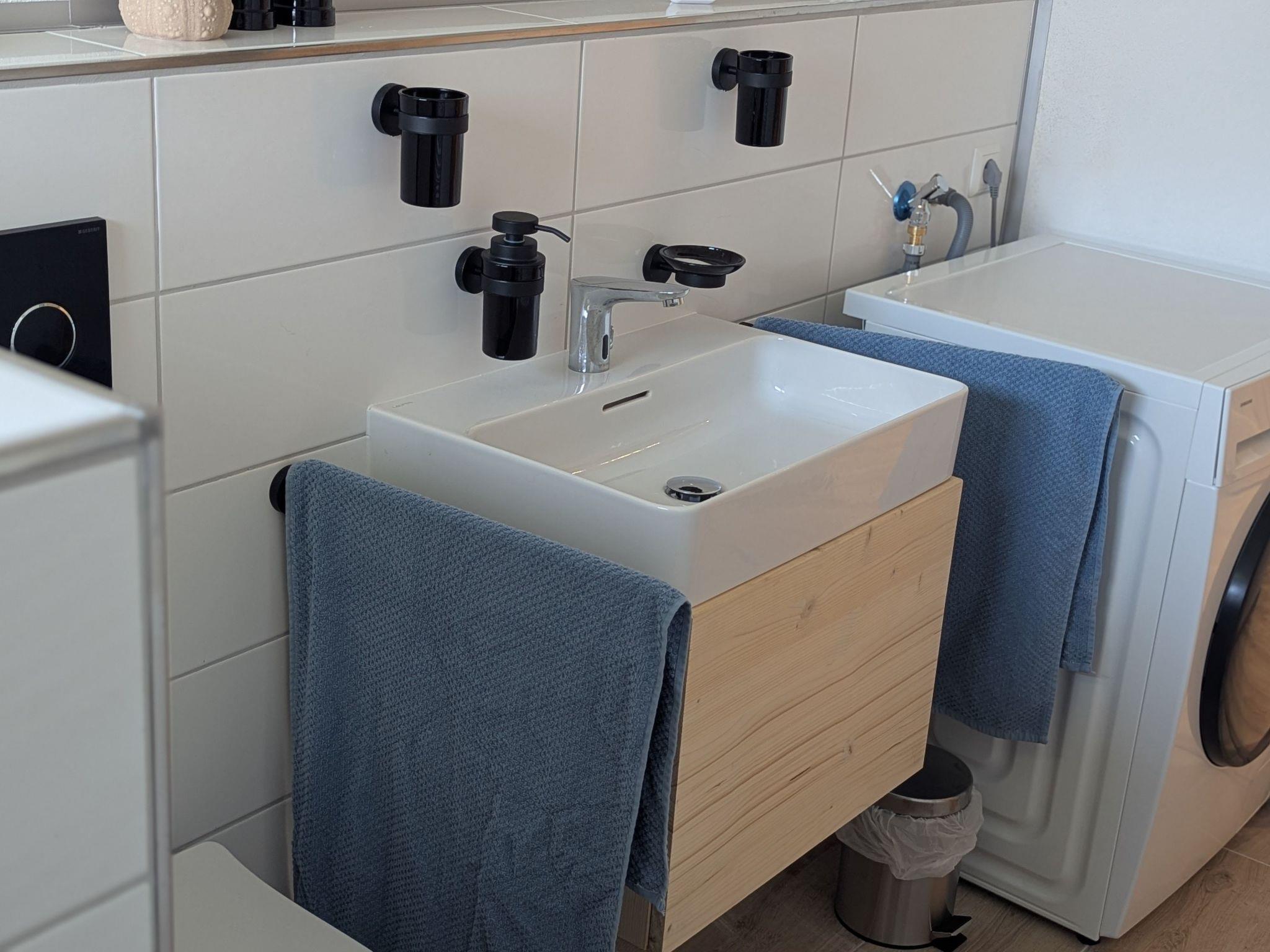 One bedroom + cosy sofa bed in the living area. Fully equipped kitchen with dishwasher, modern bathroom with large shower and washer-dryer, WLAN and TV - everything you need for a relaxing holiday.