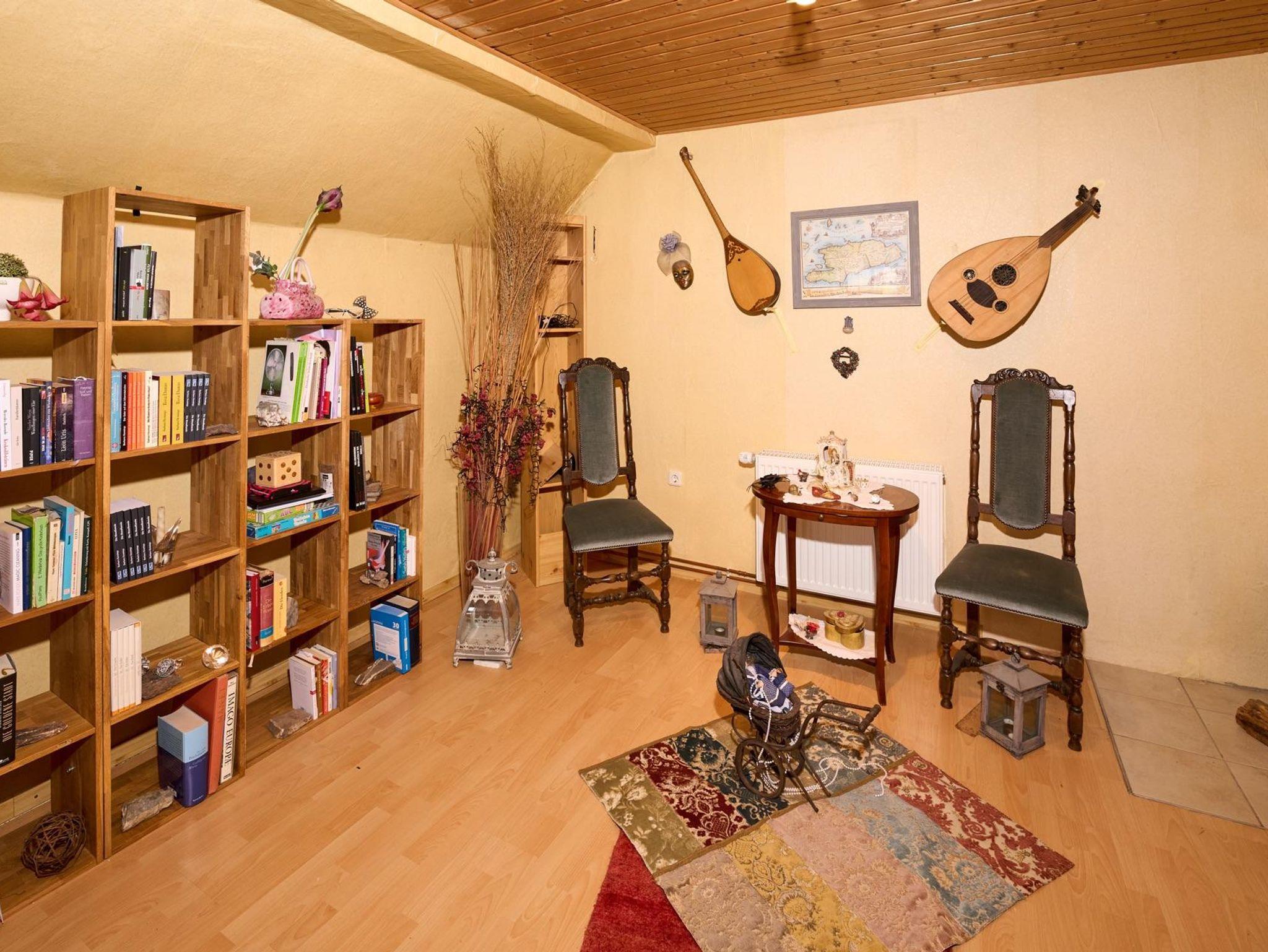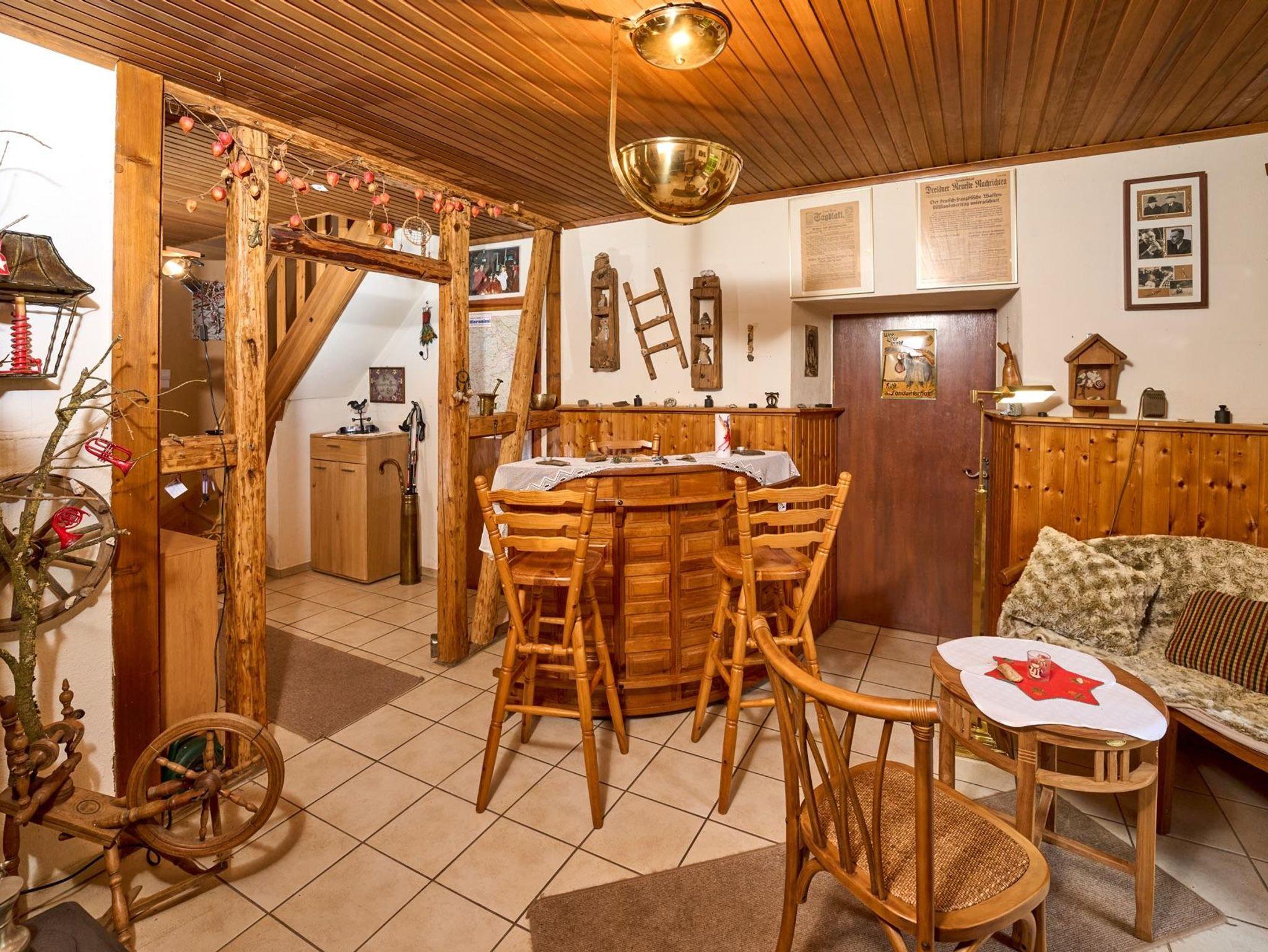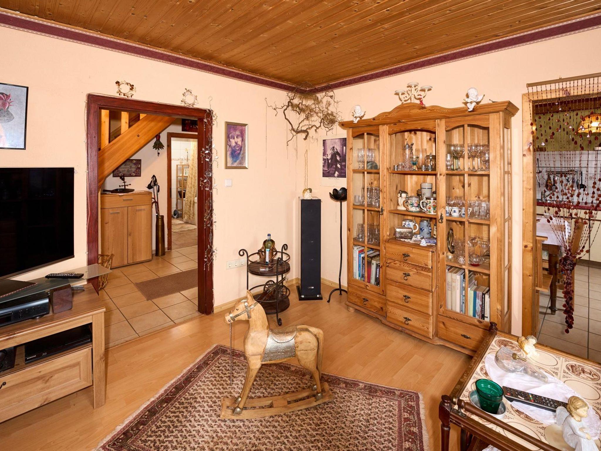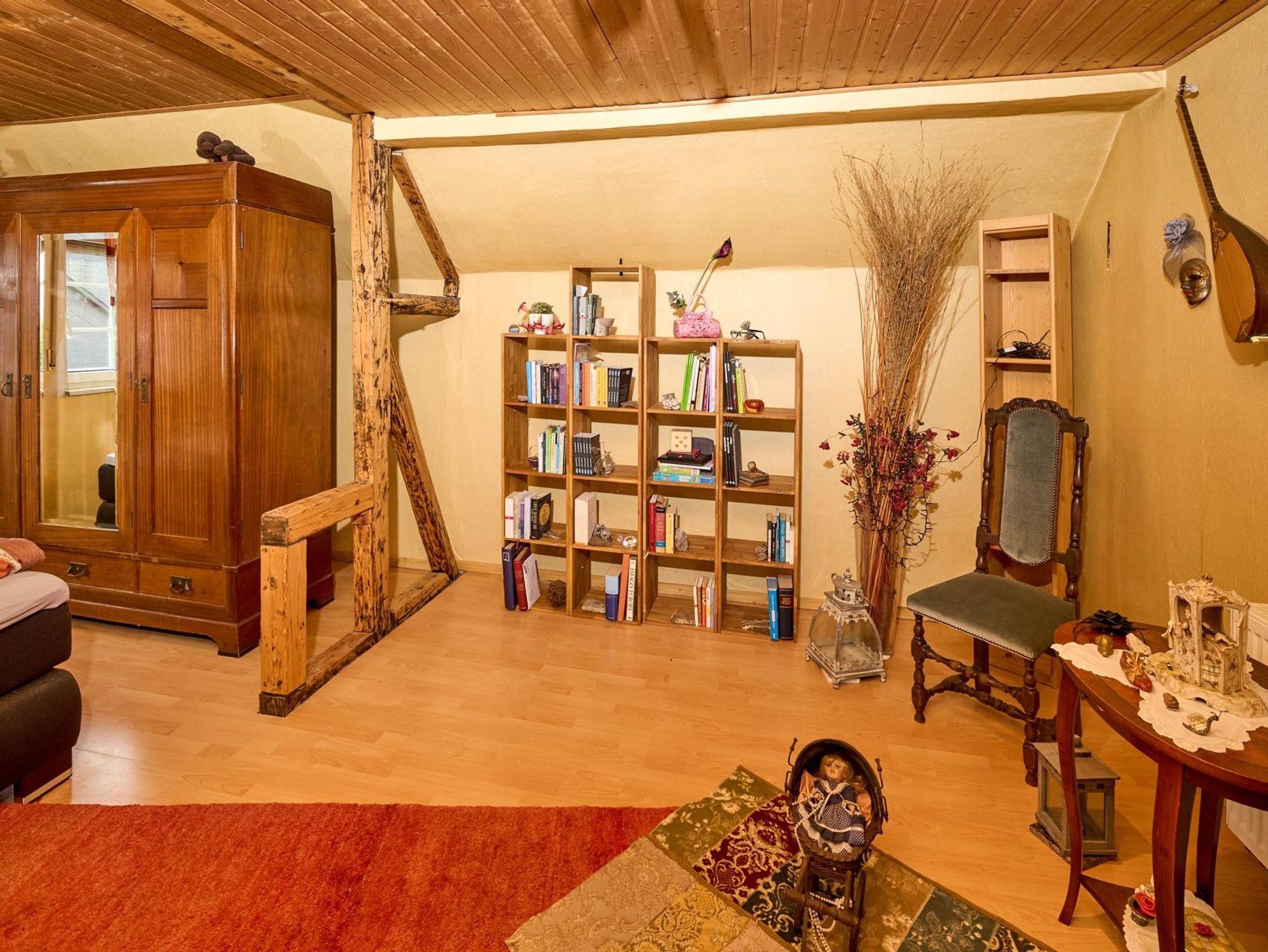 Das malerische Teilfachwerkhaus aus dem frühen 20. Jahrhundert mit moderner Ausstattung und einer Wohnfläche von insgesamt 92 qm bietet nicht nur durch seine Holzvertäfelungen eine ausgesprochen gemütliche Atmosphäre. Eine Bar sowie direkt daneben eine Sitzecke, umgeben von einer ansprechenden Dekoration, schaffen eine Verweilstimmung. Im Untergeschoss befinden sich neben dem Wohnzimmer auch die Küche und das Bad mit Toilette und Badewanne. Im Obergeschoss finden Sie drei Schlafzimmer mit Schlafgelegenheiten für insgesamt 6 Personen. Eine Gastwirtschaft - direkt gegenüber - bietet kulinarische Genüsse für jeden Gaumen mit nationaler sowie auch internationaler Küche (auf Bestellung). Eine weitläufige Terrasse im Obergeschoss (mit Sonne rund um die Uhr) sowie ein Garten hinter dem Haus lädt Sie ein, im Freien zu verweilen und die reine Luft der Eifel zu genießen. Gartenmöbel stehen zur Verfügung. Ein Parkplatz befindet sich hinter dem Haus.