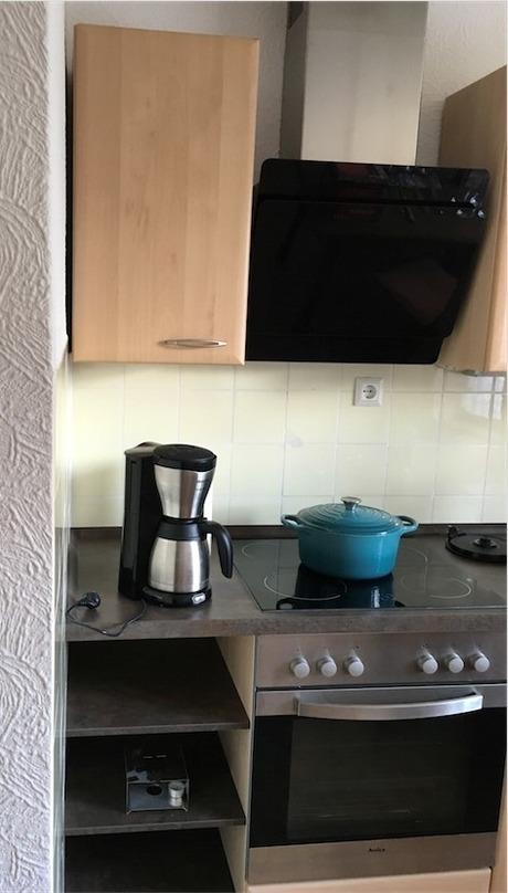 Wohnküche mit E-Herd und Backofen, Kühl-Gefrierschrank, Spülmaschine alles für einen entspannenden Aufenthalt.